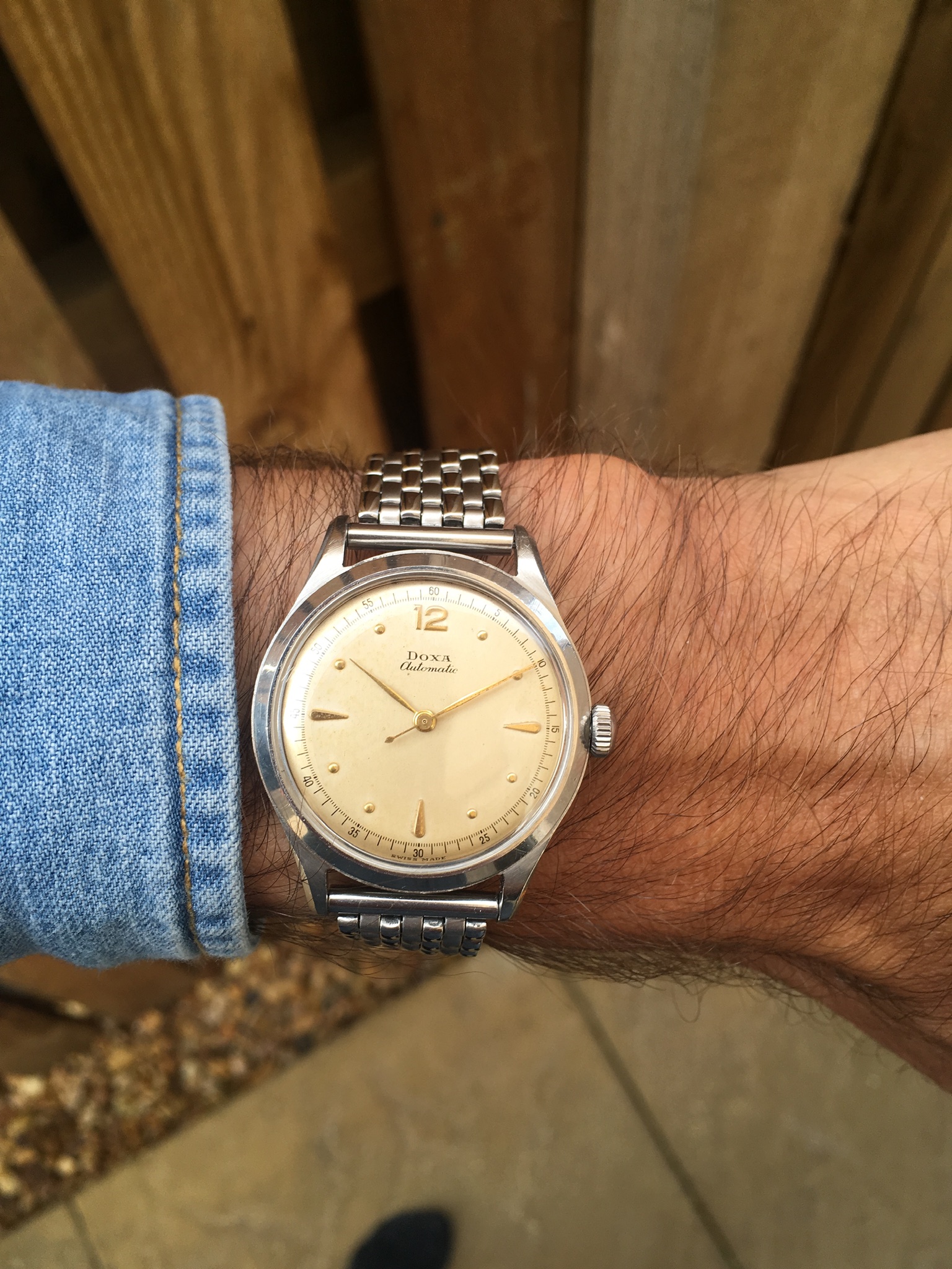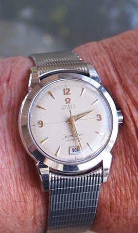 Another four day trip to the mountains is behind us. I just took my sacrificial Seiko off, and while scanning my collection for a watch to wear, my eye settled on my early 1950s Seamaster, date at 6:00, with the caliber 355 bumper automatic movement. Movement picture courtesy Dr. Roland Ranfft’s archive.