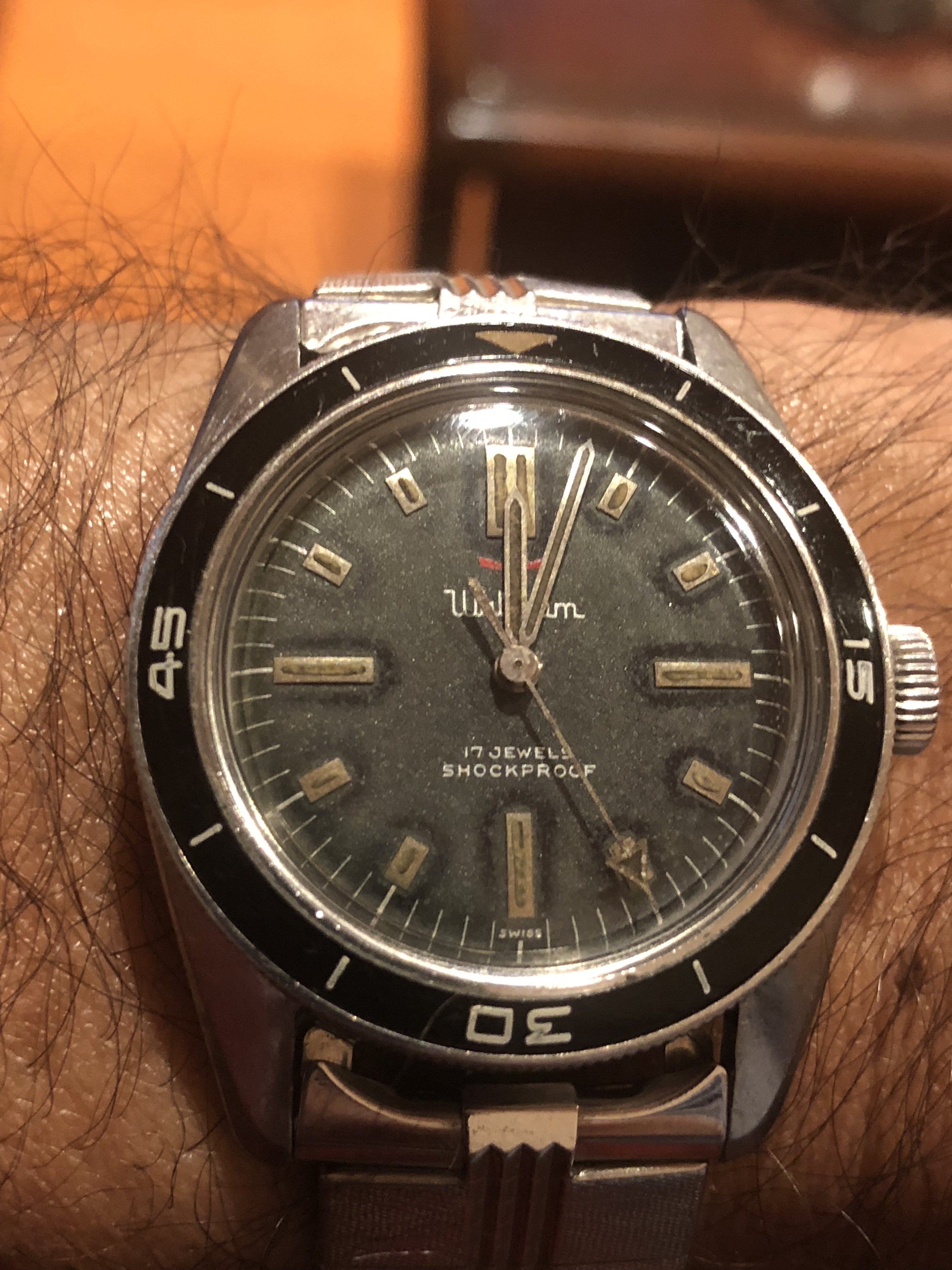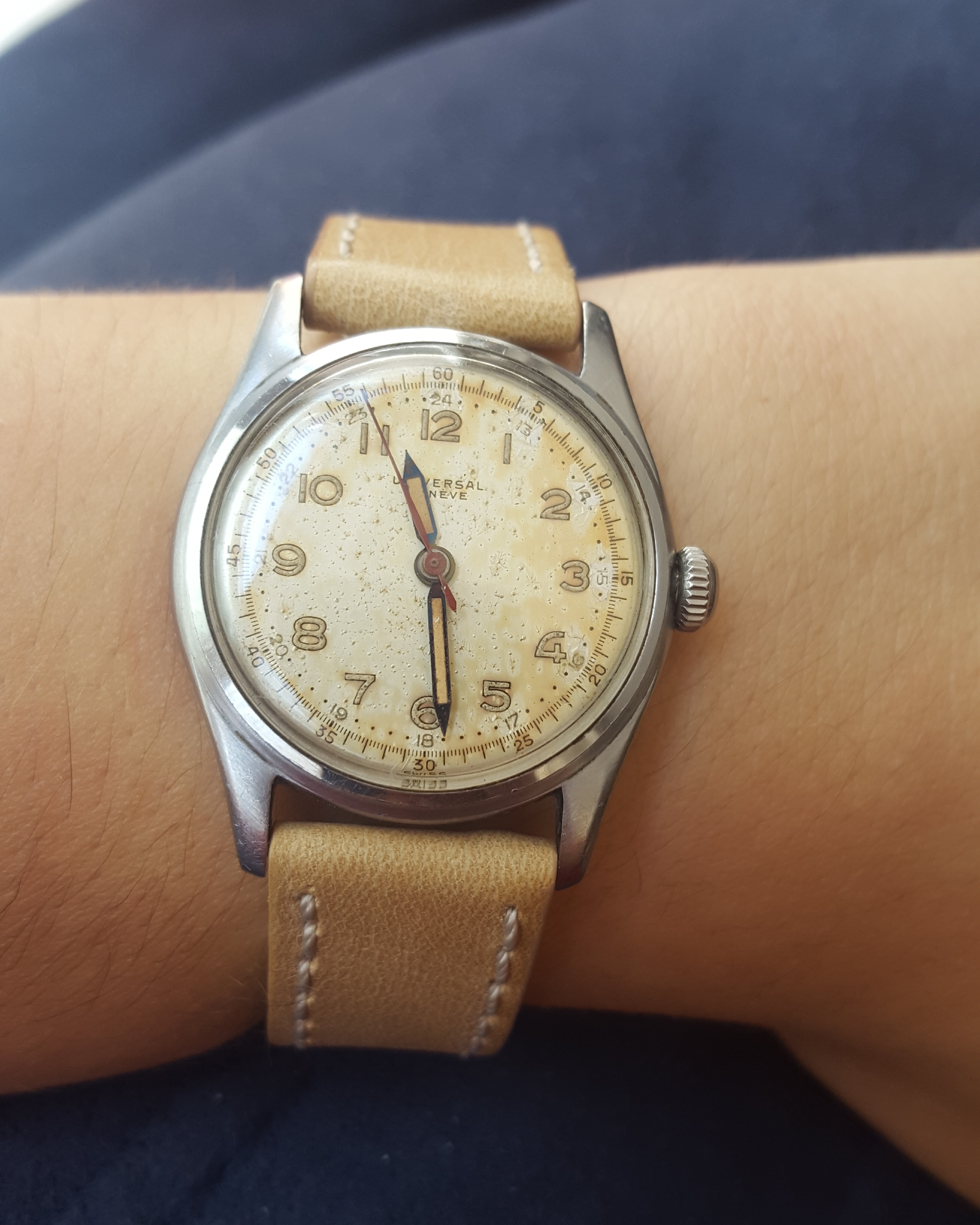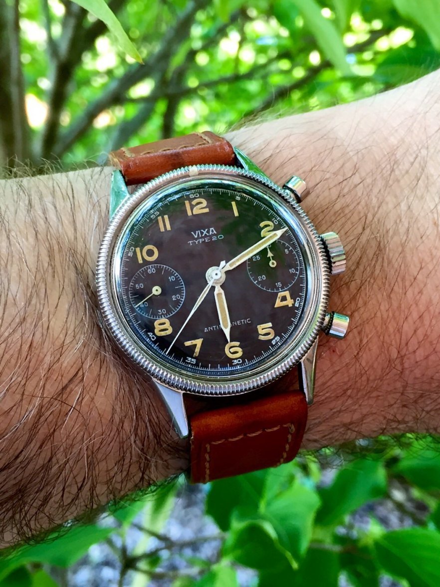 Vixa Type 20, Hanhart caliber 40, manufactured circa 1954. As the FG (“fin de garantie”) service marks show, it was well-used even before retiring from service 30+ years ago and still going strong. 👍