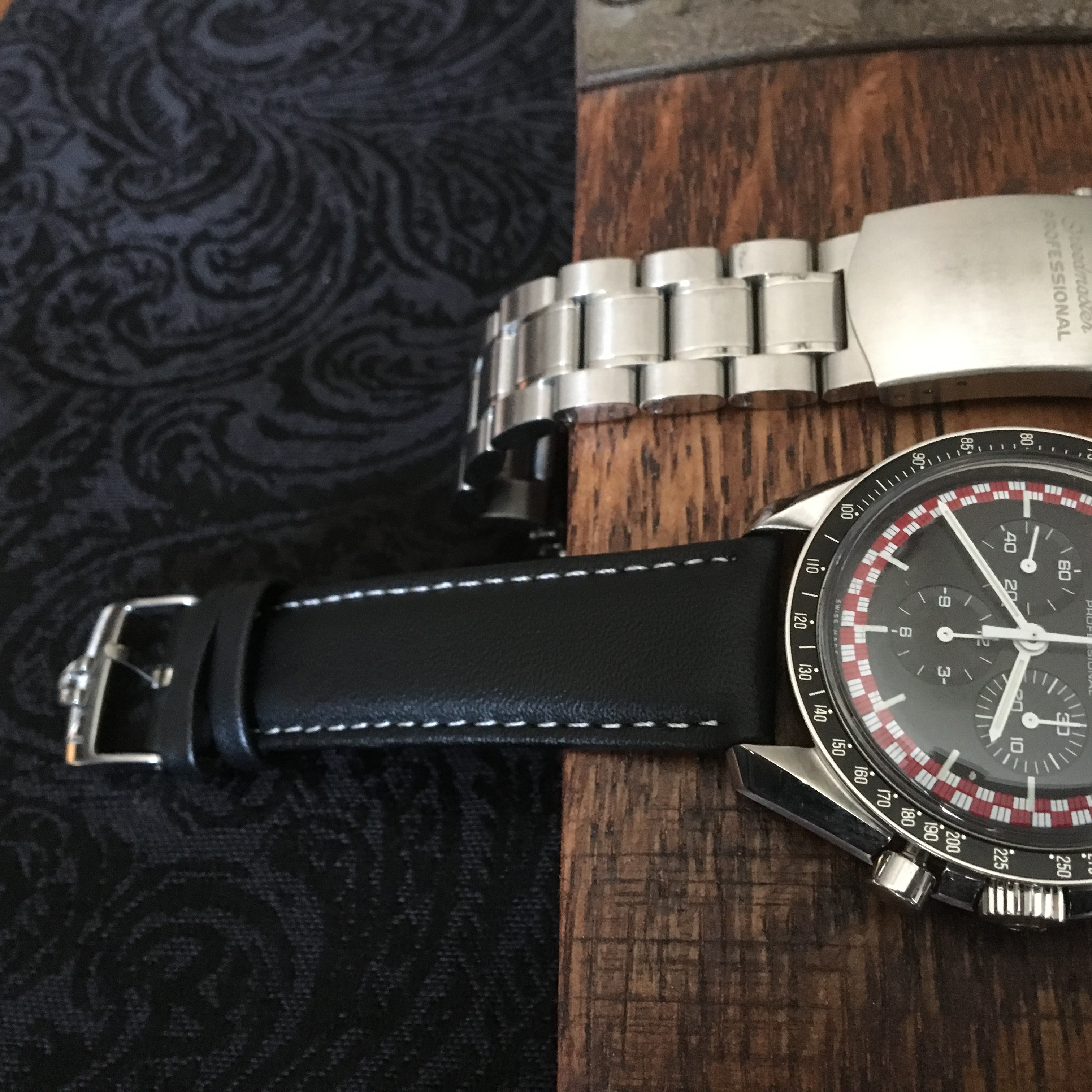Added a black strap with white stitching. Will add a NATO strap when I get around to it.