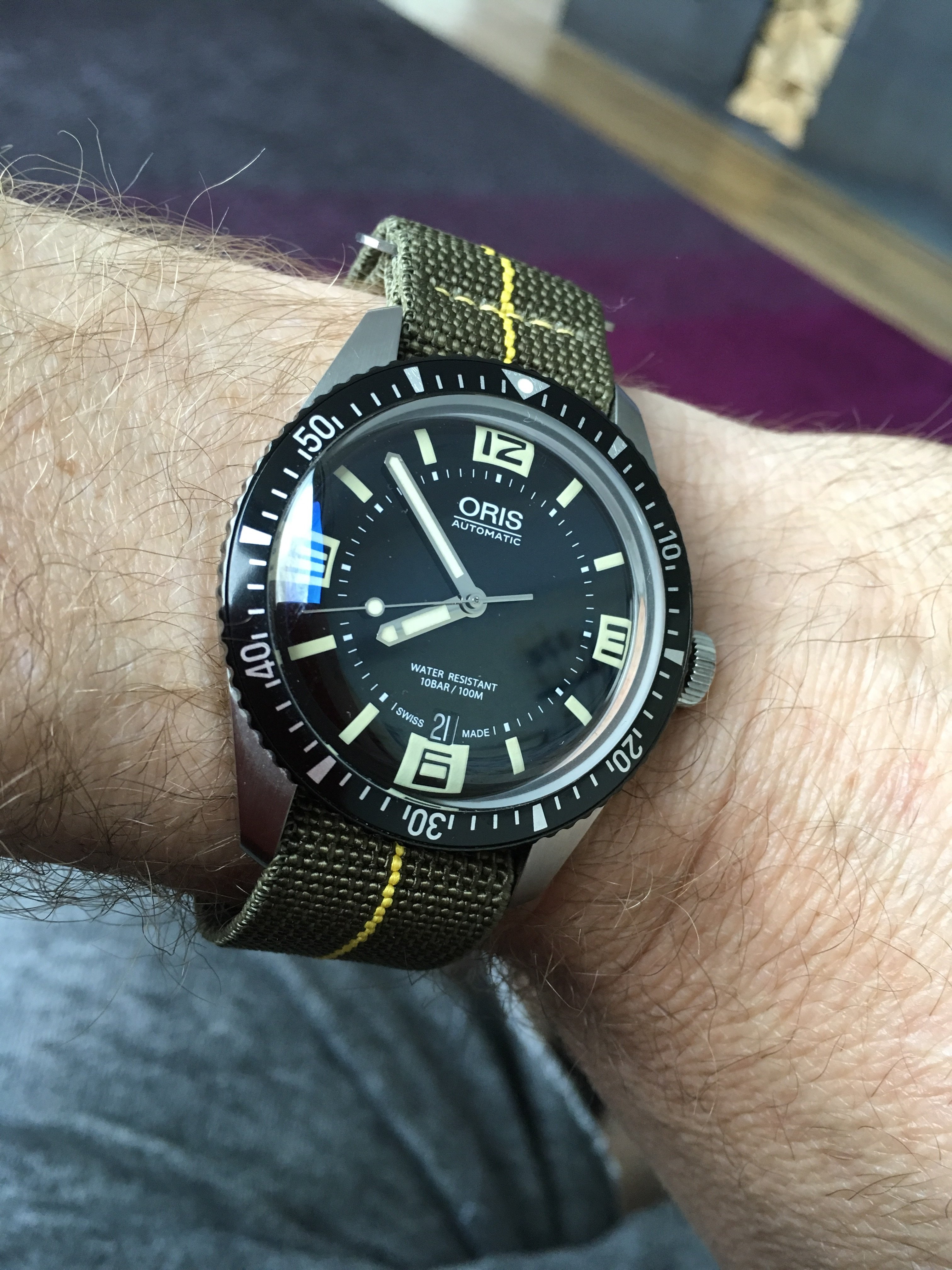 ·Added a black strap with white stitching. Will add a NATO strap when I get around to it.