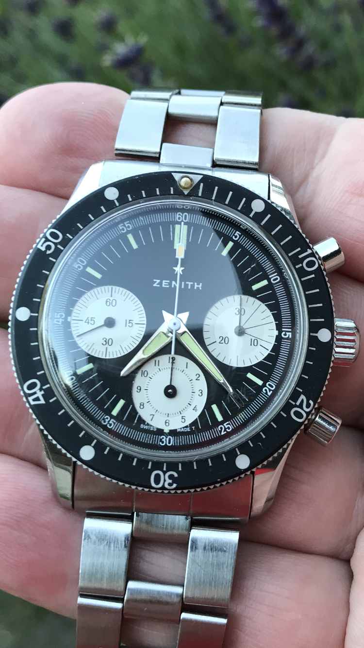 ··Home For Wayward WatchesMy long ignored mid-70s Omega (pre-Swatch) caliber 1345 Seamaster. Not everyone’s grail watch (anyone’s?), but condition alone makes this a nice one to have, and part of the evolution of Omega. Relatives to this one are a pain to set the time and calendar on. And I have to re-train myself every time I wear it. Seconds and minute hand are pus-button re-set. The hour hand is individually settable, and setting the day is done by repeatedly setting the hour hand until the correct day is displayed. Then the date is set by repeatedly pushing a button at the 4:00 position. Fortunately, this cumbersome method of setting your Omega was not around for too long!