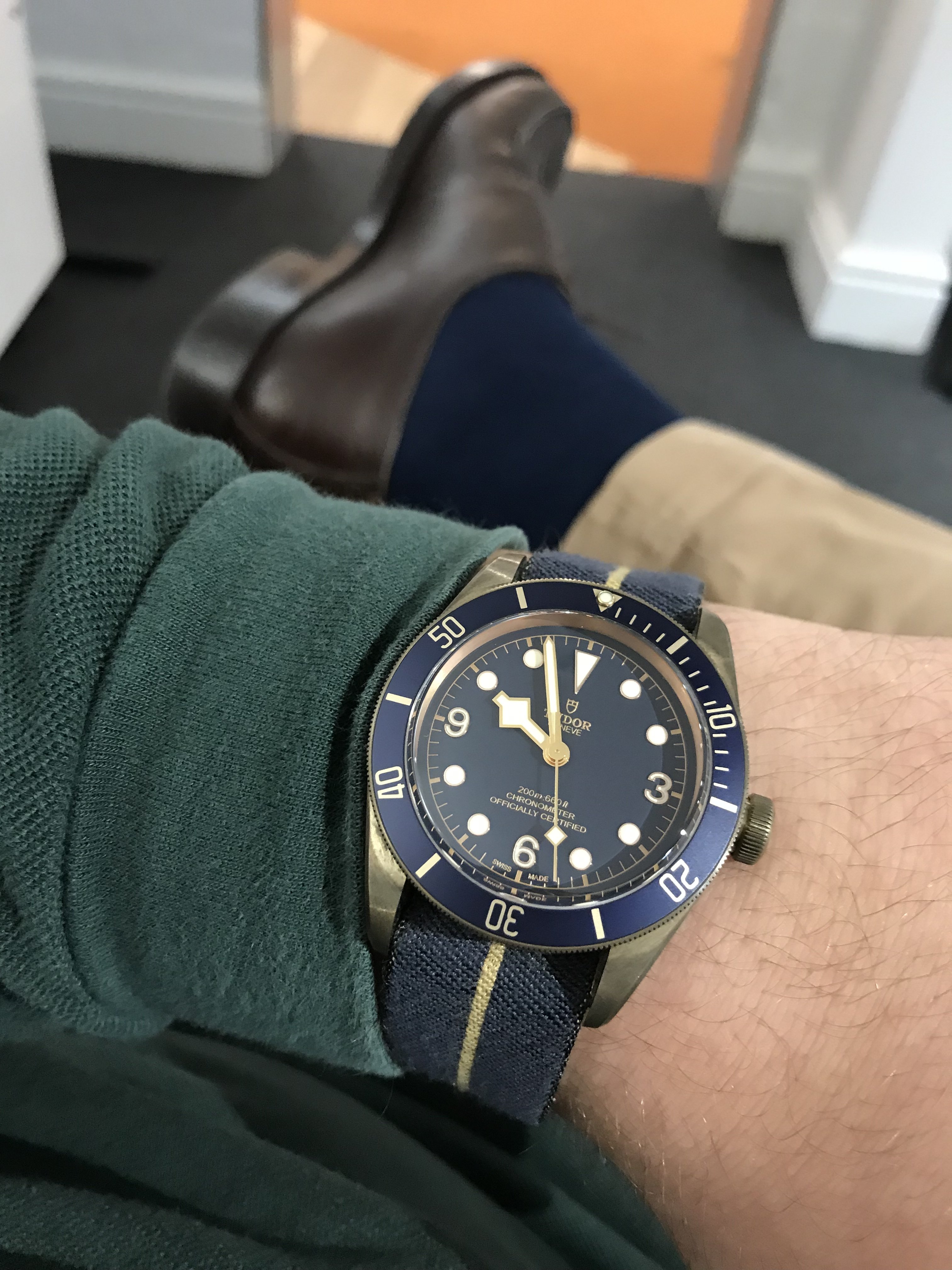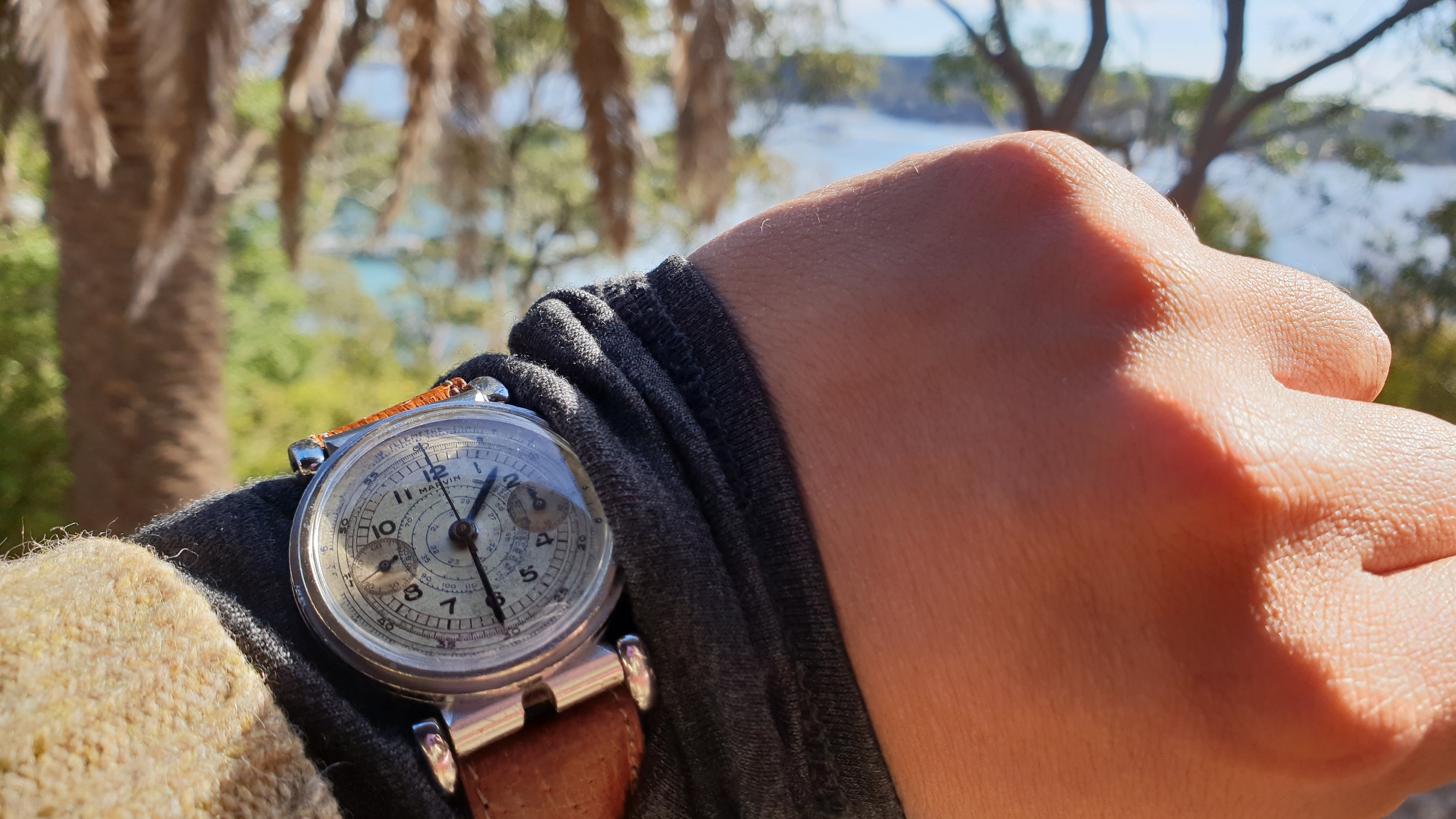 Saw a C-Case Connie, stainless with champagne dial and day/date feature, a keen looking Mido Powerwind in its 35mm stainless steel case, a circa 1950 Omega Automatic with center second hand (351 movement perhaps?), and a 1940s (?) Hamilton 992B.