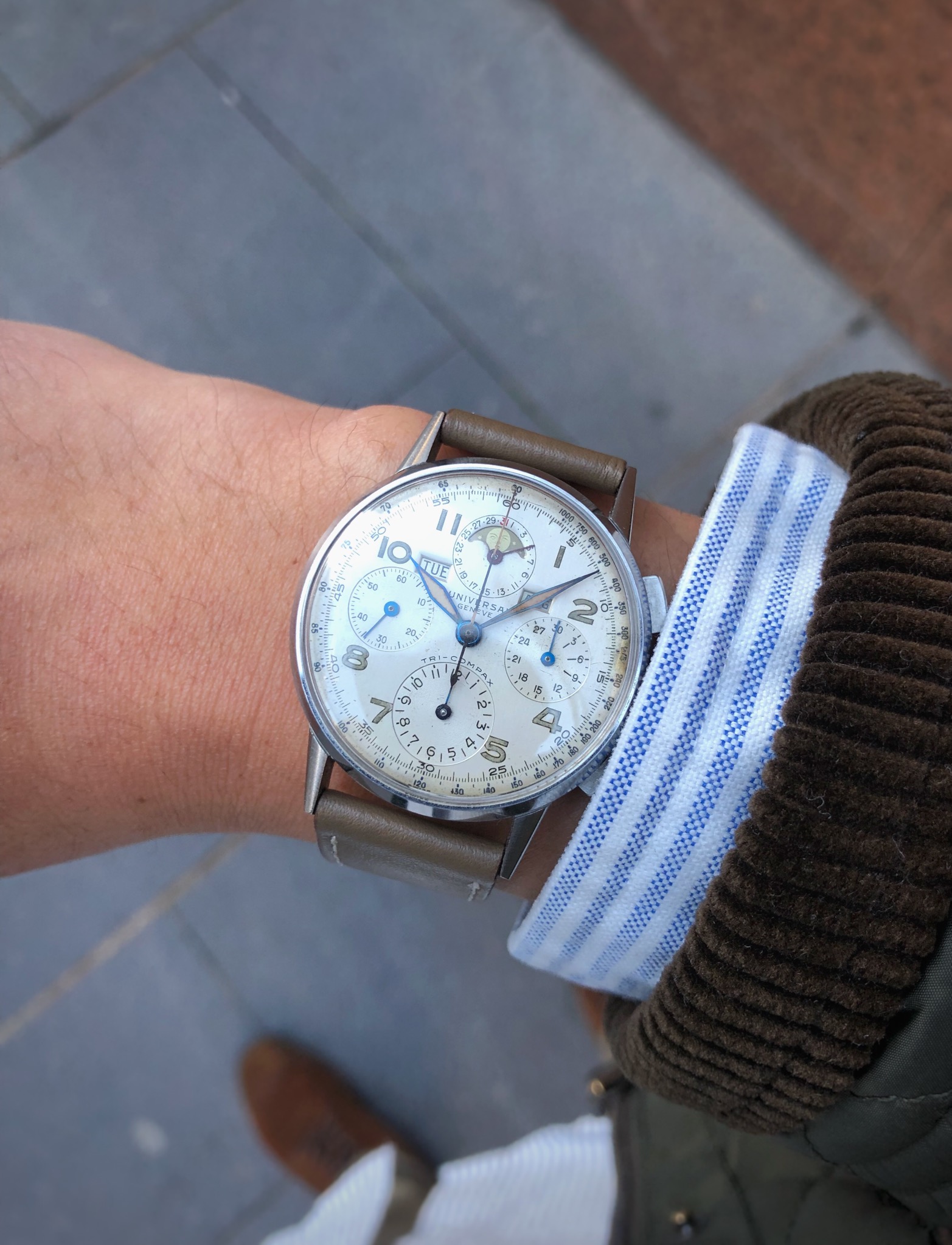 Dial was exactly like this example and I believe the case was like this one as well. Can't recall what this style of dial is called but it was cool. Felt my inner Mad Dog calling on me to take it home.