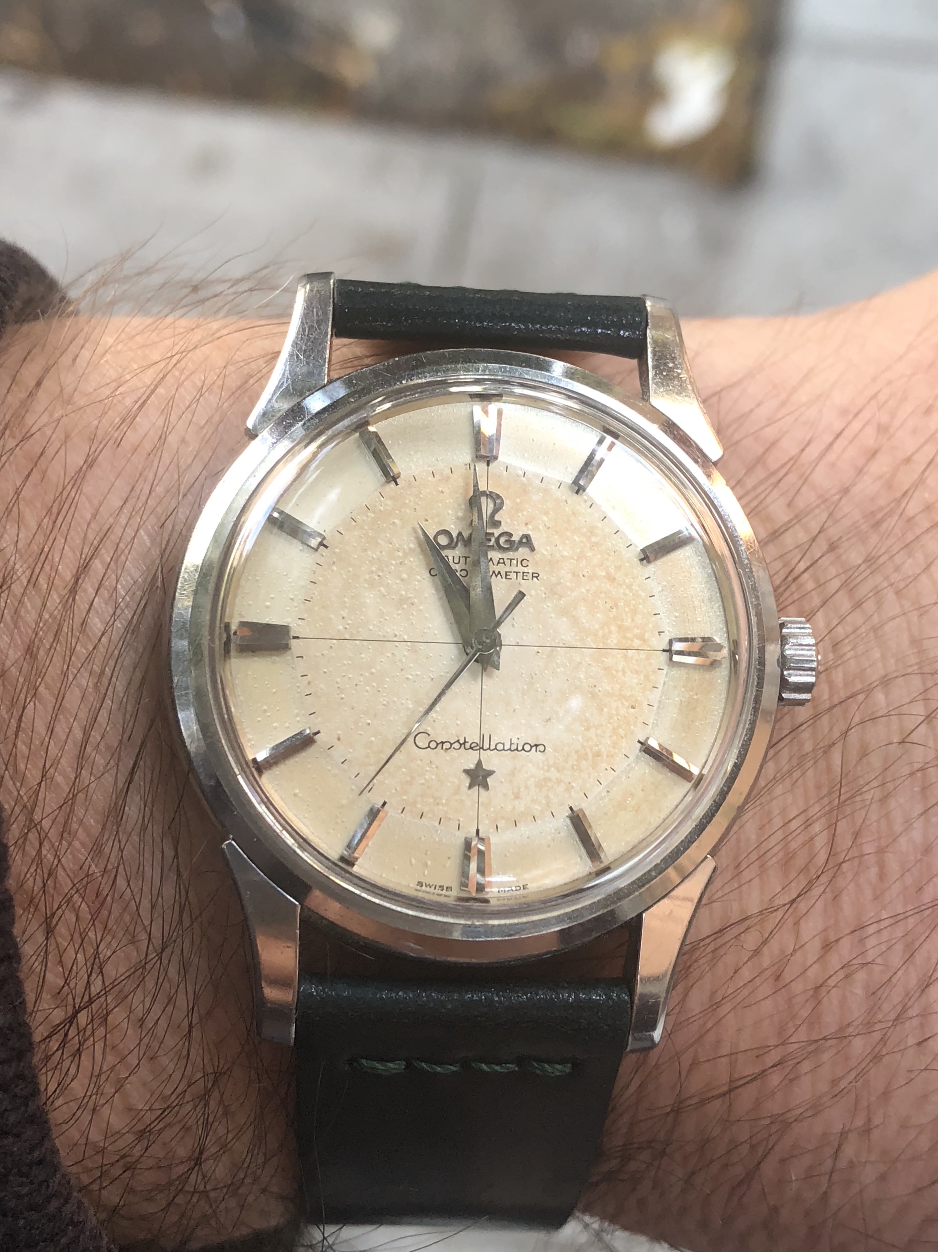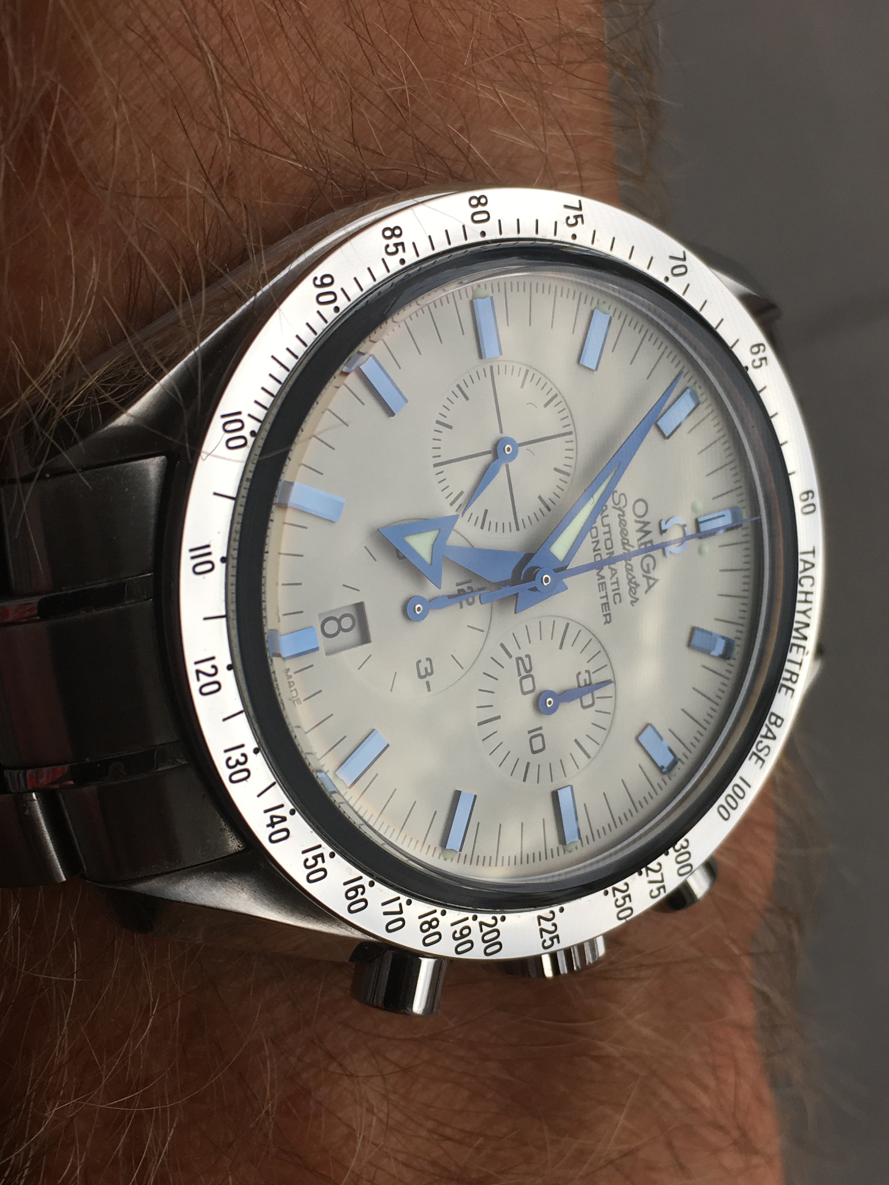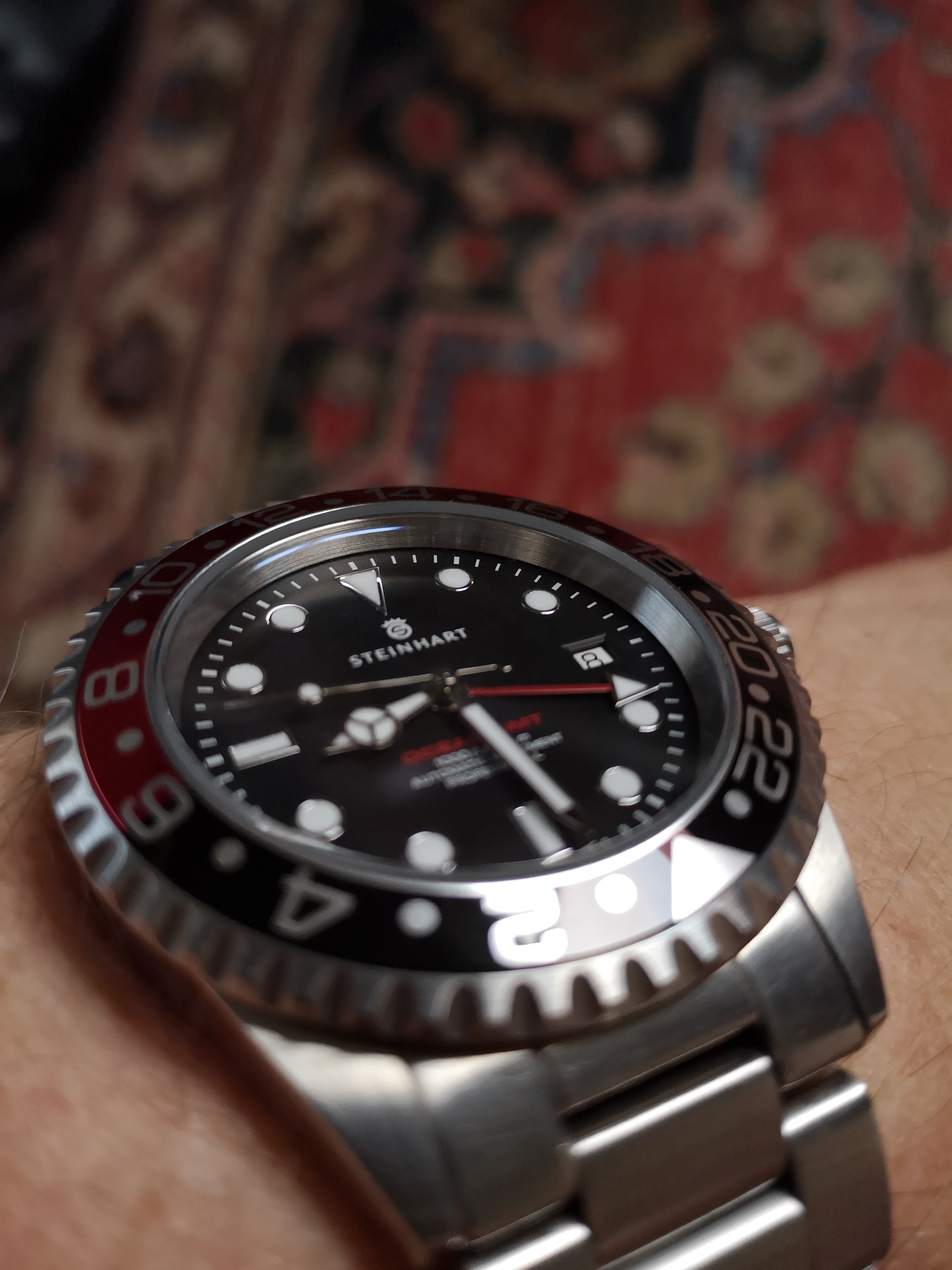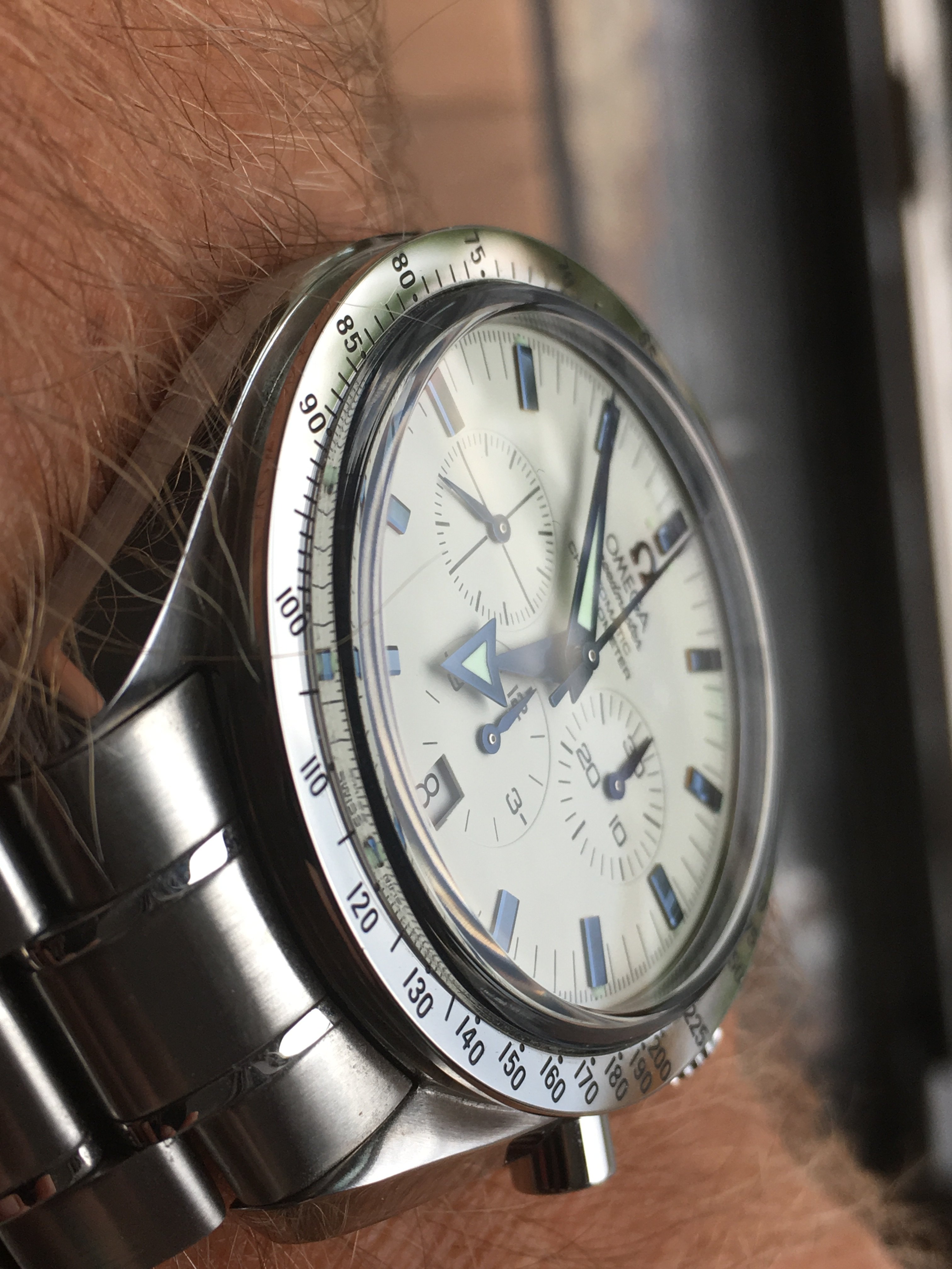 No danger of rain today so out of the box it comes. Last time I wore it for three hours on a rainy day and it spent the next week in a bag of rice. I just love the play of light on the dial and hands.