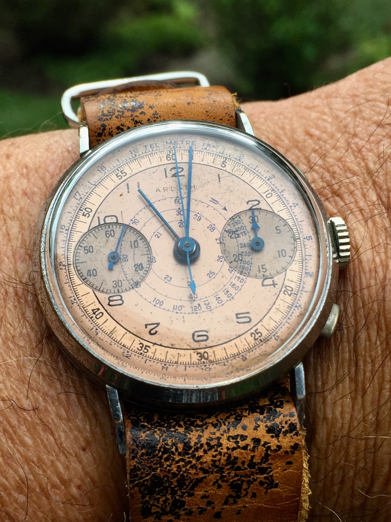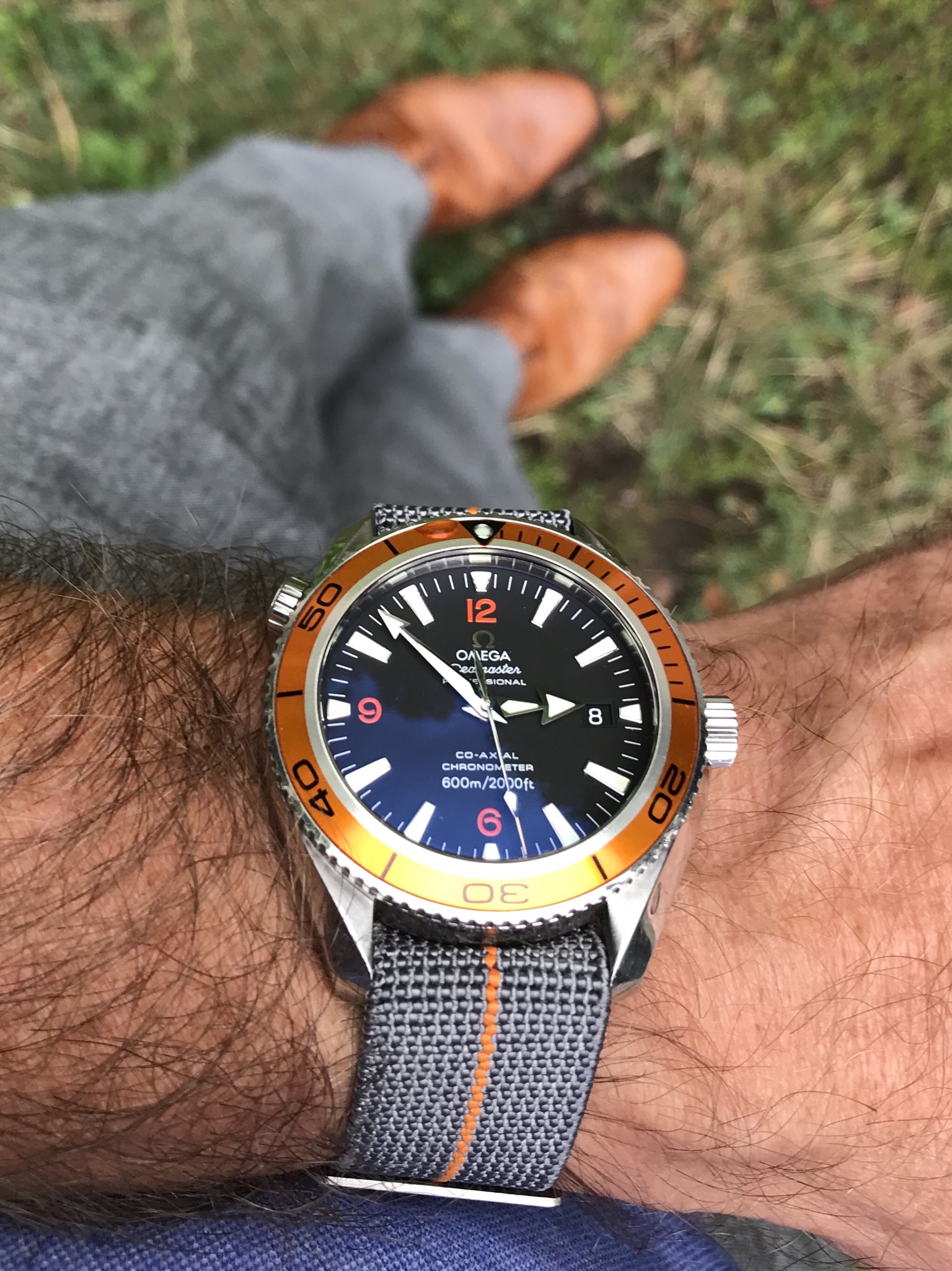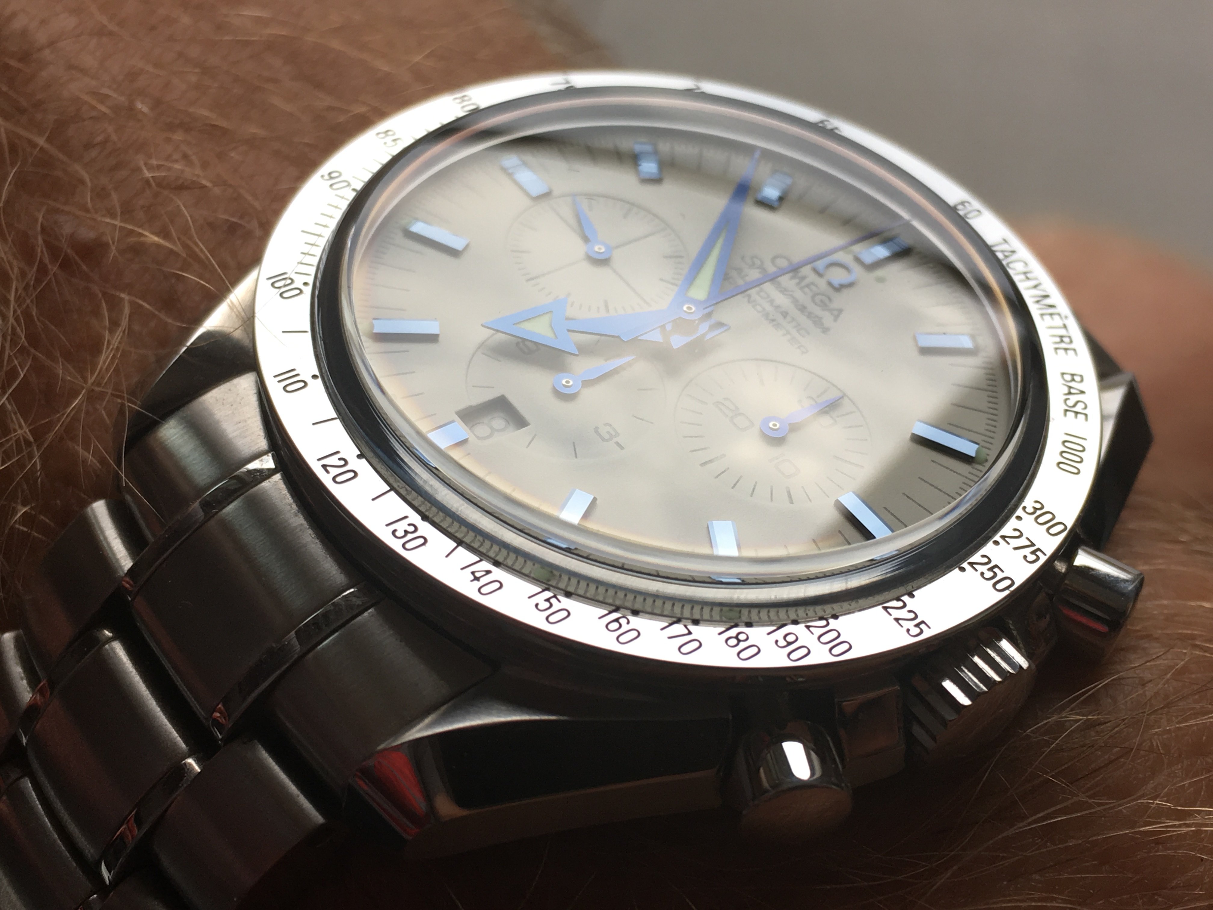 No danger of rain today so out of the box it comes. Last time I wore it for three hours on a rainy day and it spent the next week in a bag of rice. I just love the play of light on the dial and hands.