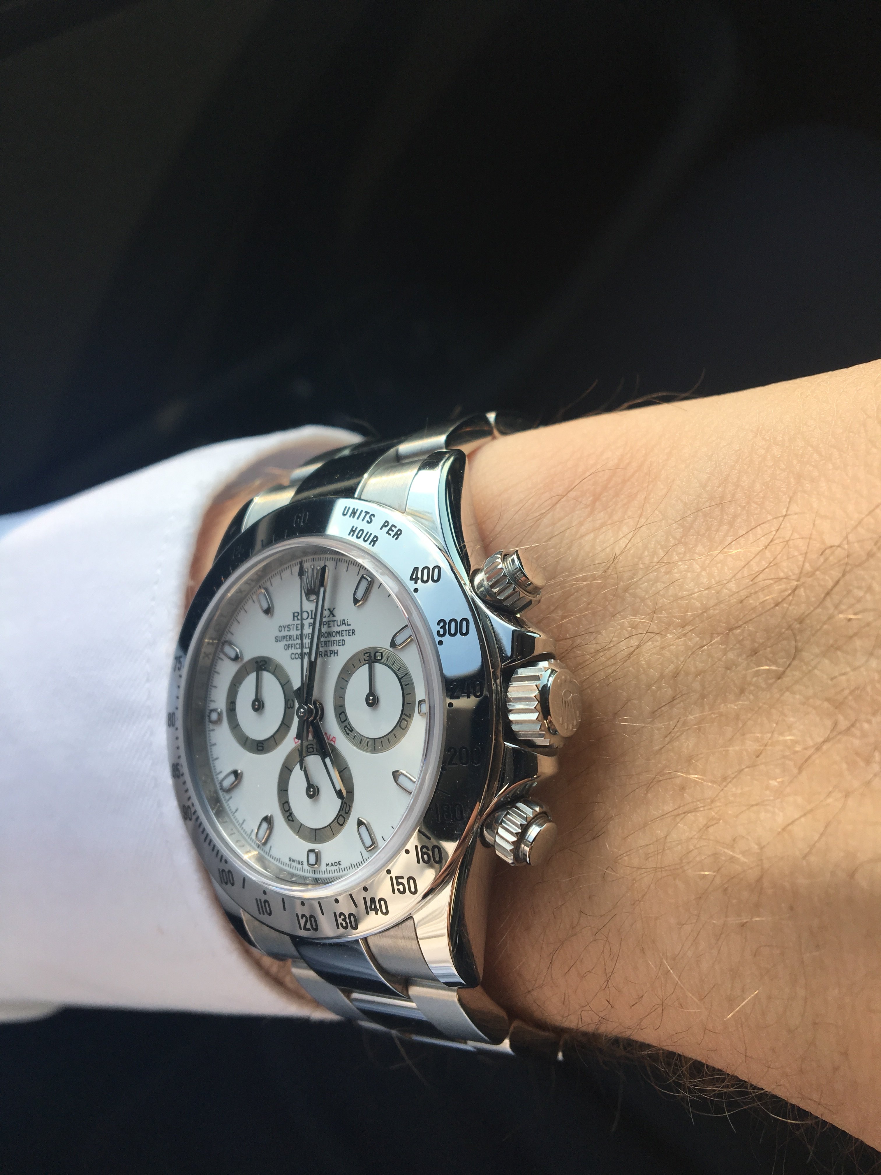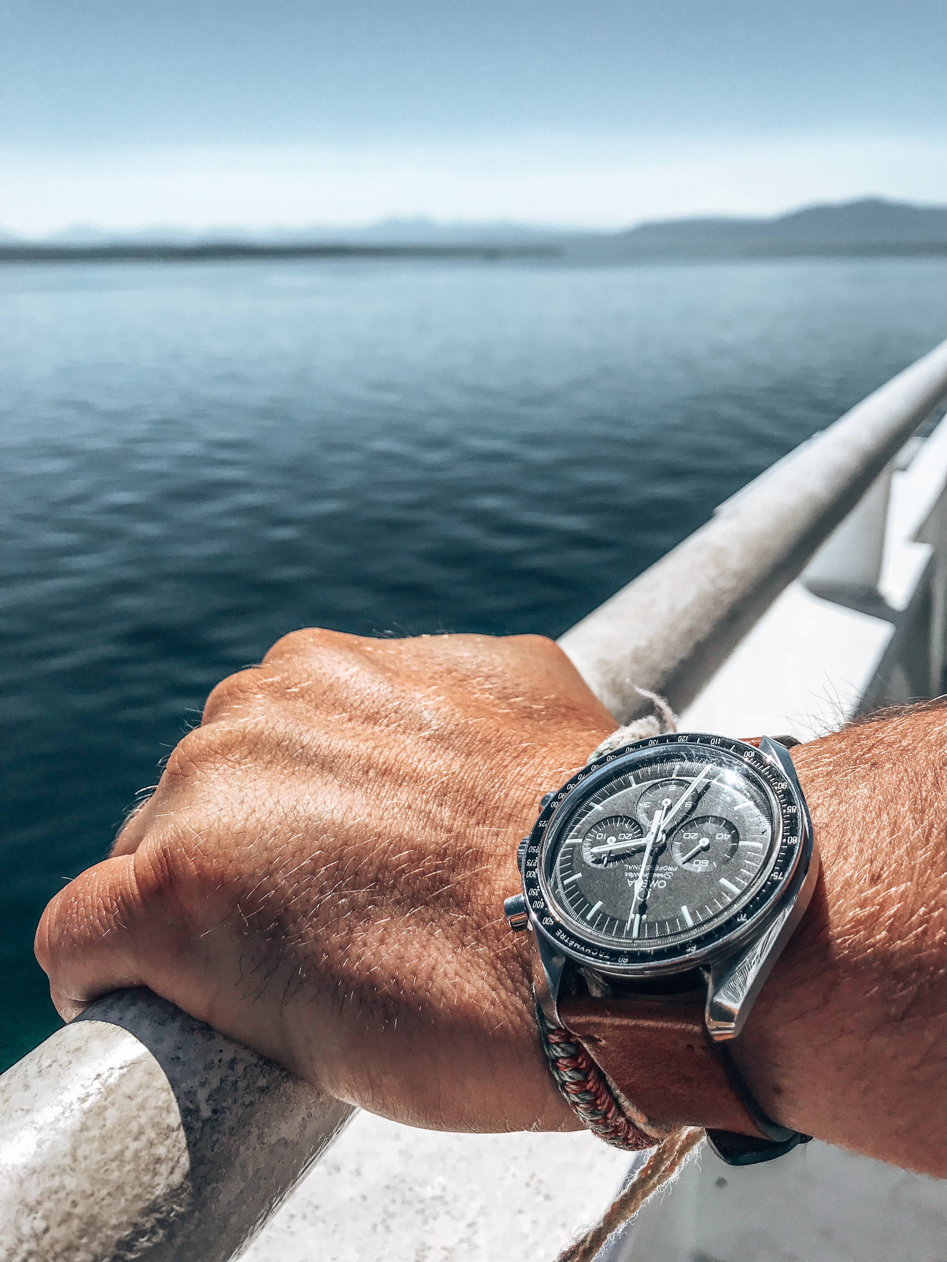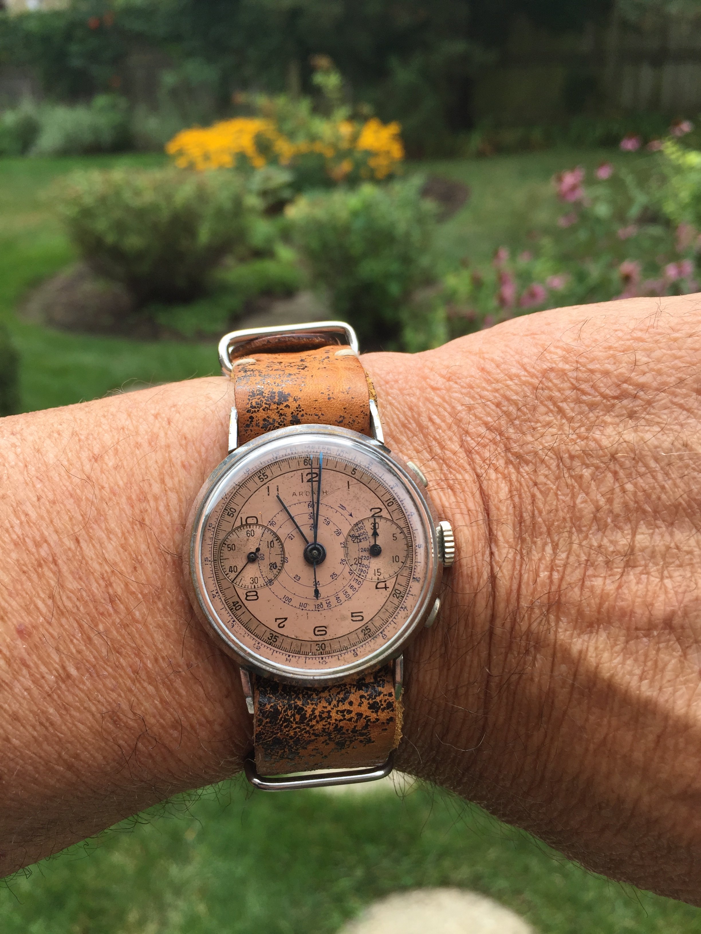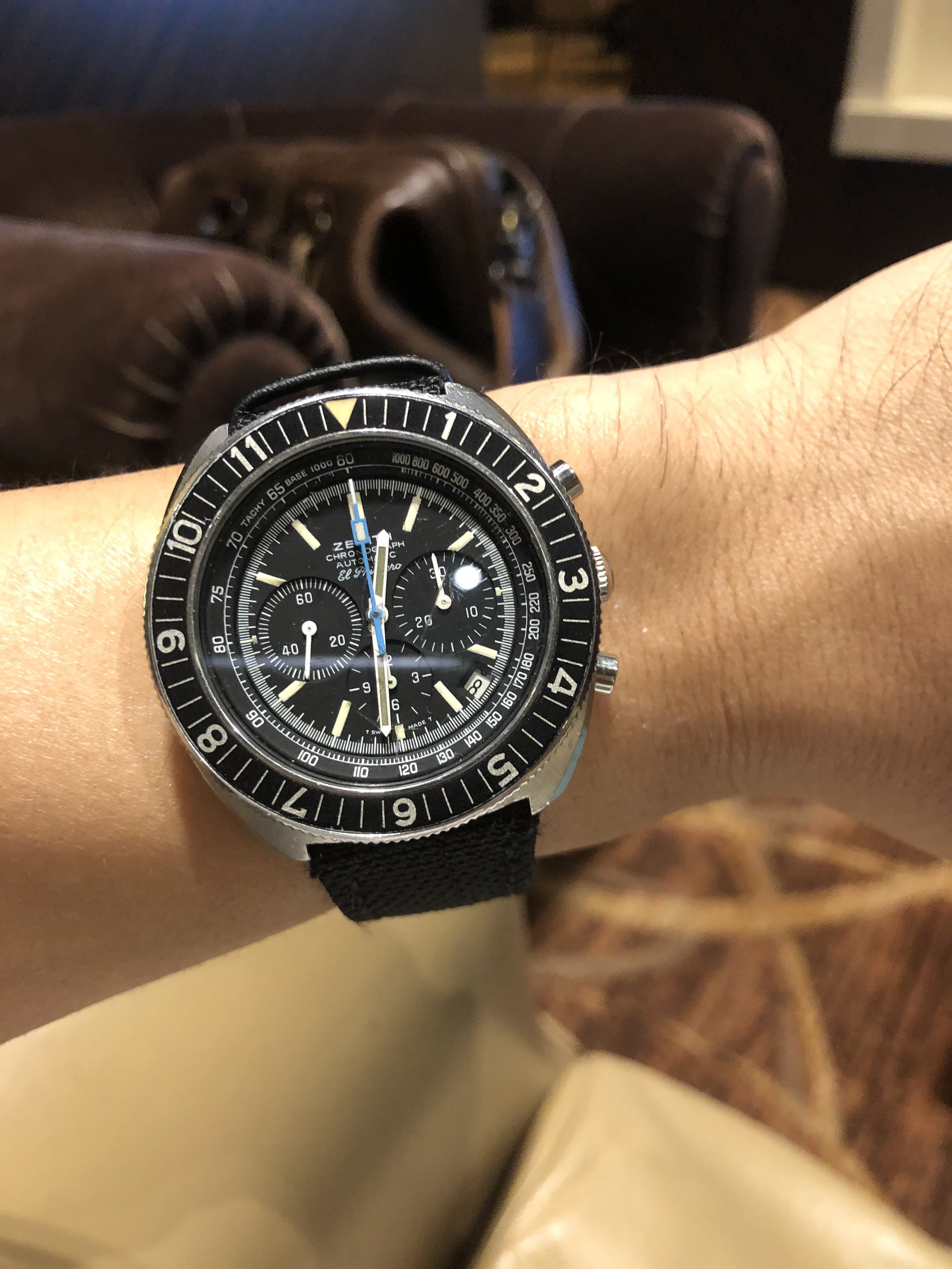 No danger of rain today so out of the box it comes. Last time I wore it for three hours on a rainy day and it spent the next week in a bag of rice. I just love the play of light on the dial and hands.