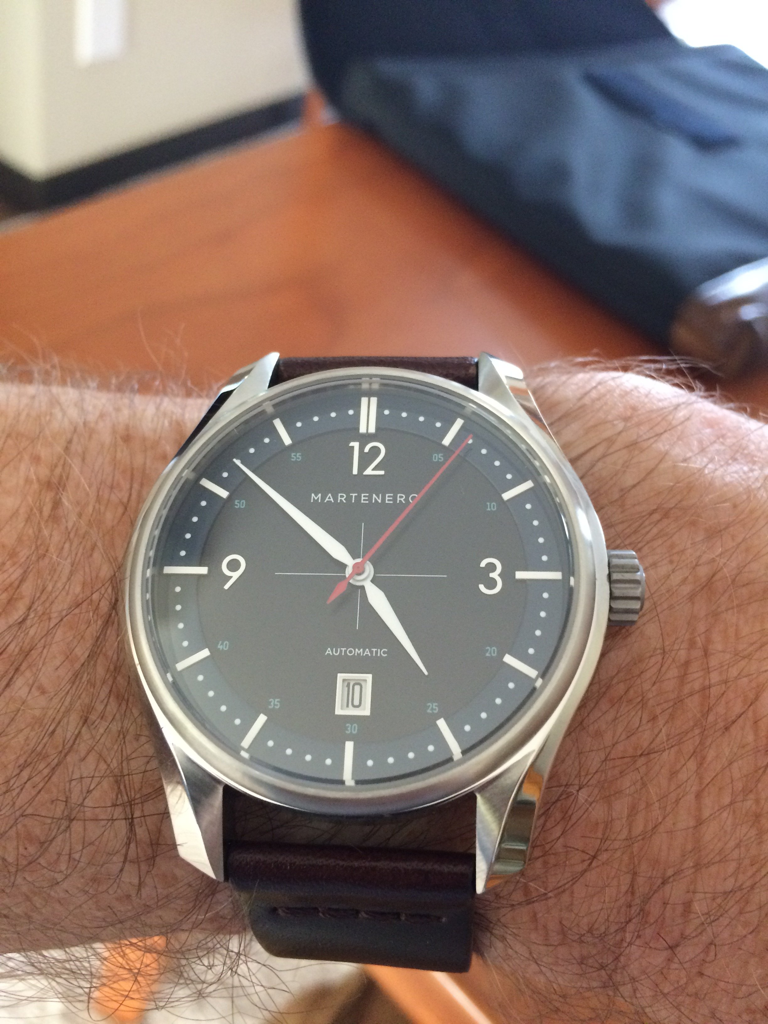 Posts 1,821 Likes 7,258 CdnWatchDoc 路Aug 10, 2018 Brand new to me. Martenero, a New York based microbrand with Miyota 9105 movement and American leather strap. Nice size at 41 mm, cool colour combo (blue bezel, black dial). Could very well become a daily driver!