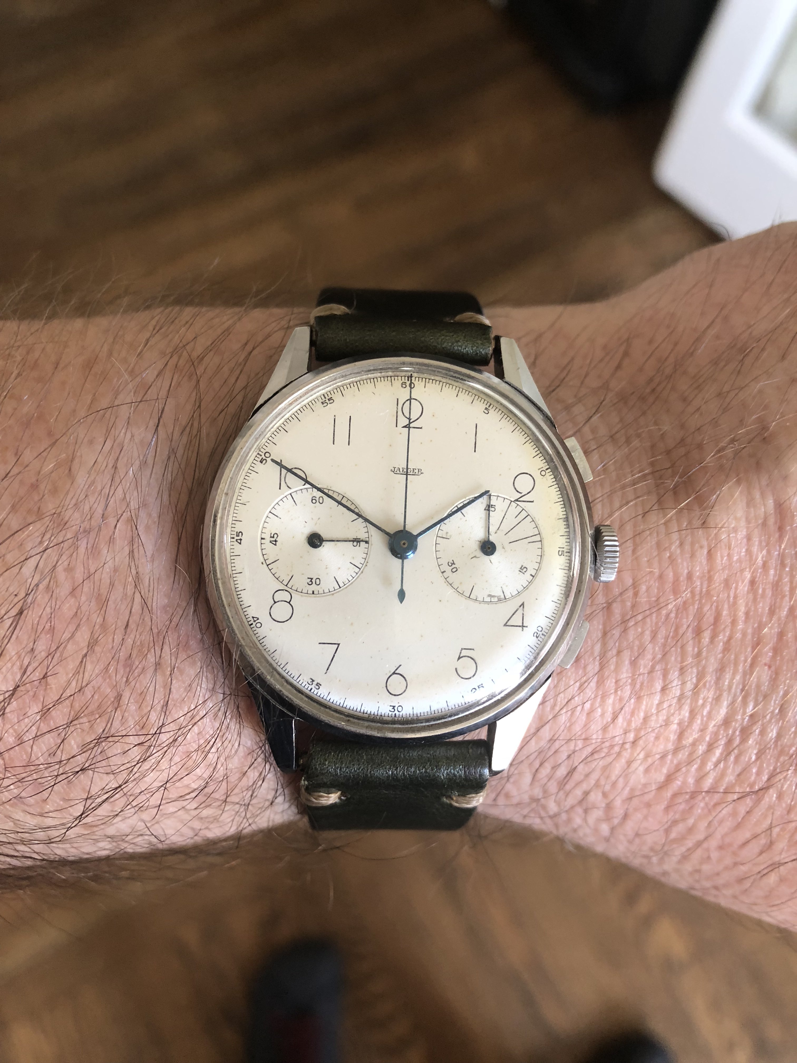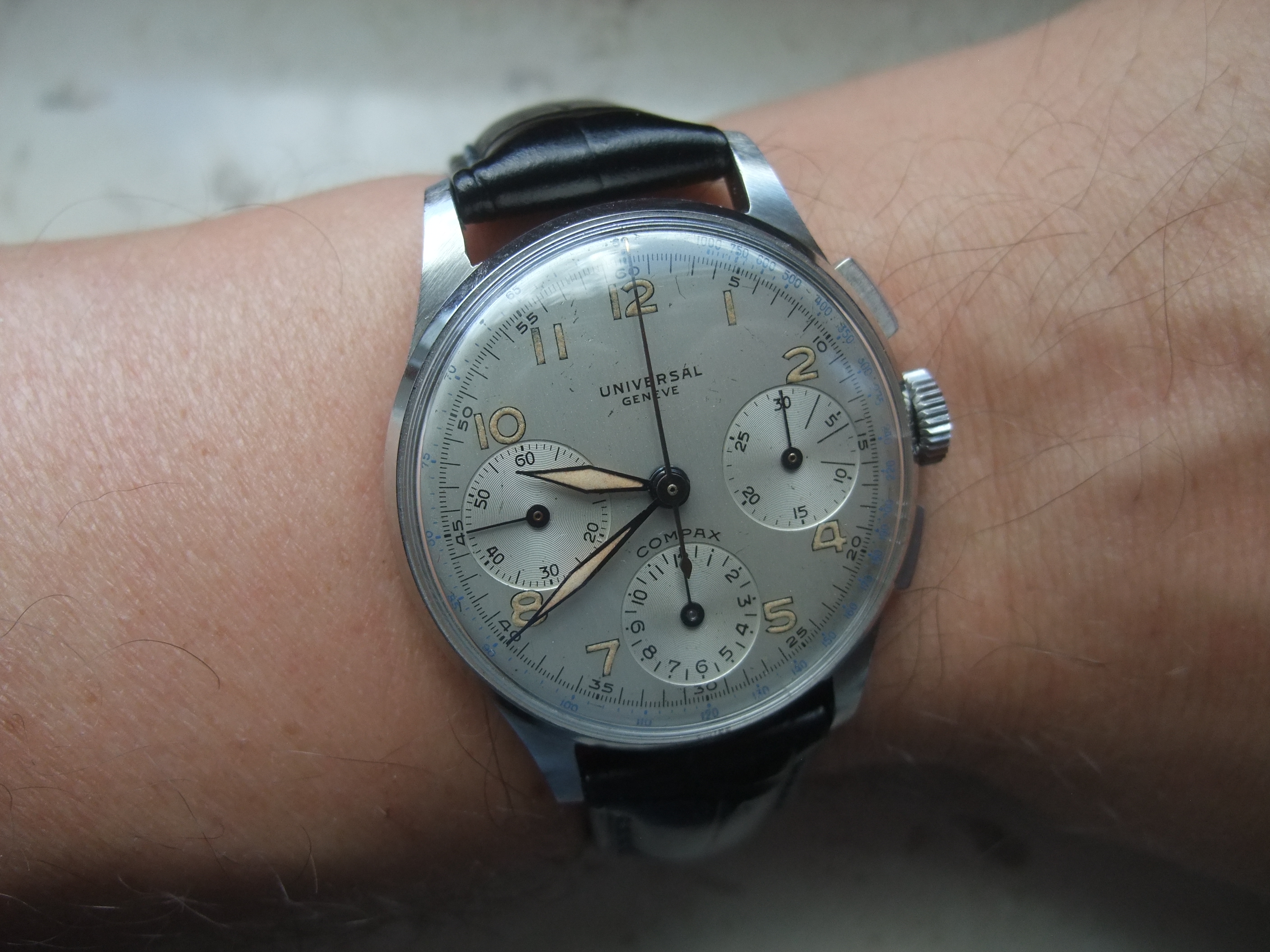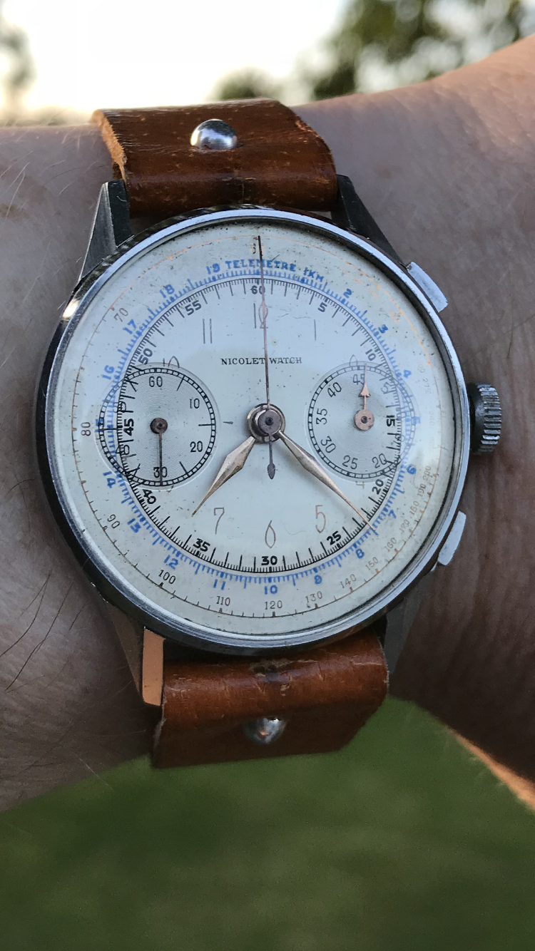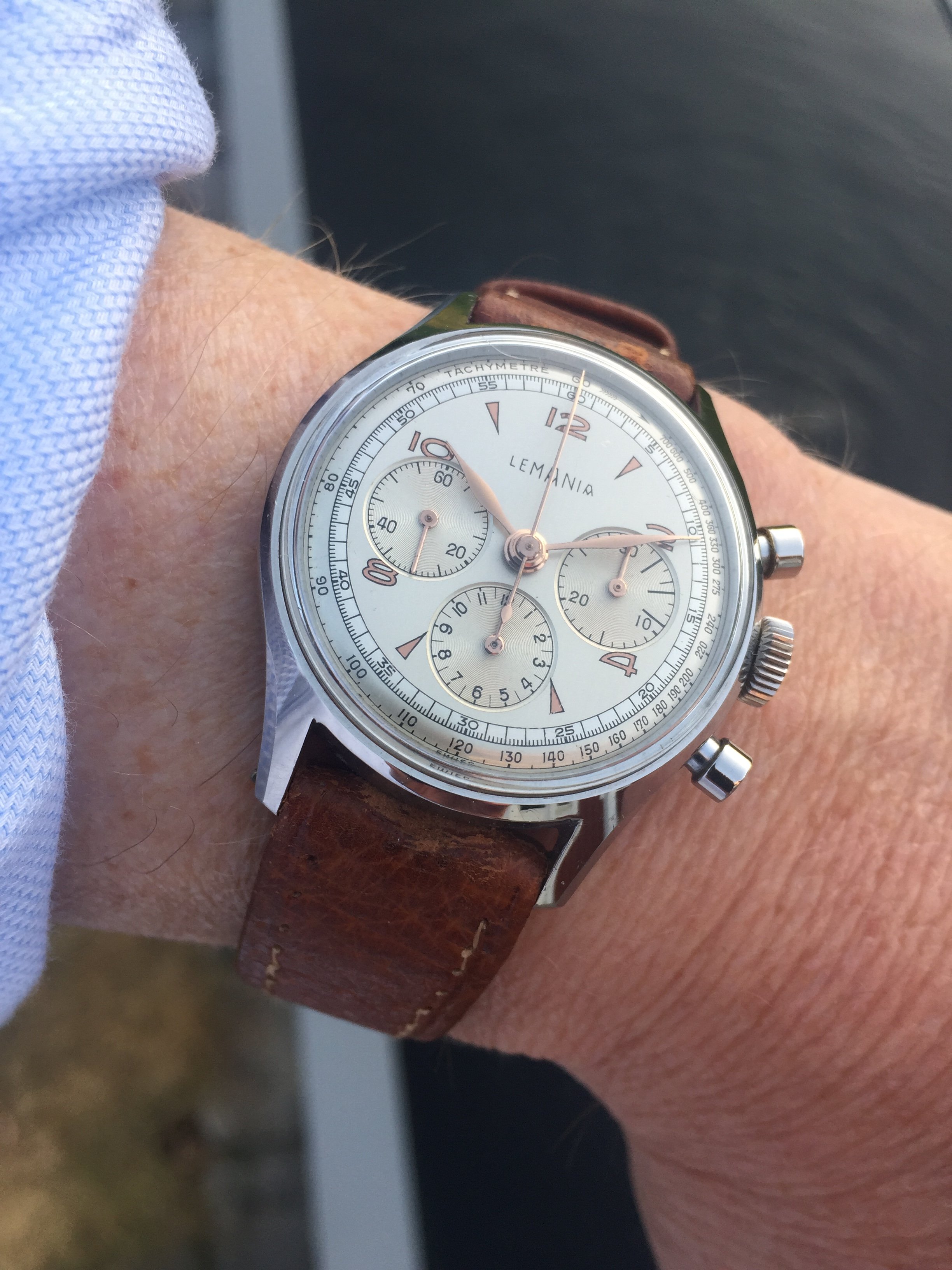 Sometimes lume dial and lume hands are not necessary for chrono satisfaction, this Lemania combines a steel case with rose gold hands and indexes, have a nice weekend.