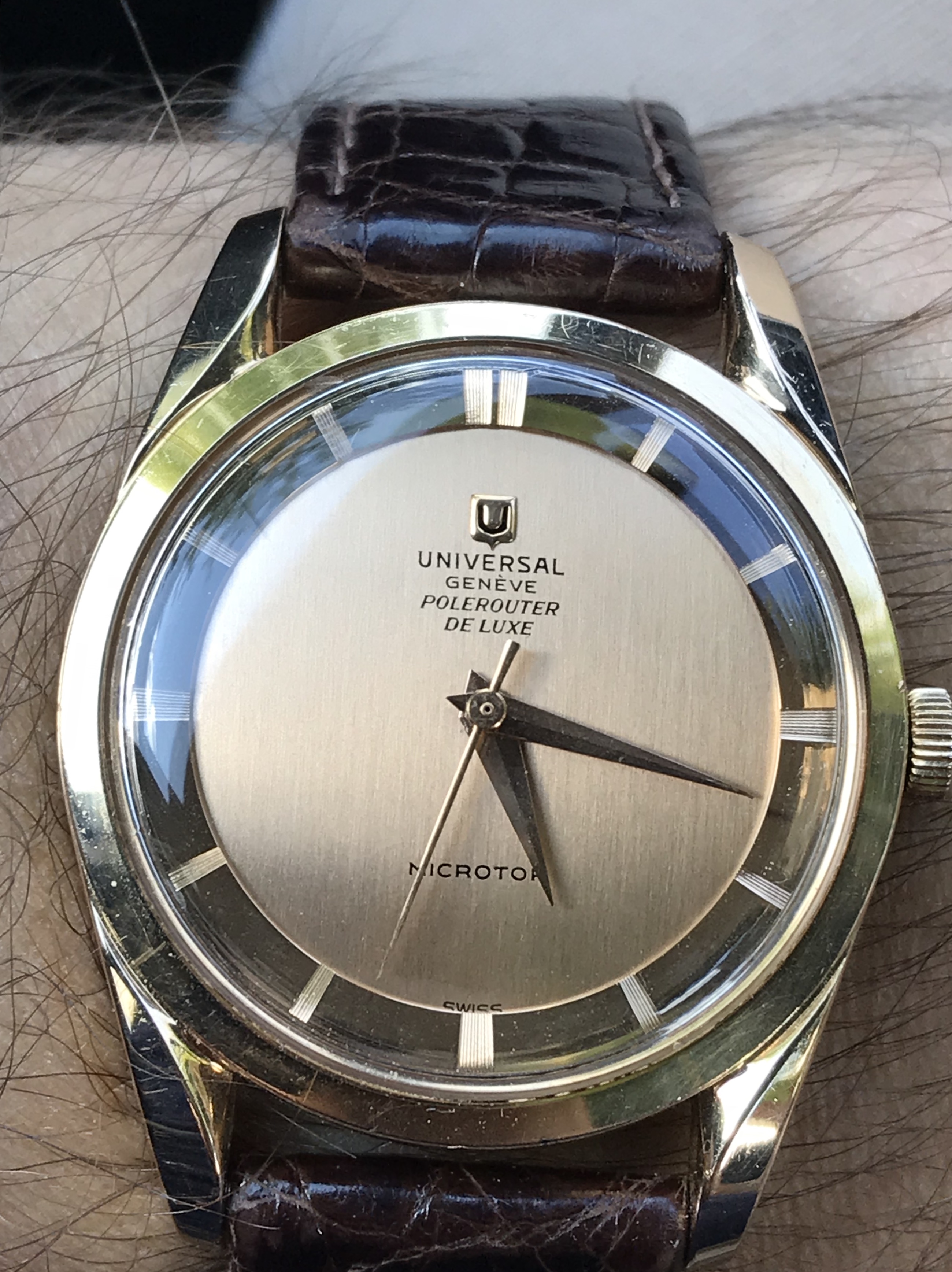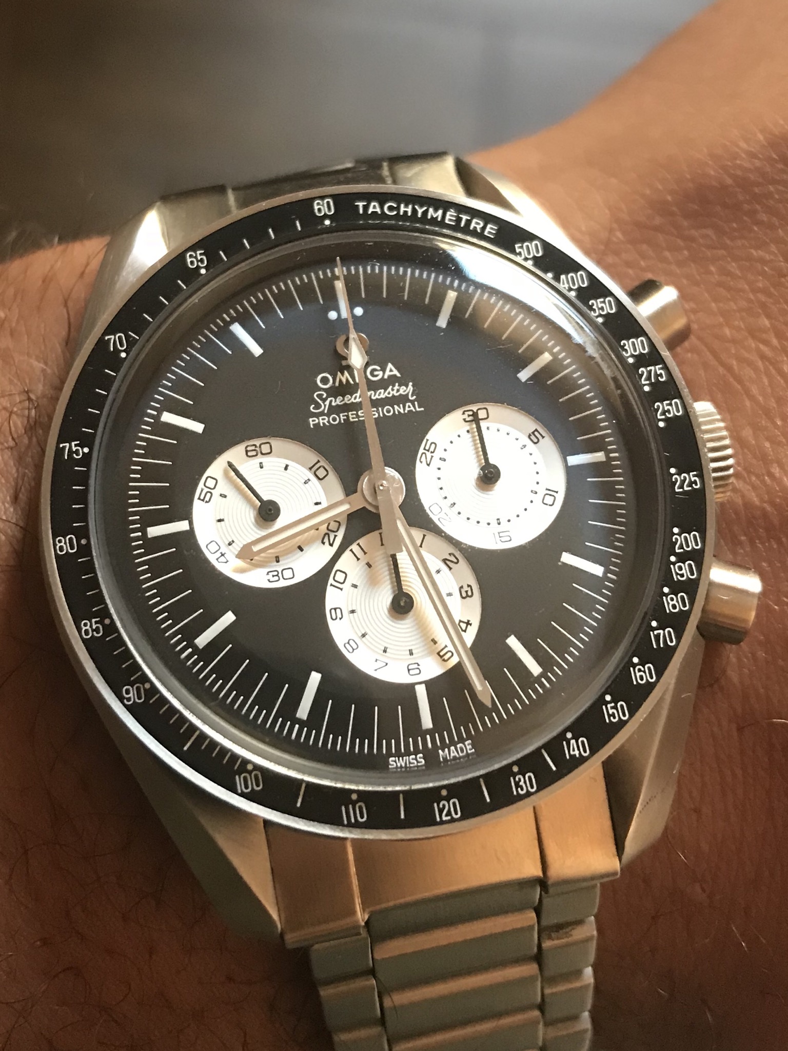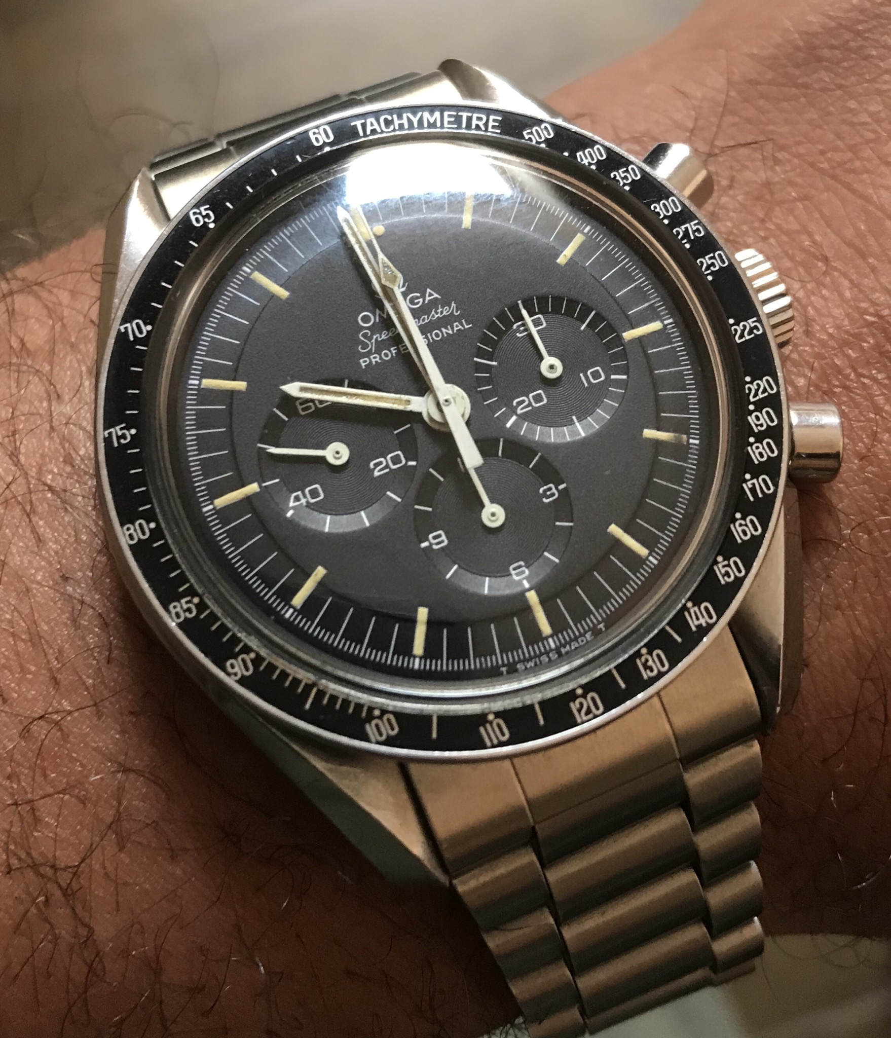 Sometimes lume dial and lume hands are not necessary for chrono satisfaction, this Lemania combines a steel case with rose gold hands and indexes, have a nice weekend.