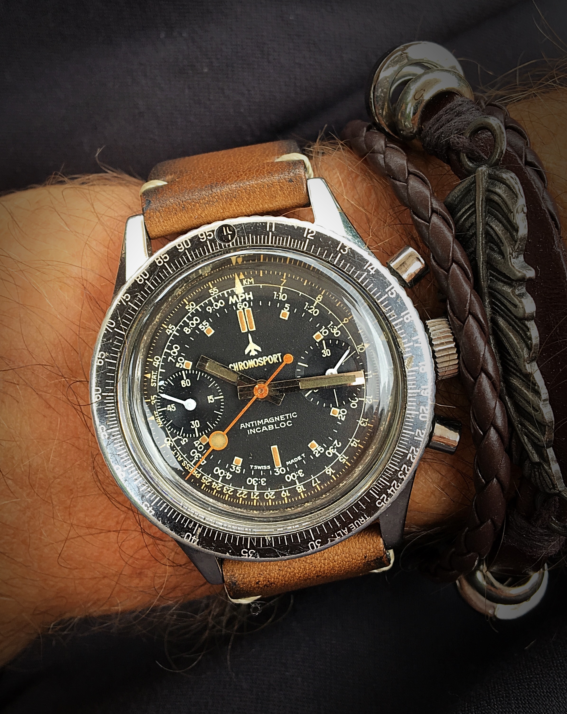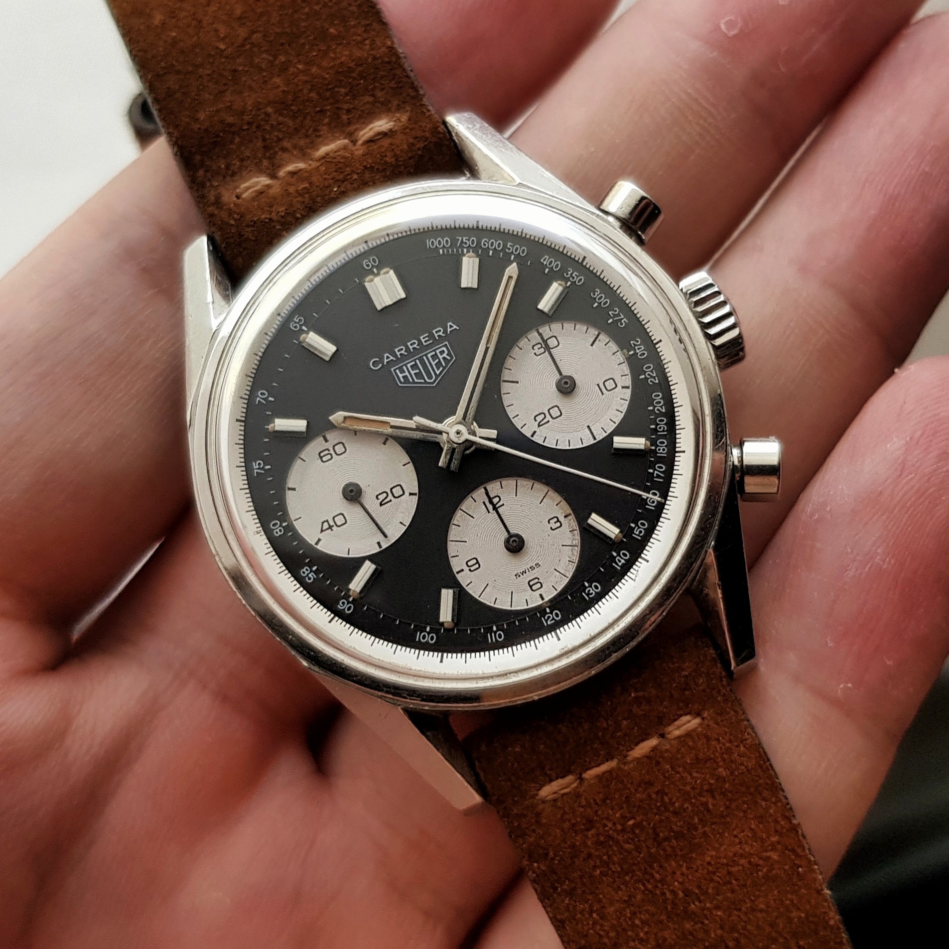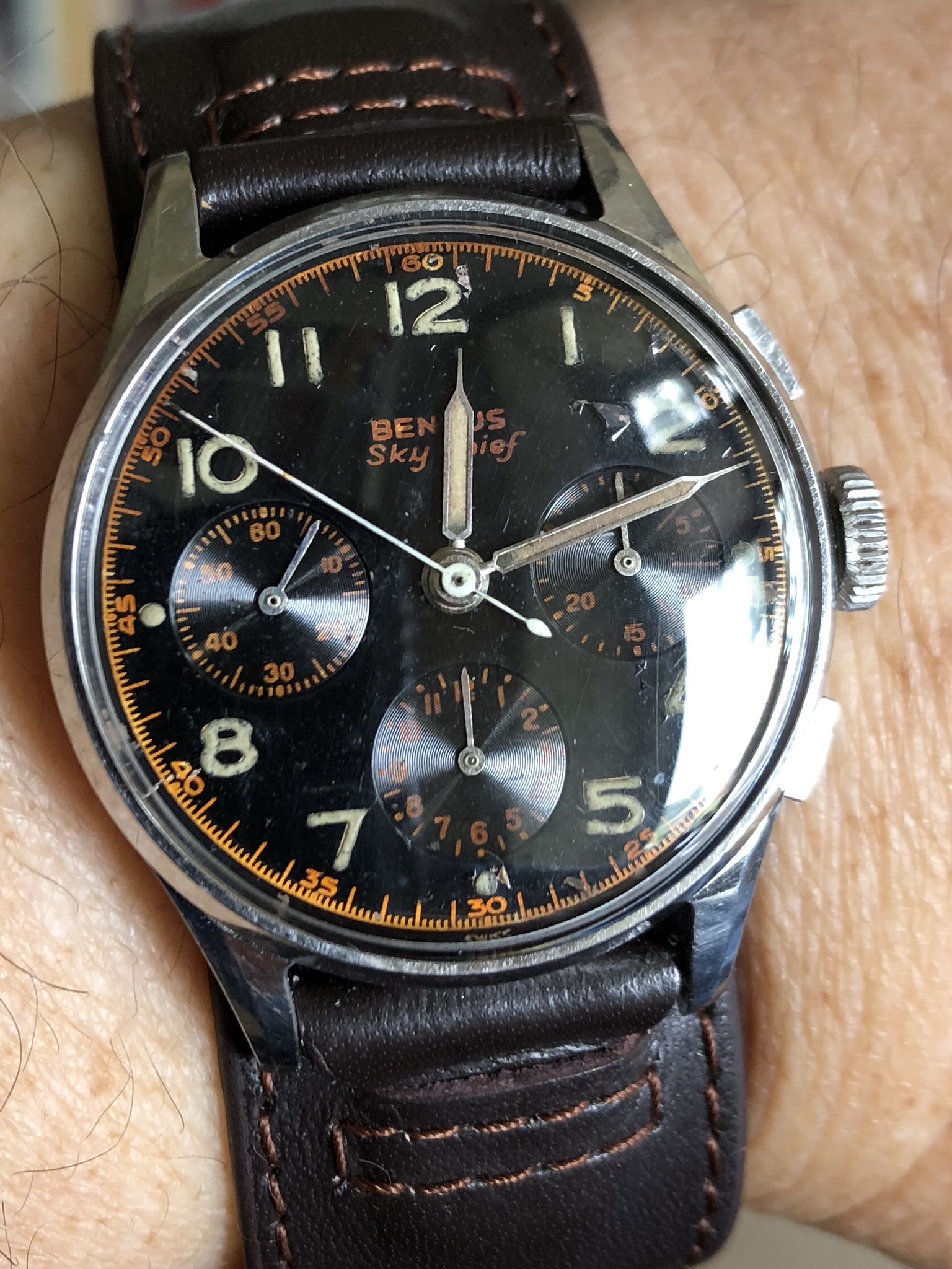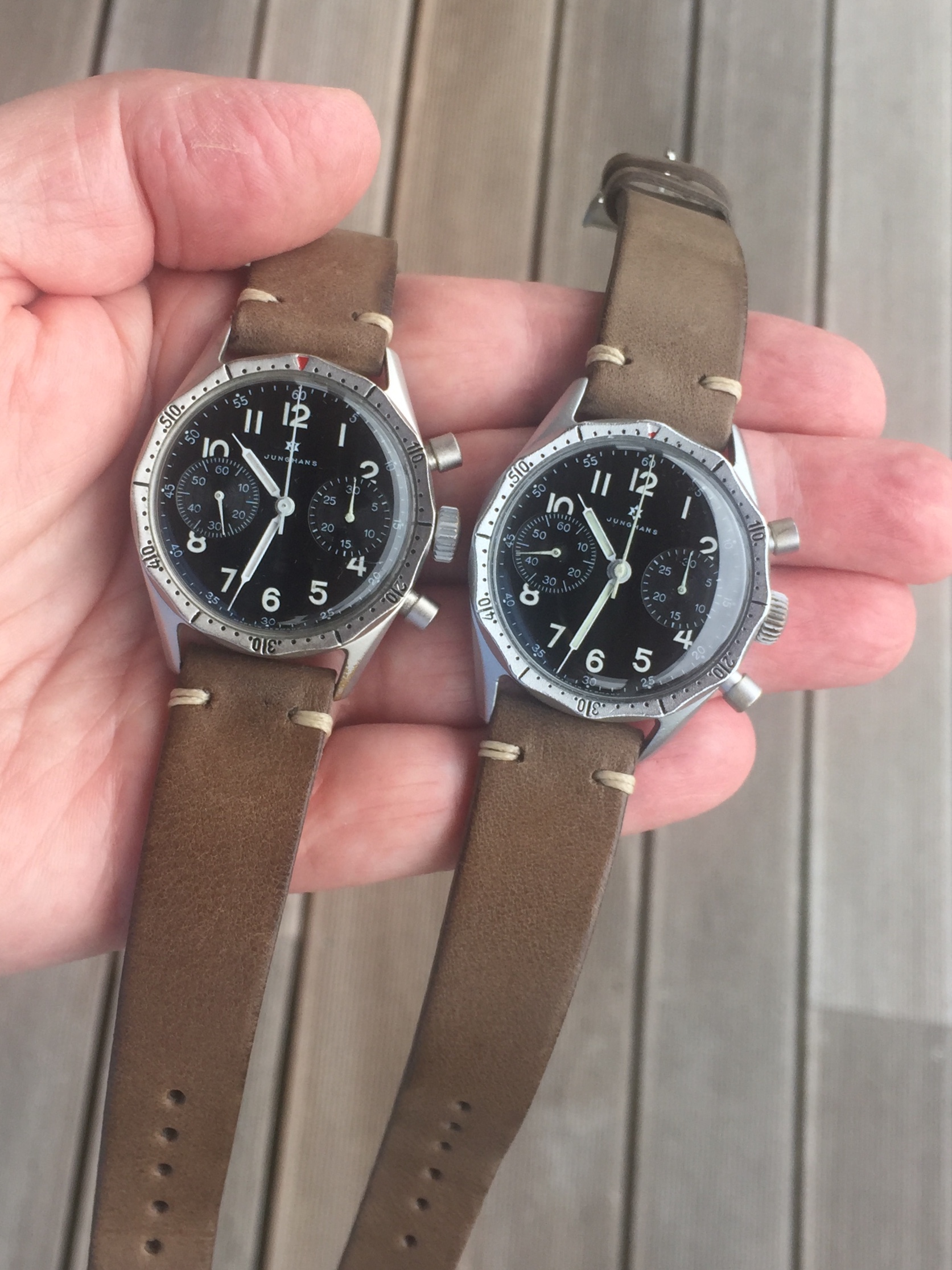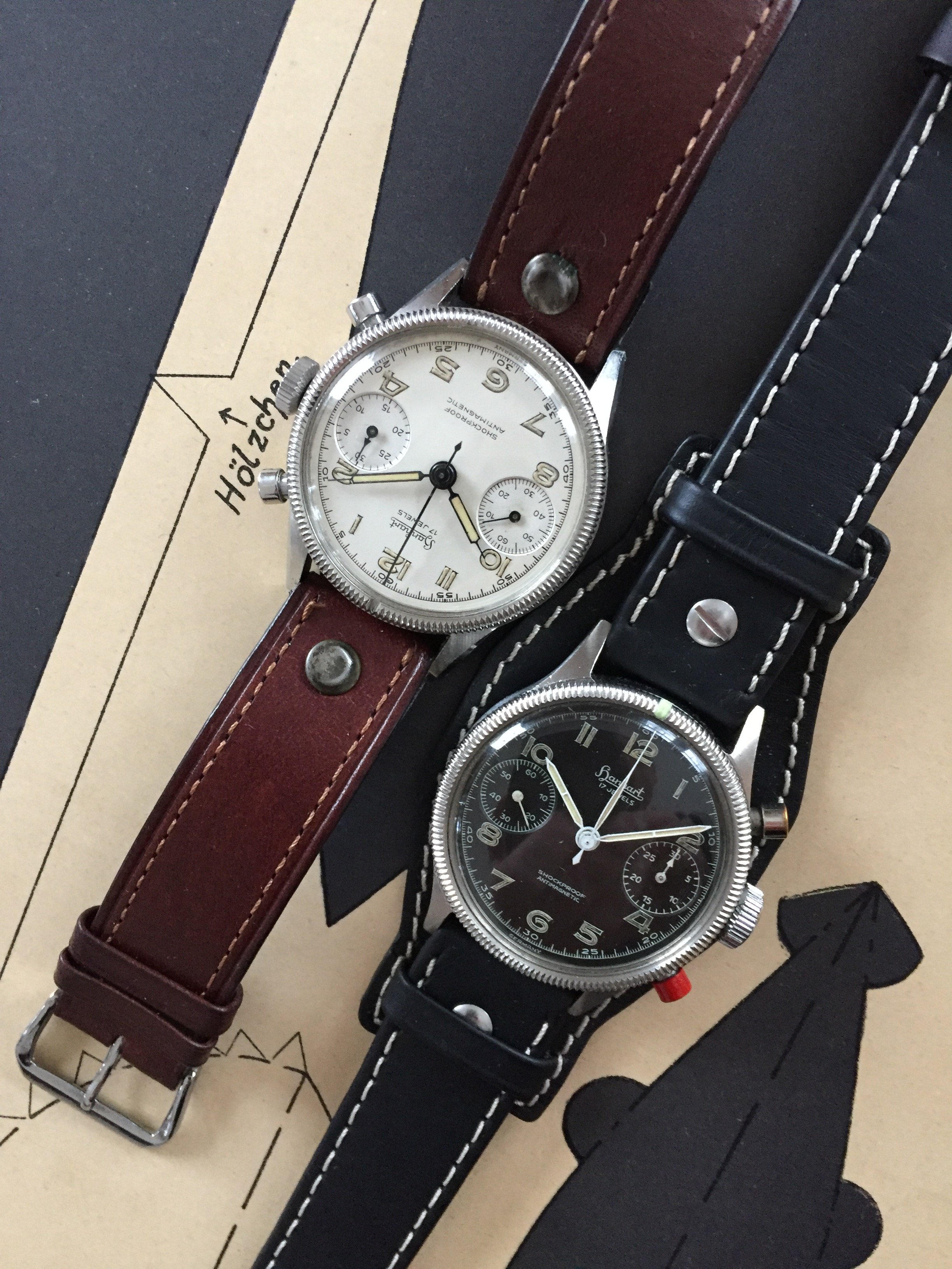 At least I found a nice Heuer Bund to complete my Trilogy, meaning the first 3 watches of the german airforce after WW2, Hanhart 417 ES, Junghans Bund and then the Heuer. The white Hanhart 417 ES is an uber rare piece, never saw a second one, only in Konrad Knirim‘s book about military timepieces. Enjoy your Sunday all.