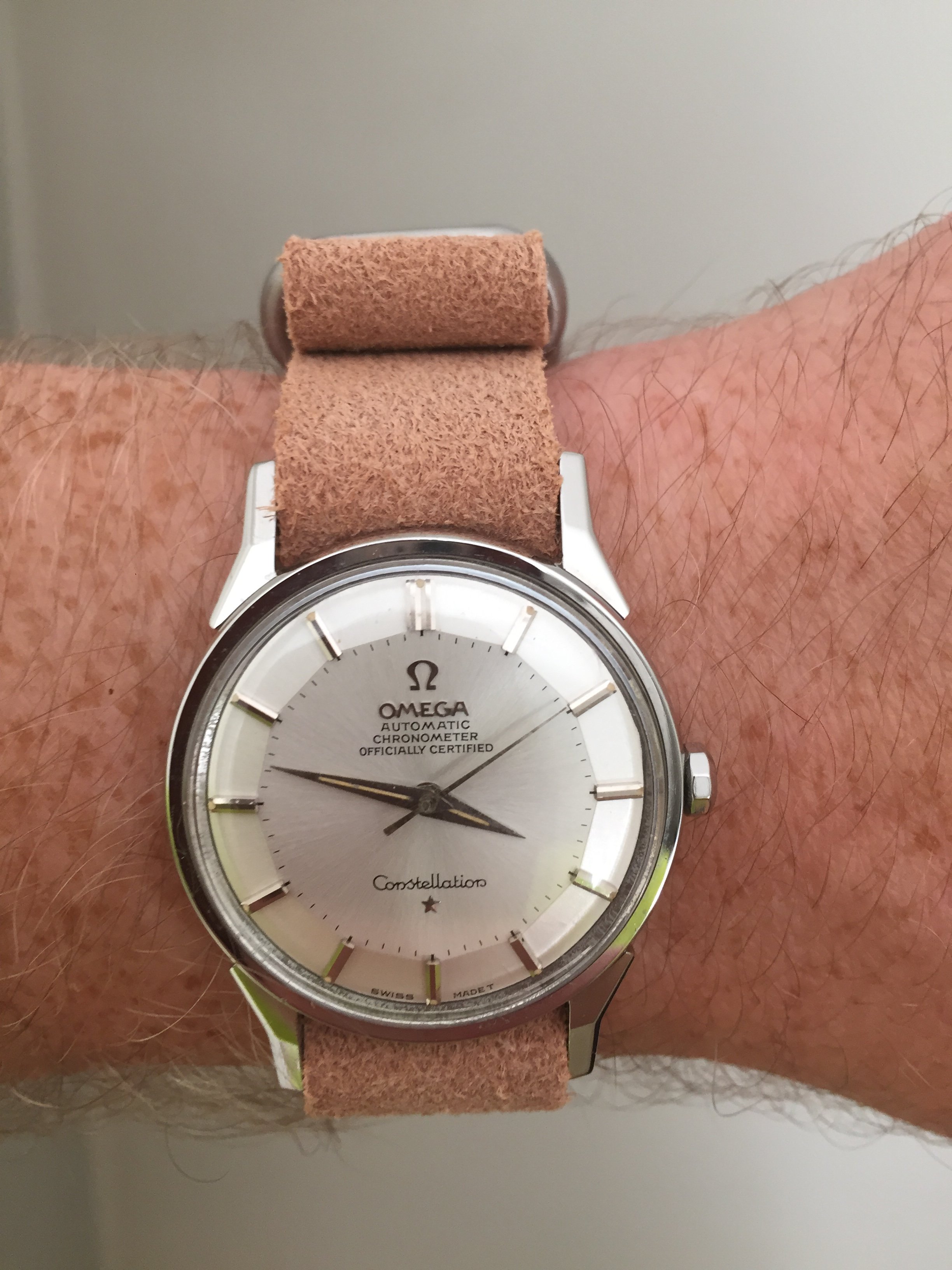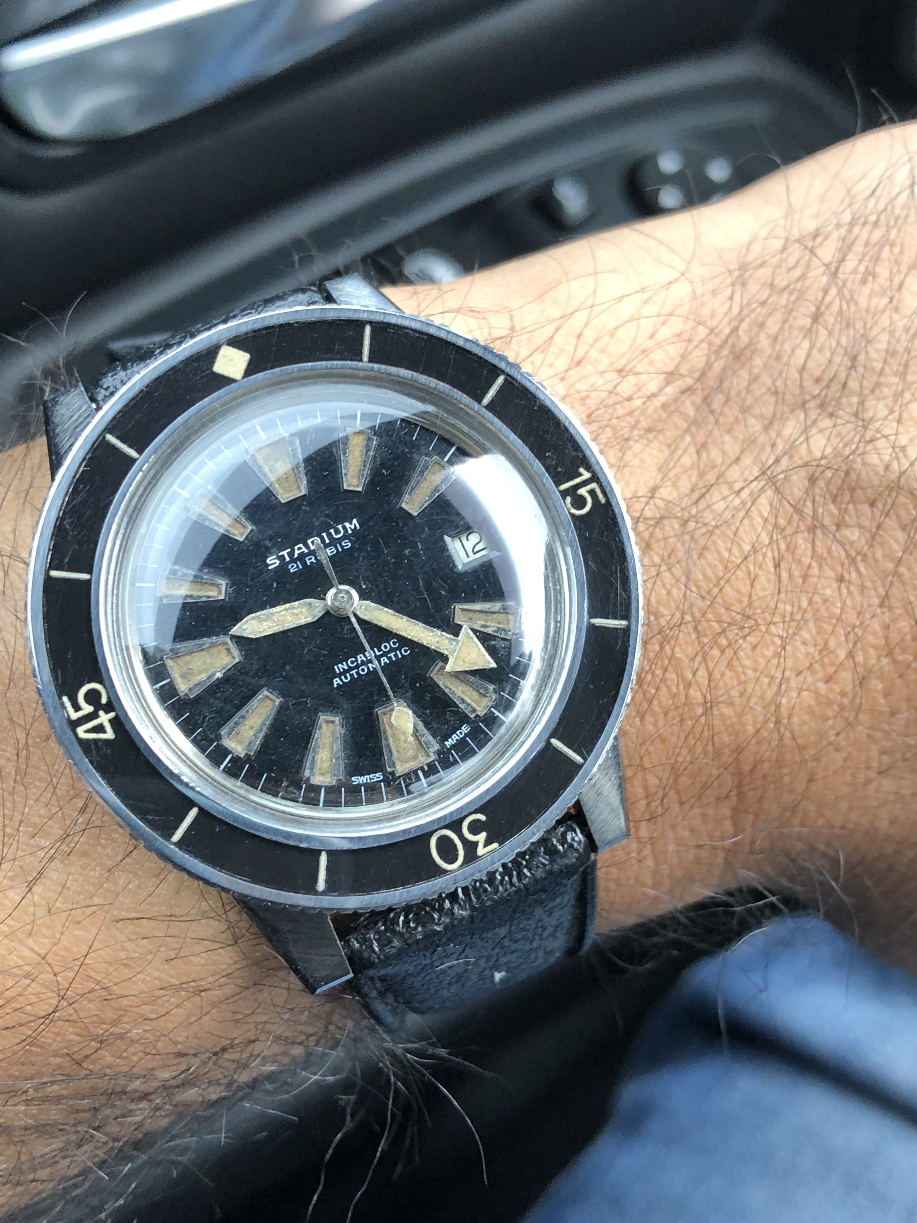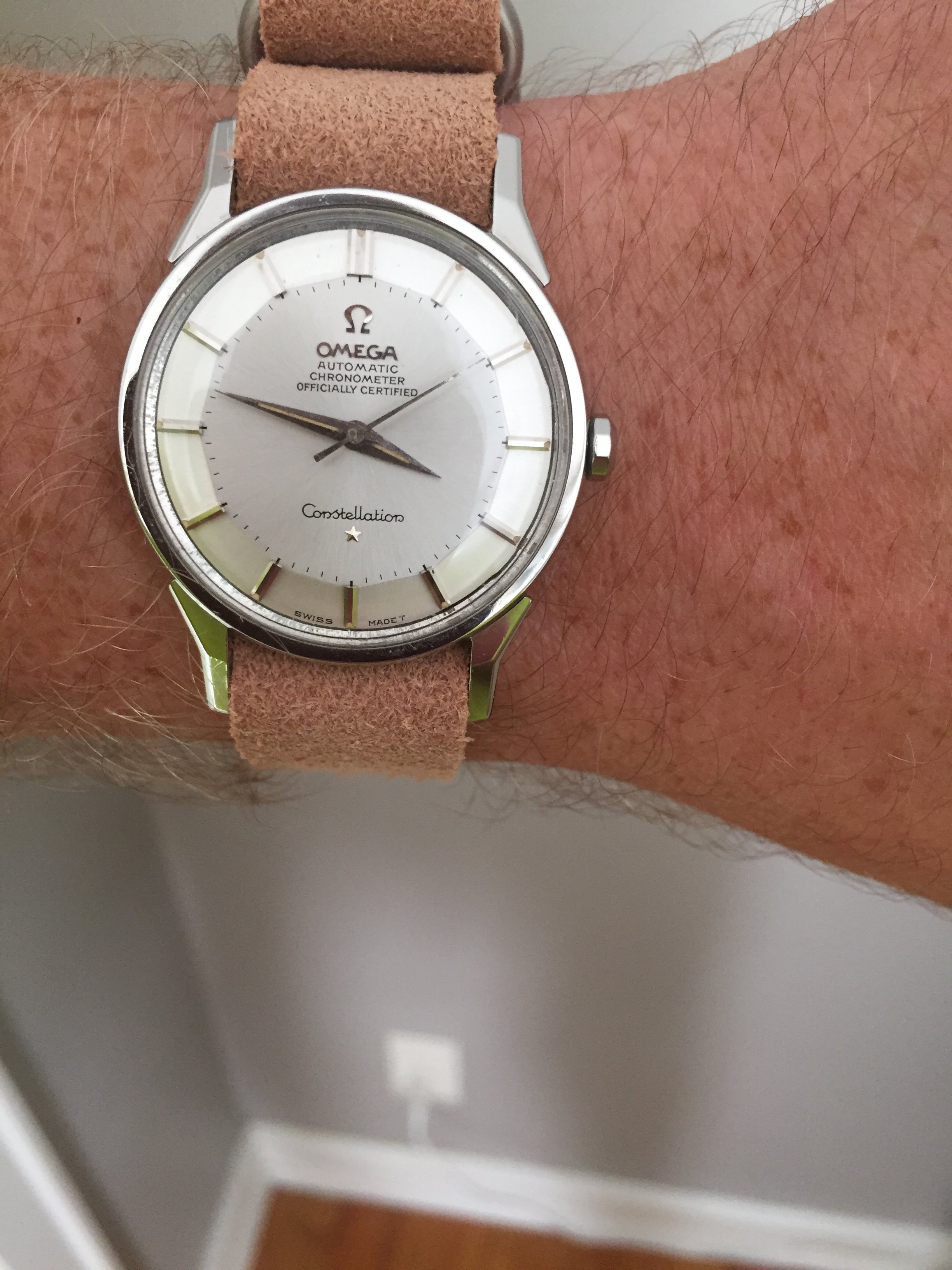 Lost (well, misplaced) and found....my dad's 1940s Movado "Sport", which I stuck in a box when we moved several years ago and wasn't able to find until last night....stainless case with screw down back and rose gold bezel and crown...fifteen jewels, 28mm case diameter, 39mm lug-to-lug, 16mm band.....serviced and "restored" by Movado 25-30 years ago.