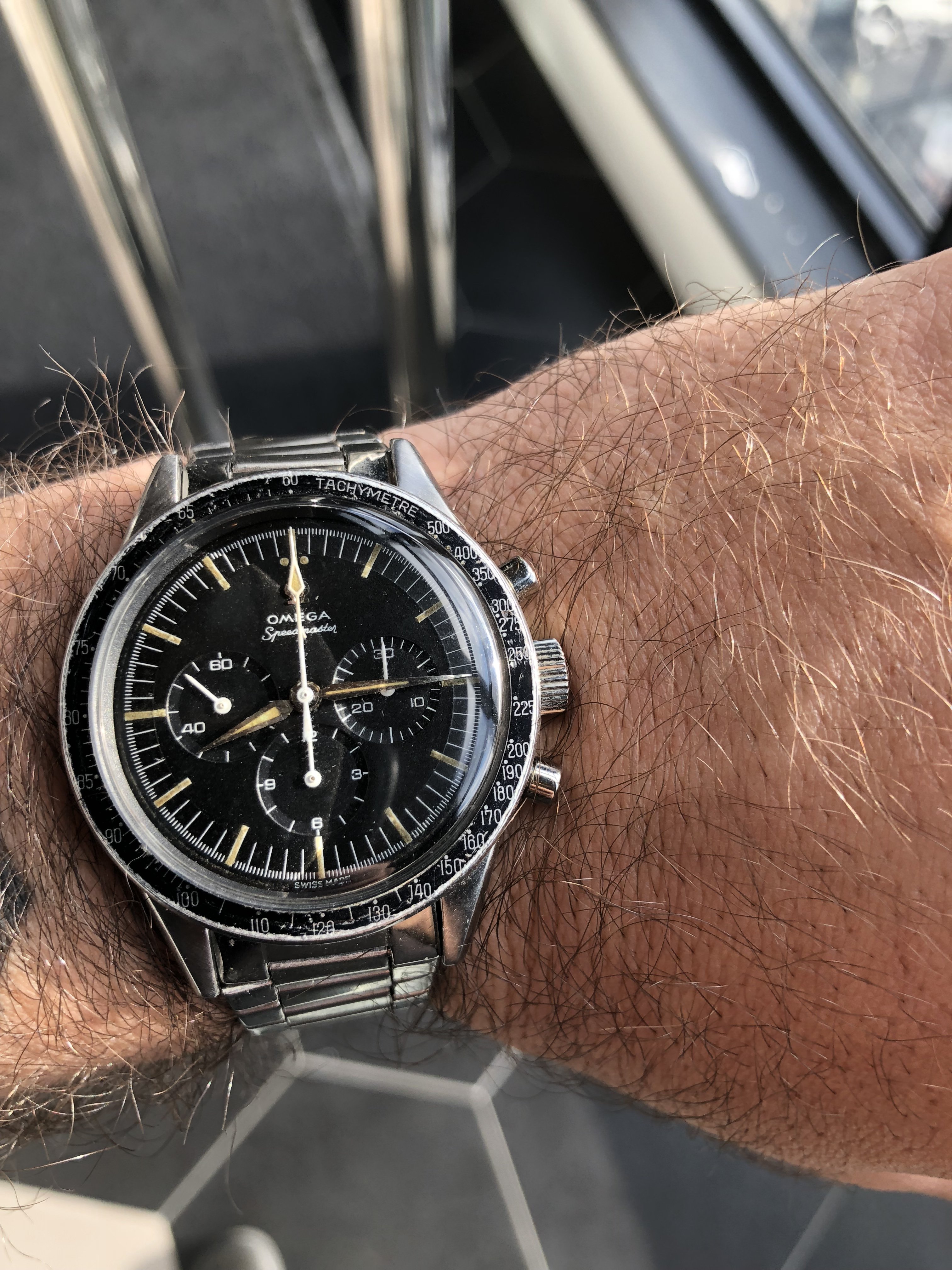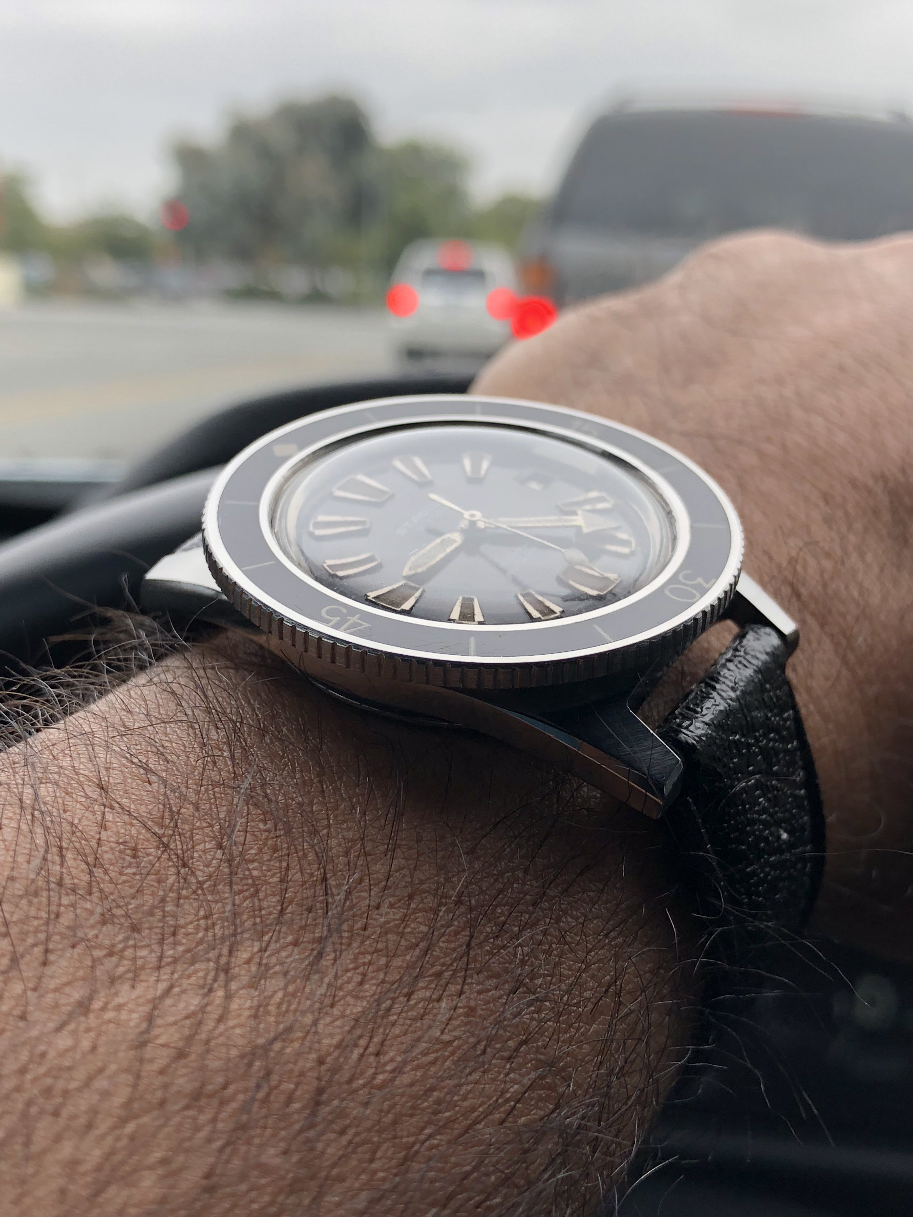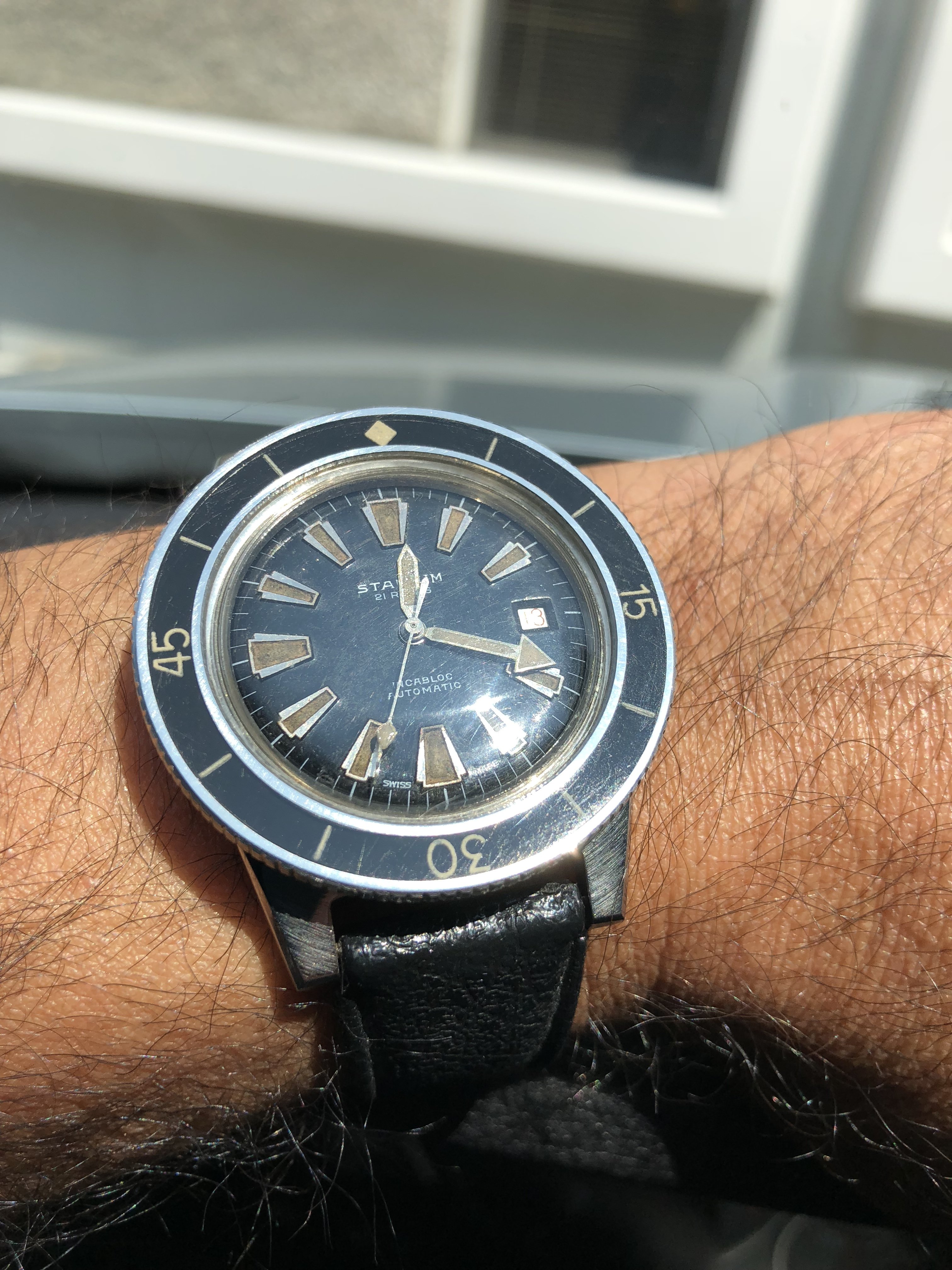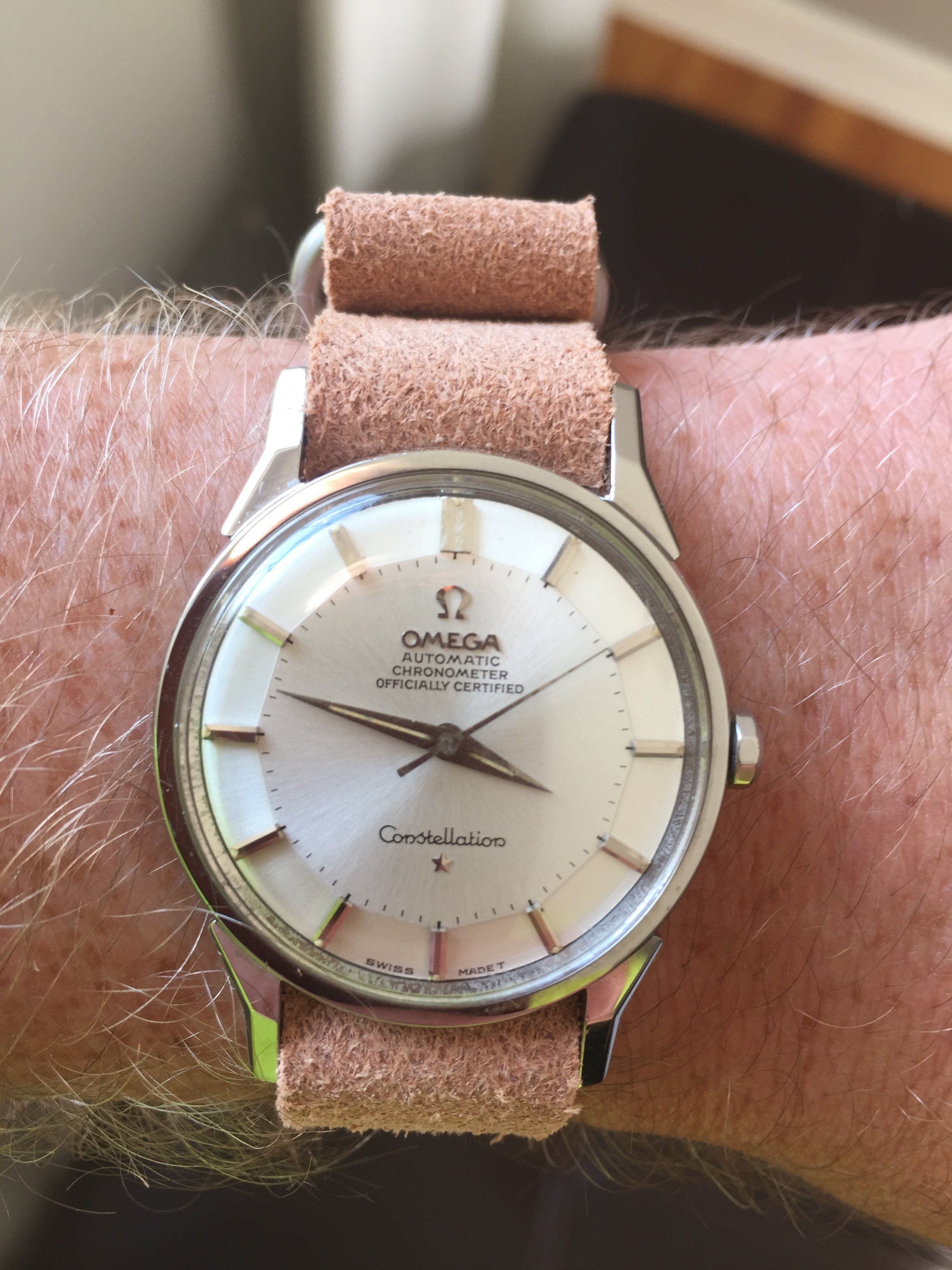 Lost (well, misplaced) and found....my dad's 1940s Movado "Sport", which I stuck in a box when we moved several years ago and wasn't able to find until last night....stainless case with screw down back and rose gold bezel and crown...fifteen jewels, 28mm case diameter, 39mm lug-to-lug, 16mm band.....serviced and "restored" by Movado 25-30 years ago.