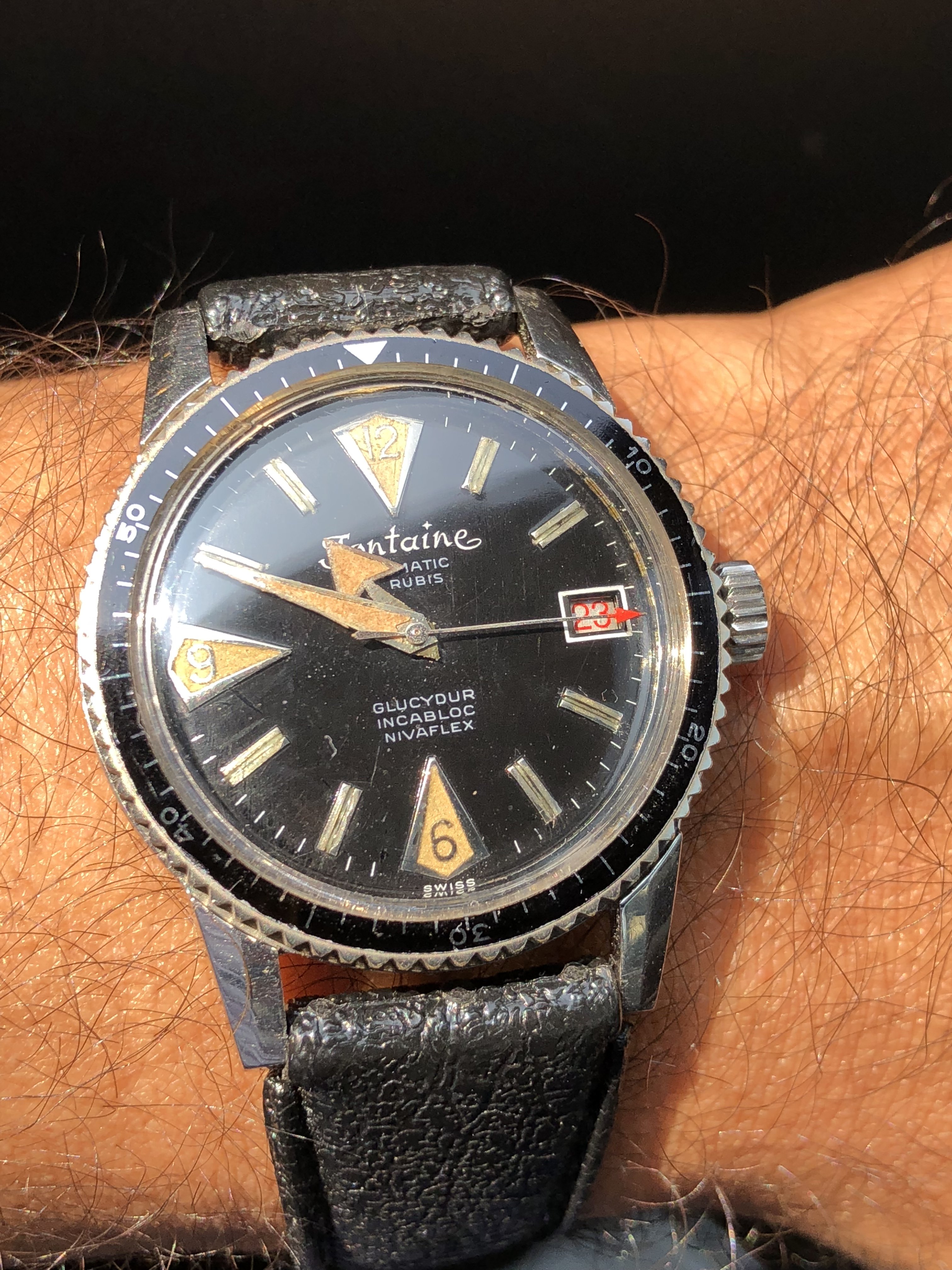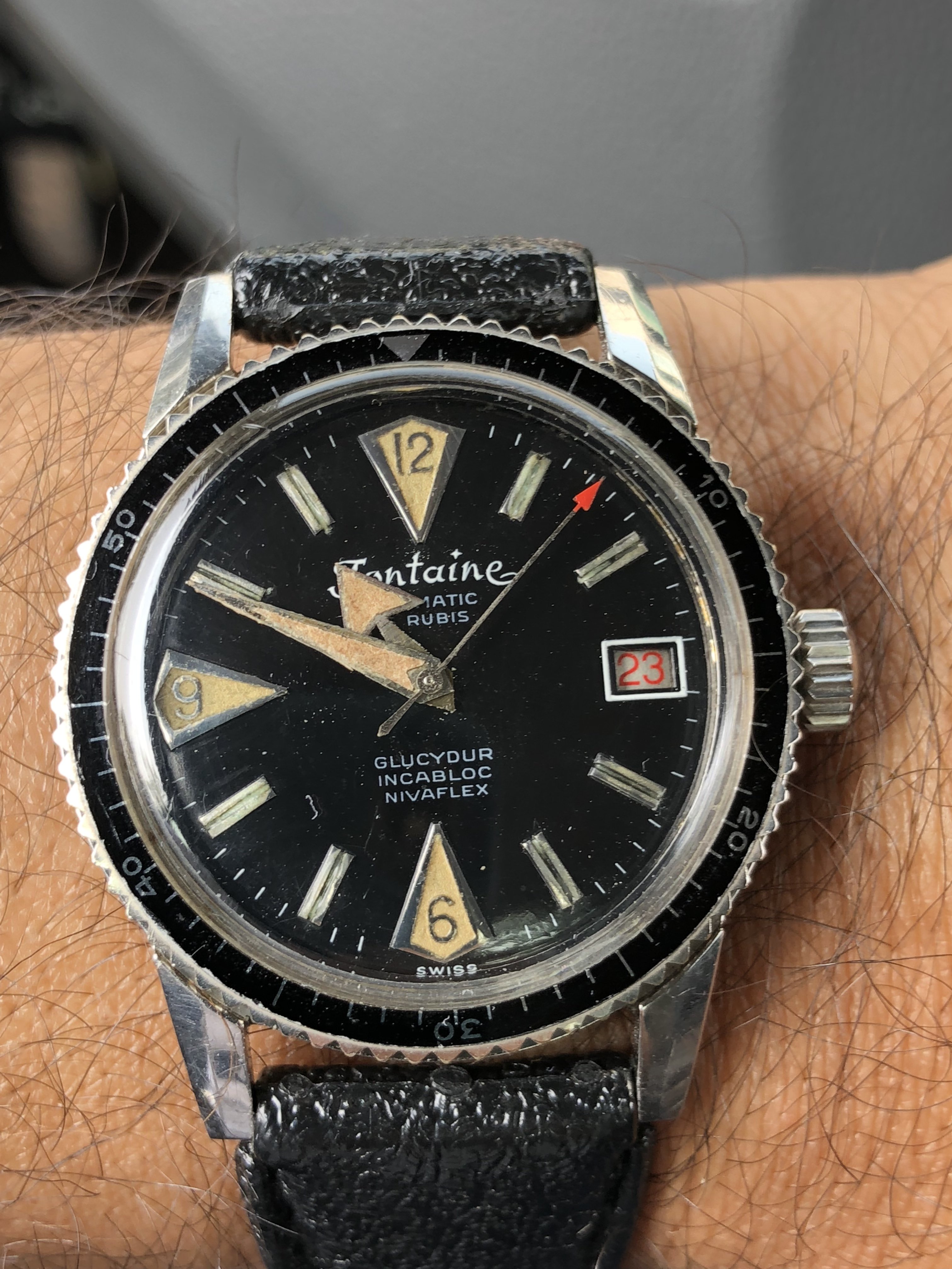 Wearing another project today, a 105.012-66CB with a nice case but service luminova dial and hands. It came to me this way, including the really nice DON bezel, from eBay earlier this year, for $5.5k, which seemed like a screaming good deal (a known vulnerability of mine.😗 )