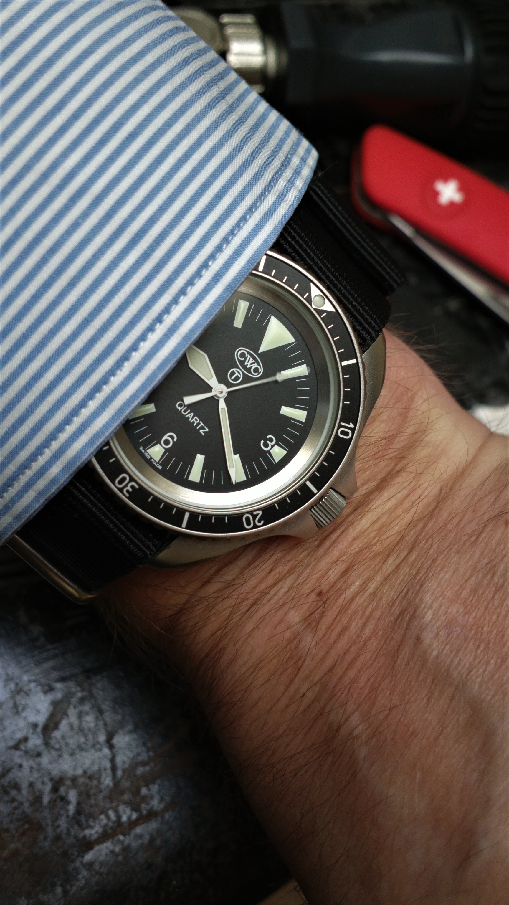 Now thinking of returning it to tritium. I already have a dial, just need the tritium hands. I doubt I’d bother replacing the service pushers though - the narrow necks look sort of cool.