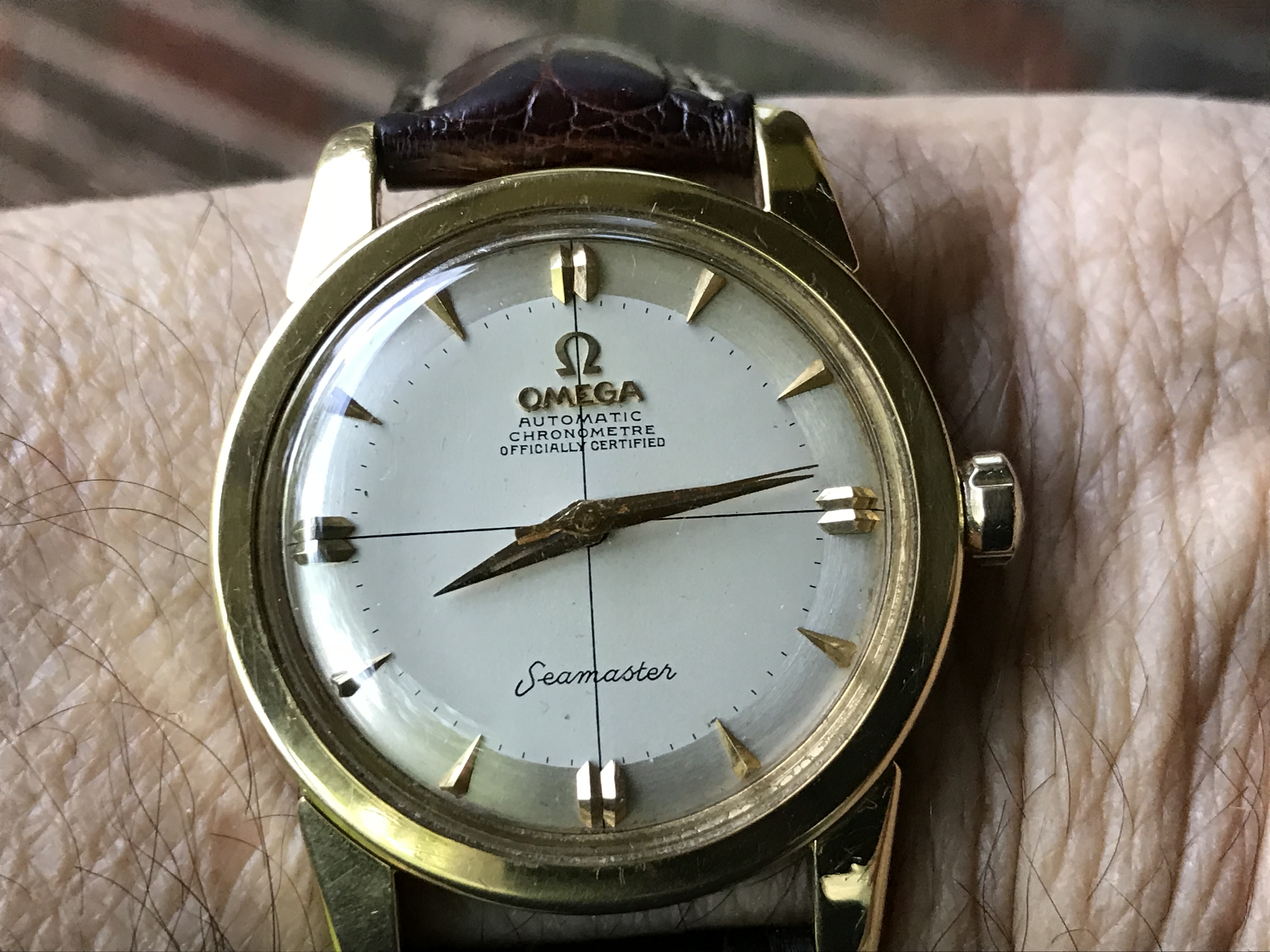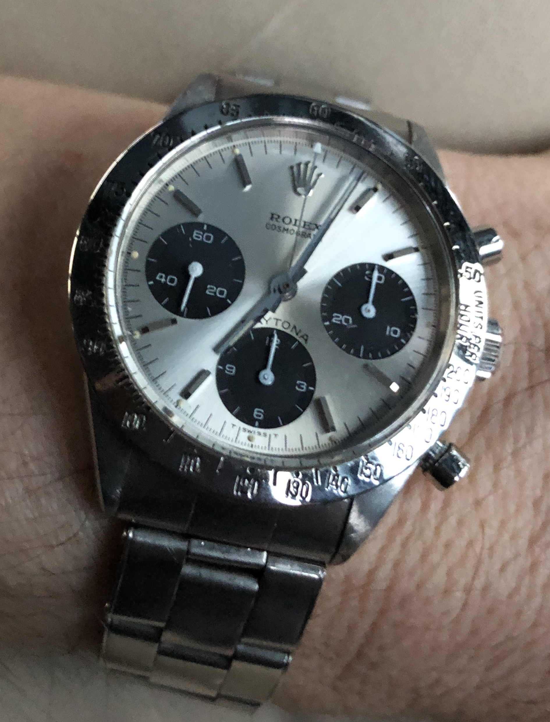 Wearing another project today, a 105.012-66CB with a nice case but service luminova dial and hands. It came to me this way, including the really nice DON bezel, from eBay earlier this year, for $5.5k, which seemed like a screaming good deal (a known vulnerability of mine.😗 )