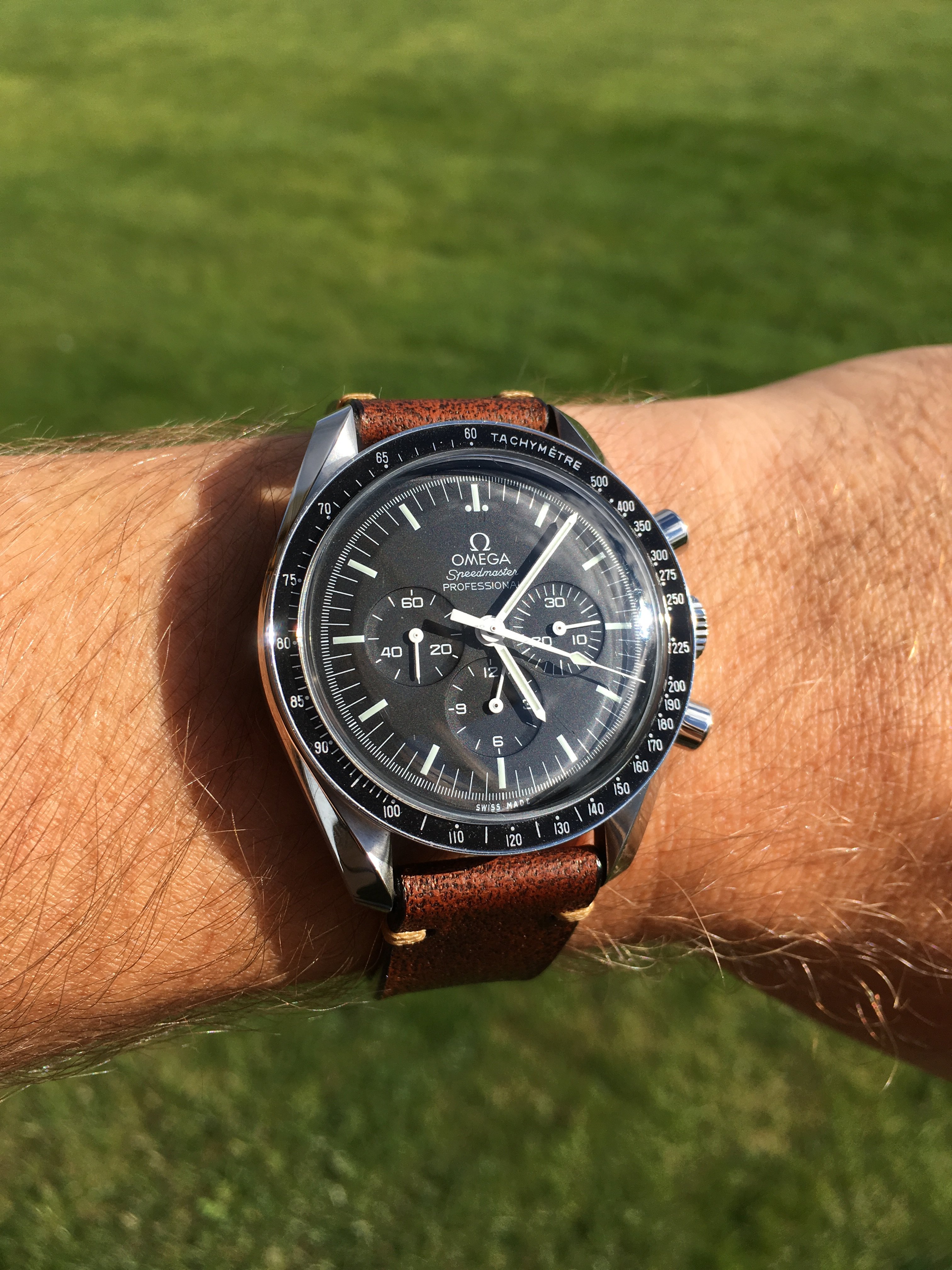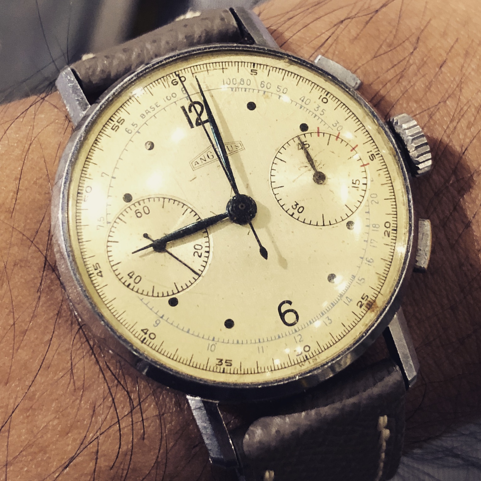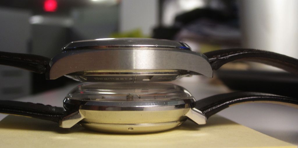 I did replace a flat bottomed chrono hand that was on the watch with the drop end that’s on it now, but still luminova.