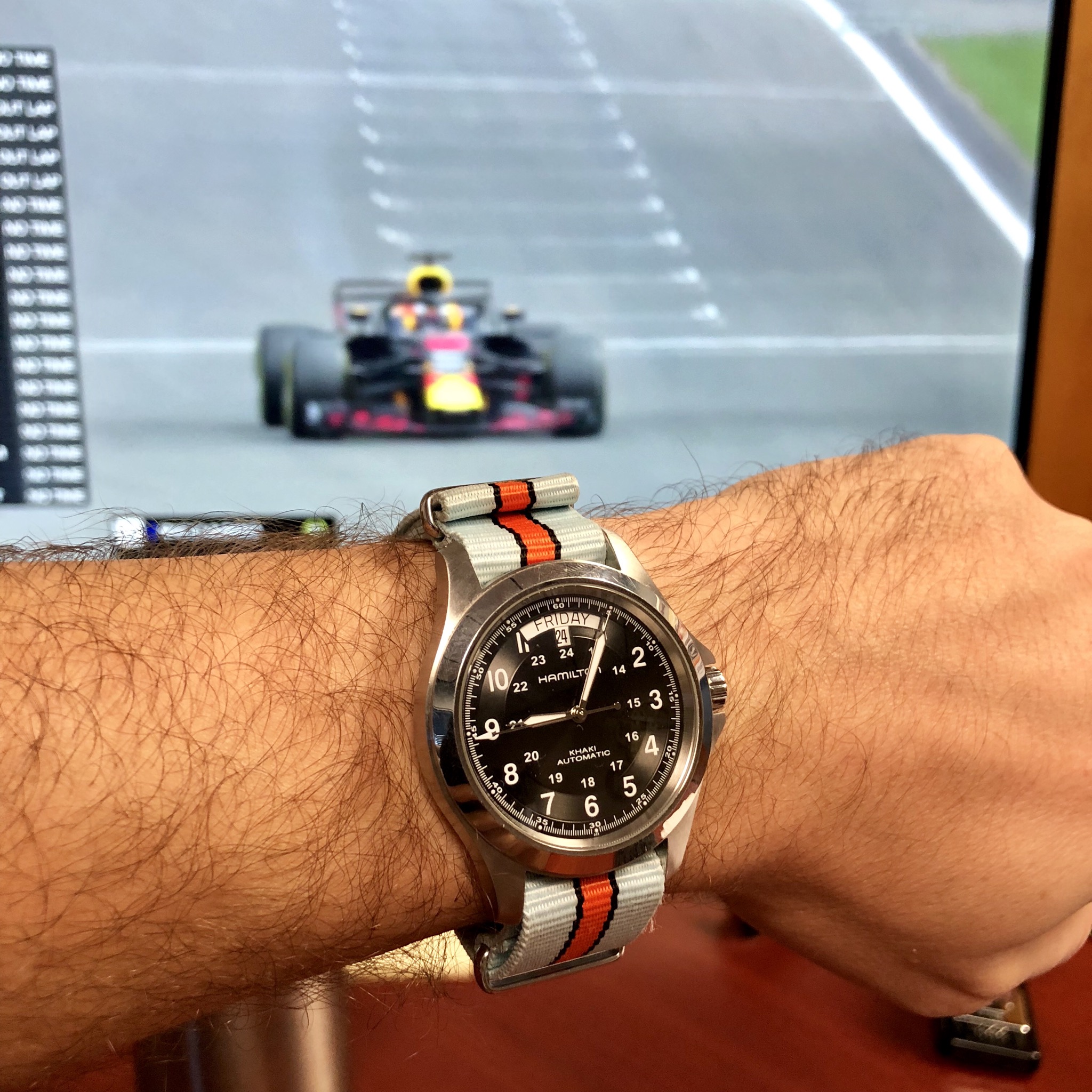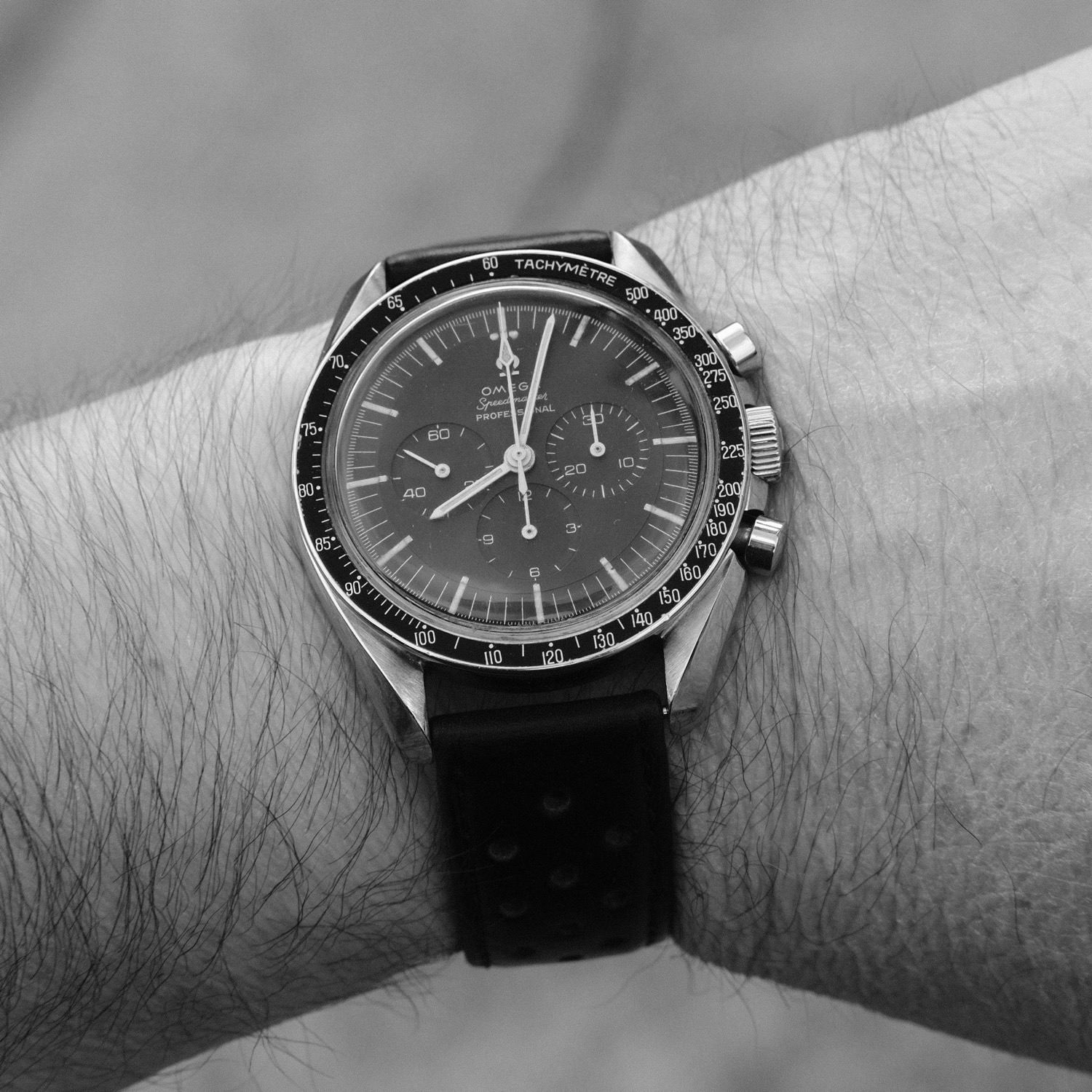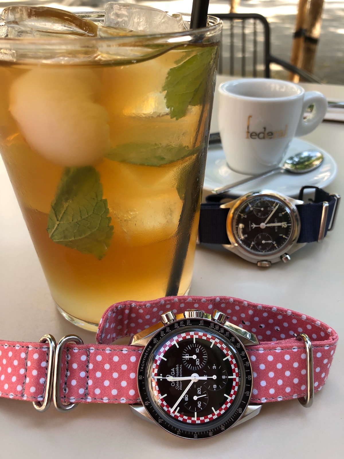I did replace a flat bottomed chrono hand that was on the watch with the drop end that’s on it now, but still luminova.