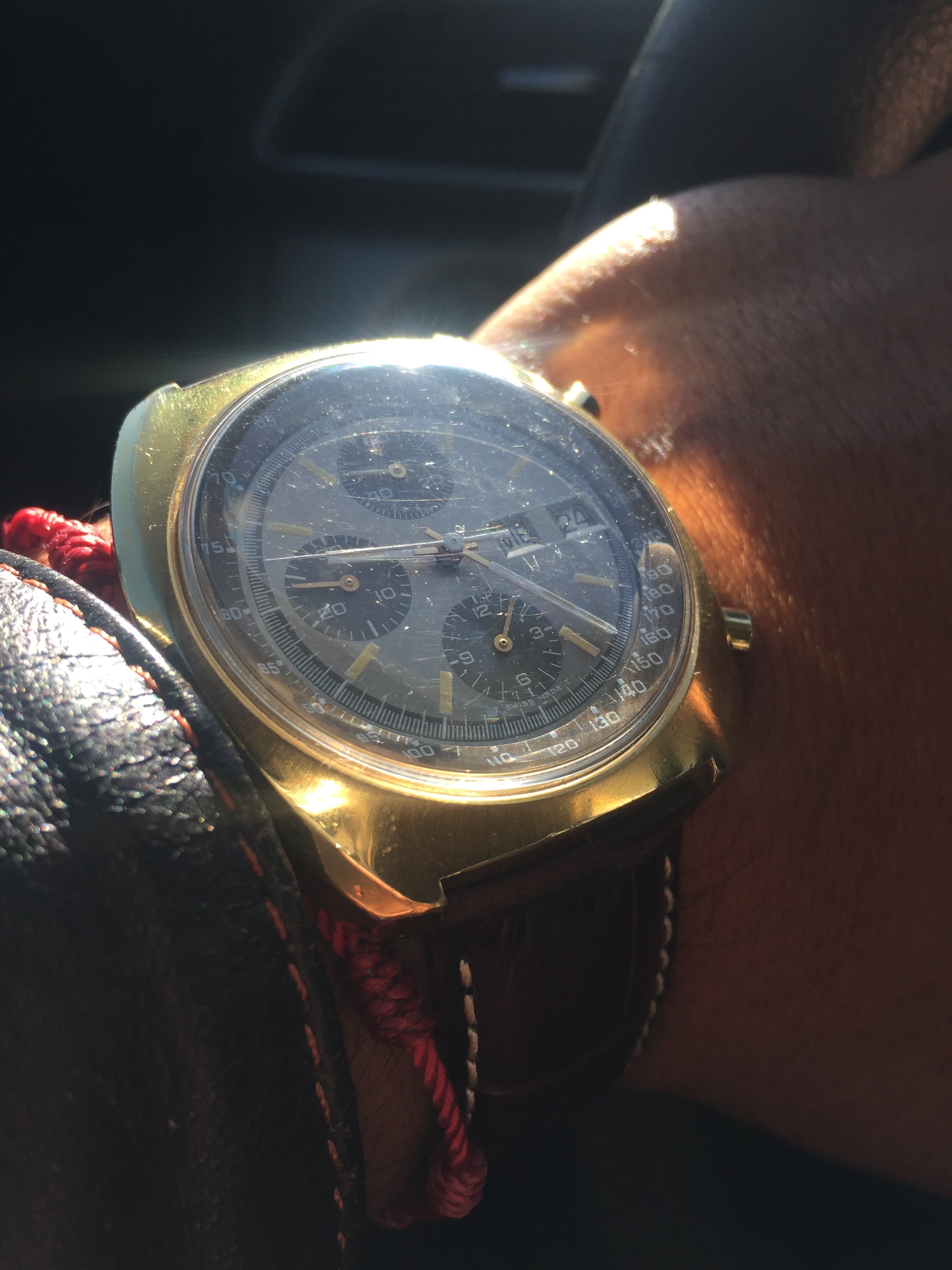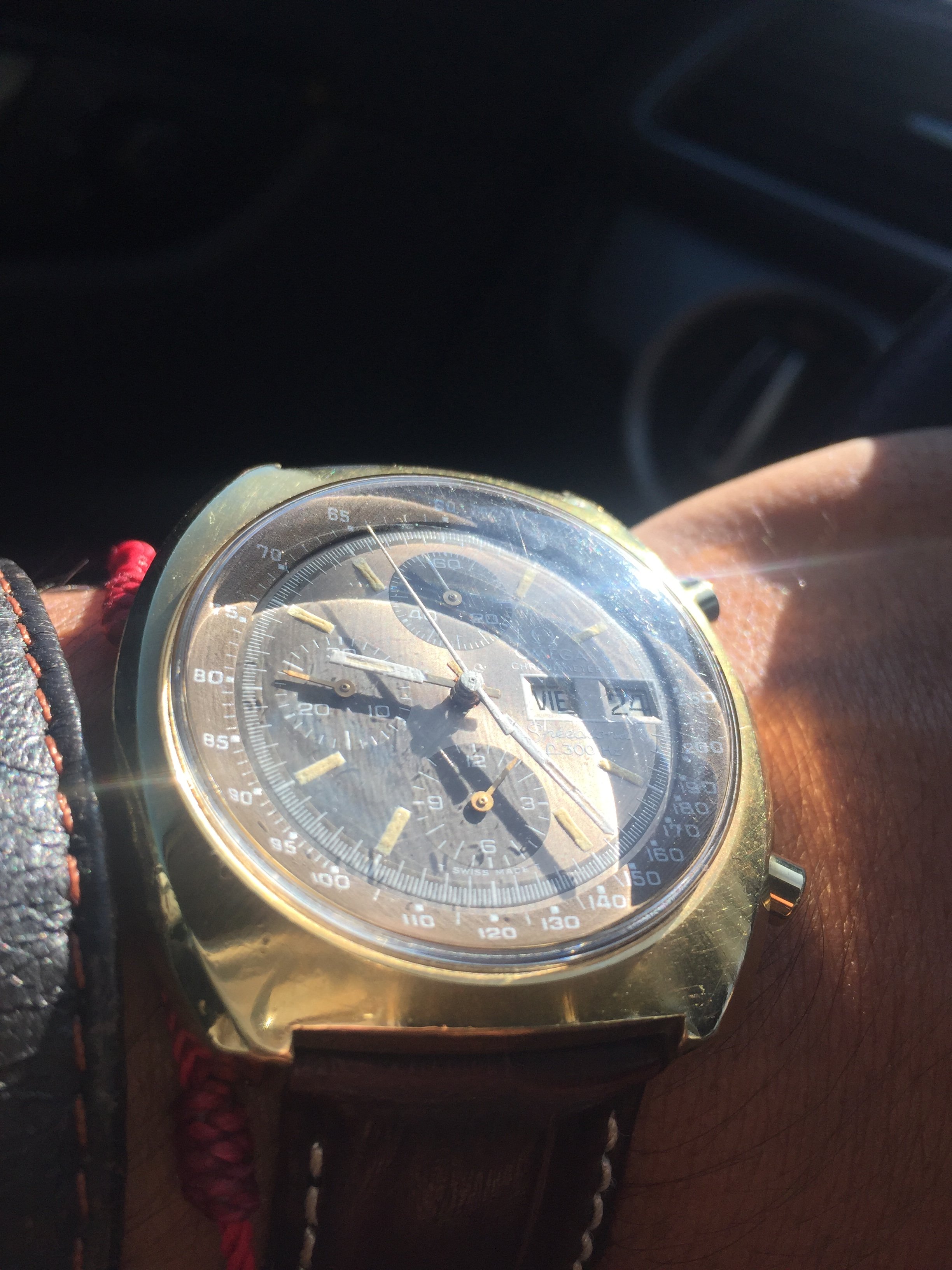 Wearing another project today, a 105.012-66CB with a nice case but service luminova dial and hands. It came to me this way, including the really nice DON bezel, from eBay earlier this year, for $5.5k, which seemed like a screaming good deal (a known vulnerability of mine.😗 )