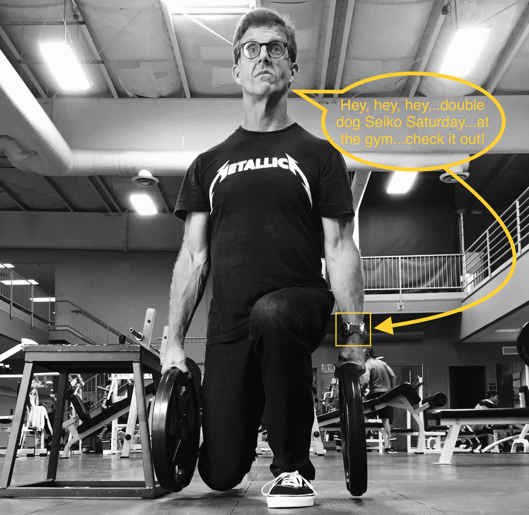 It’s still double dog Seiko Saturday with the beloved 6309-7049 and reissue SRP777K1 at the gym...giving it the old college try with the new “stretchy jeans” [Levi’s 511s]...super dooper technology in my humble opinion. 👍