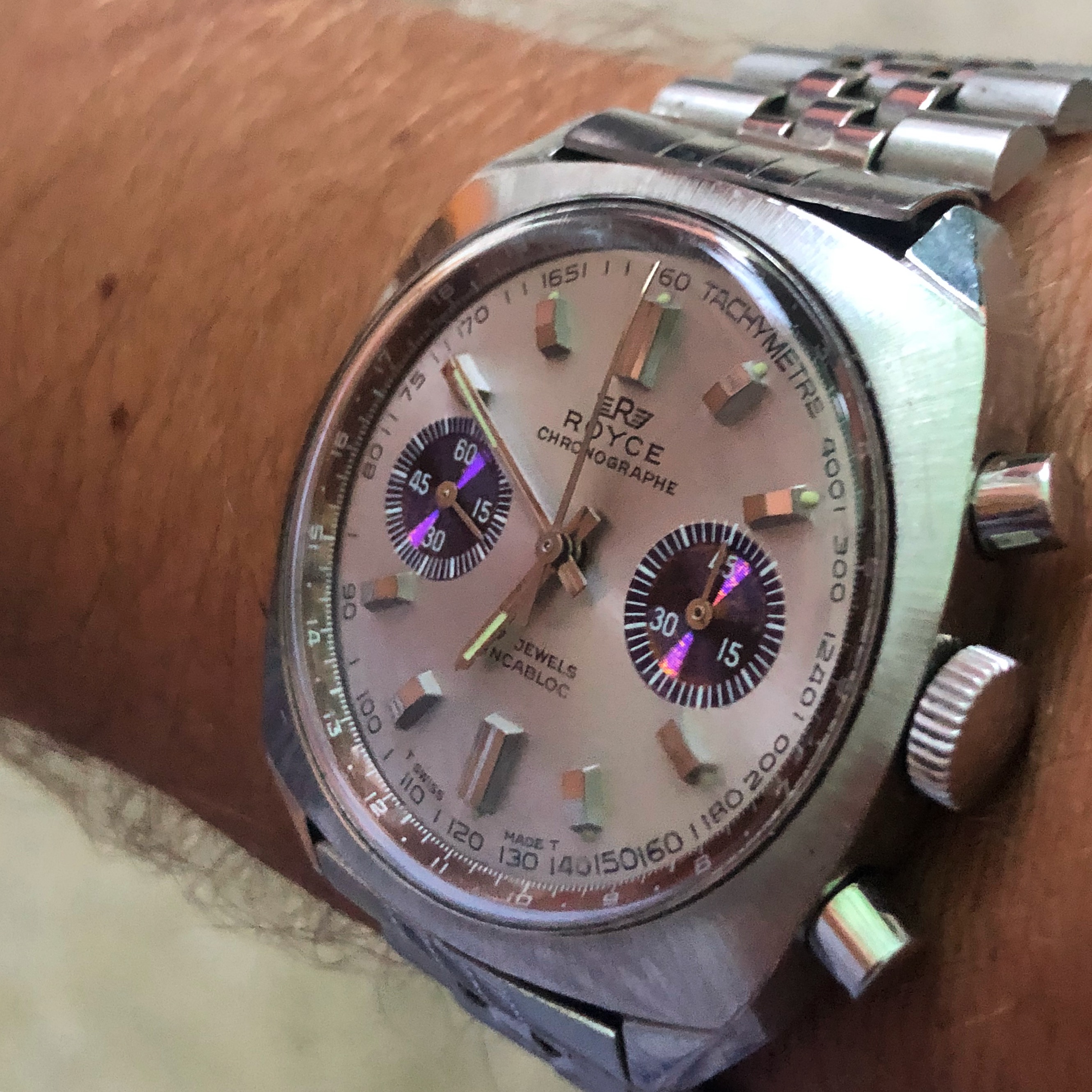 Posts 1,061 Likes 1,940 chipsotoole ·Aug 30, 2018 Had to post this lovely in a second thread today as it hardly ever gets out to play. 30's Zais (Breitling)Venus movement bubble back (italian airforce?)Chronograph. Slate dial and very fragile!