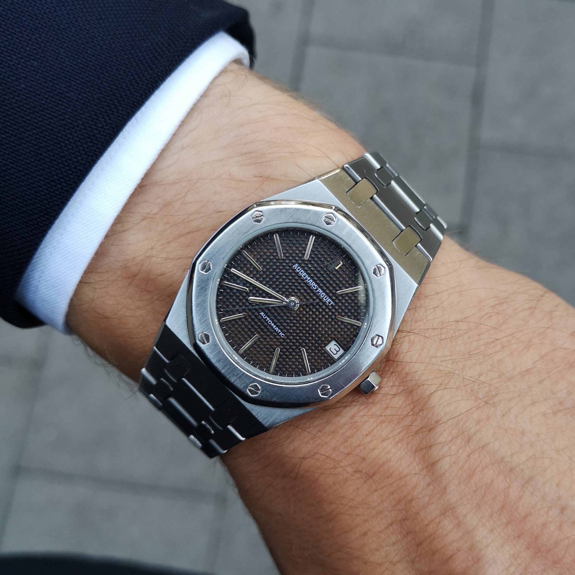 Posts 1,386 Likes 11,386 khanmu ·Sep 3, 2018 After 2 weeks of sunshine, shorts and flip flops and no watch, it’s back at work ina tie and suit and wearing this..