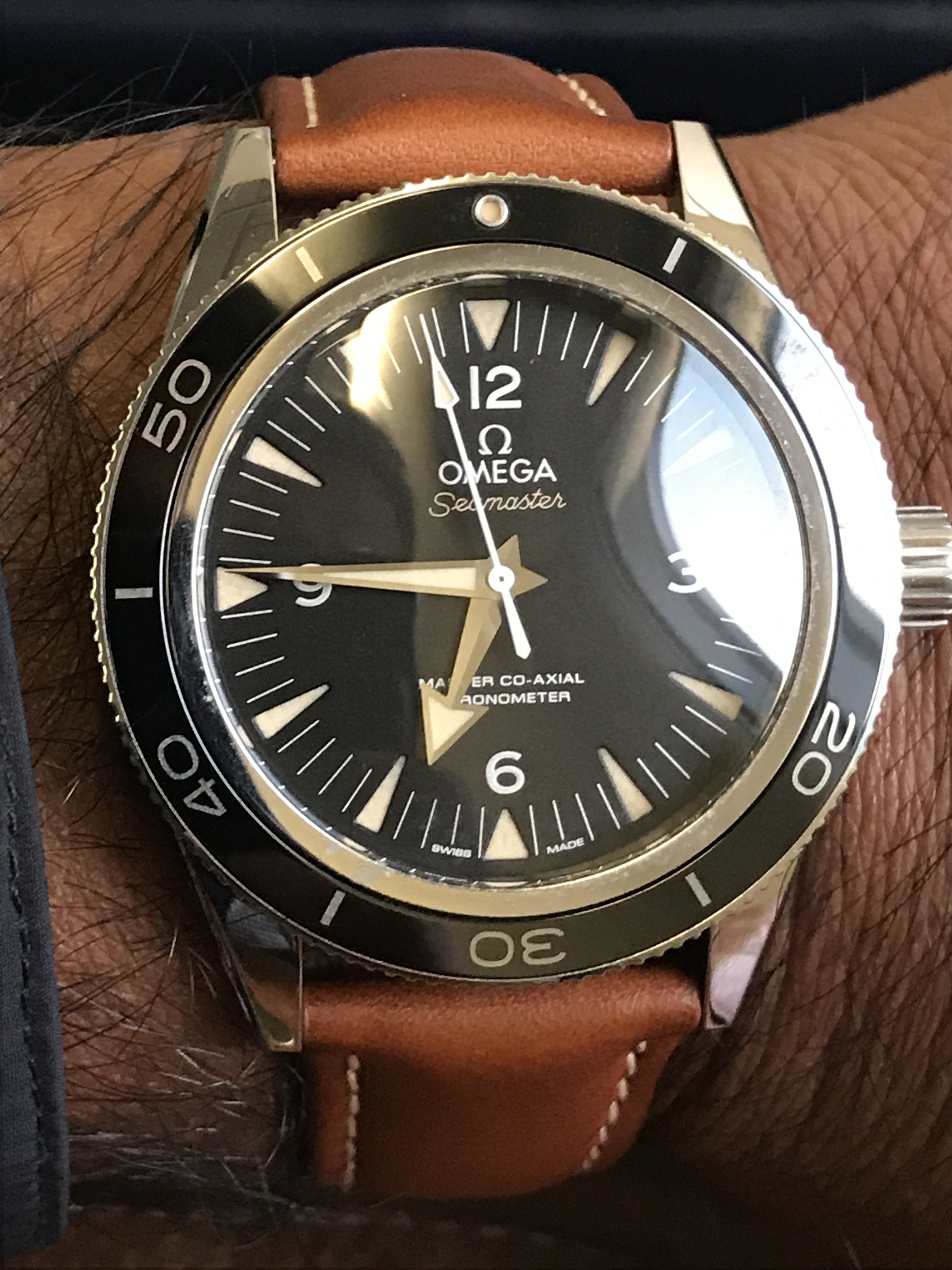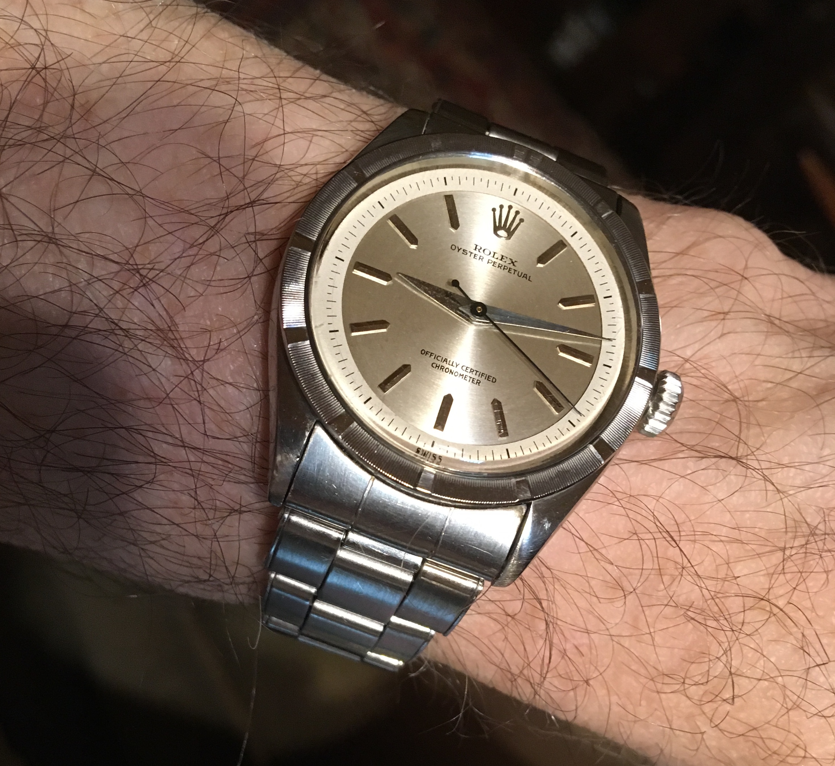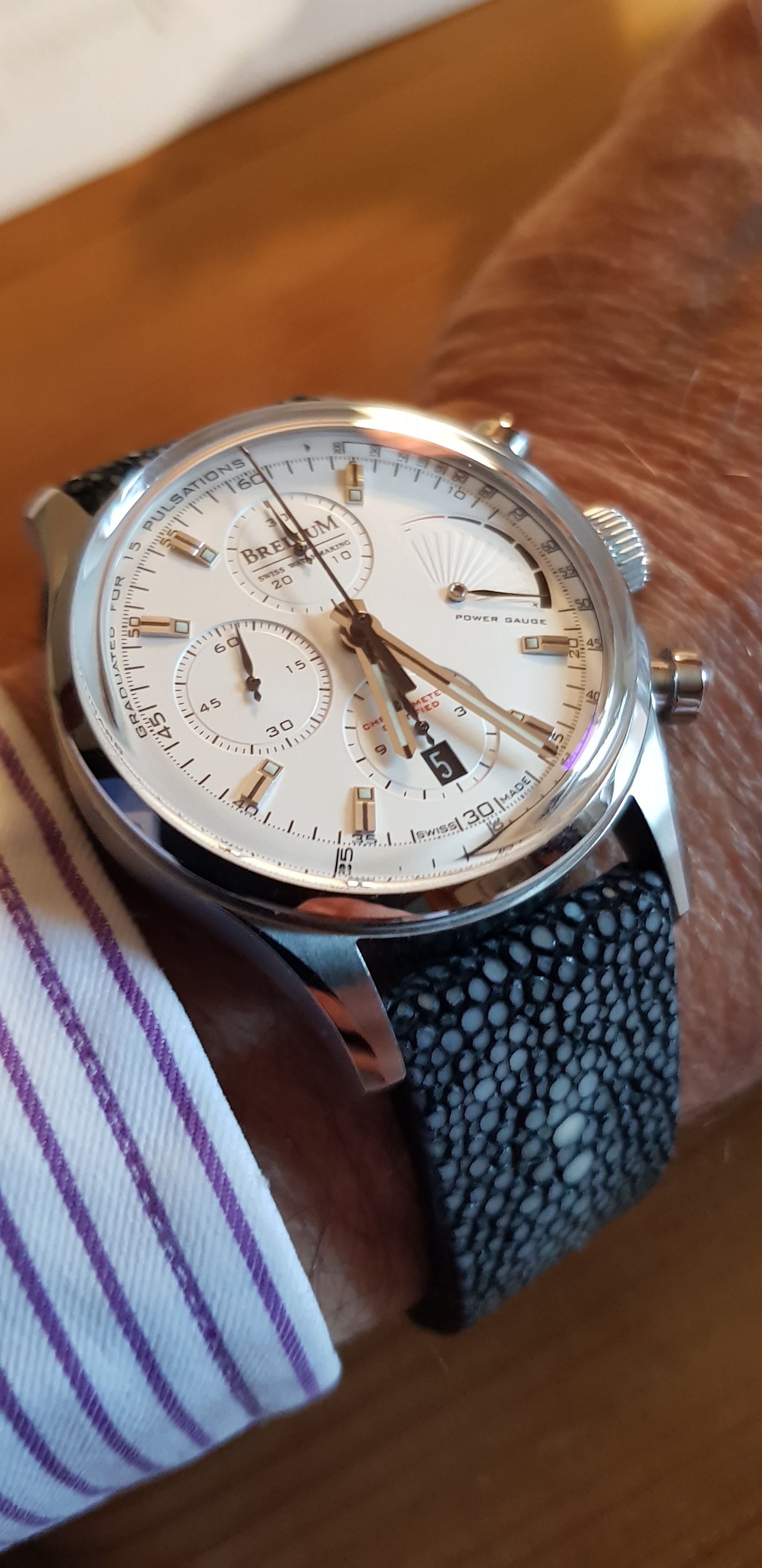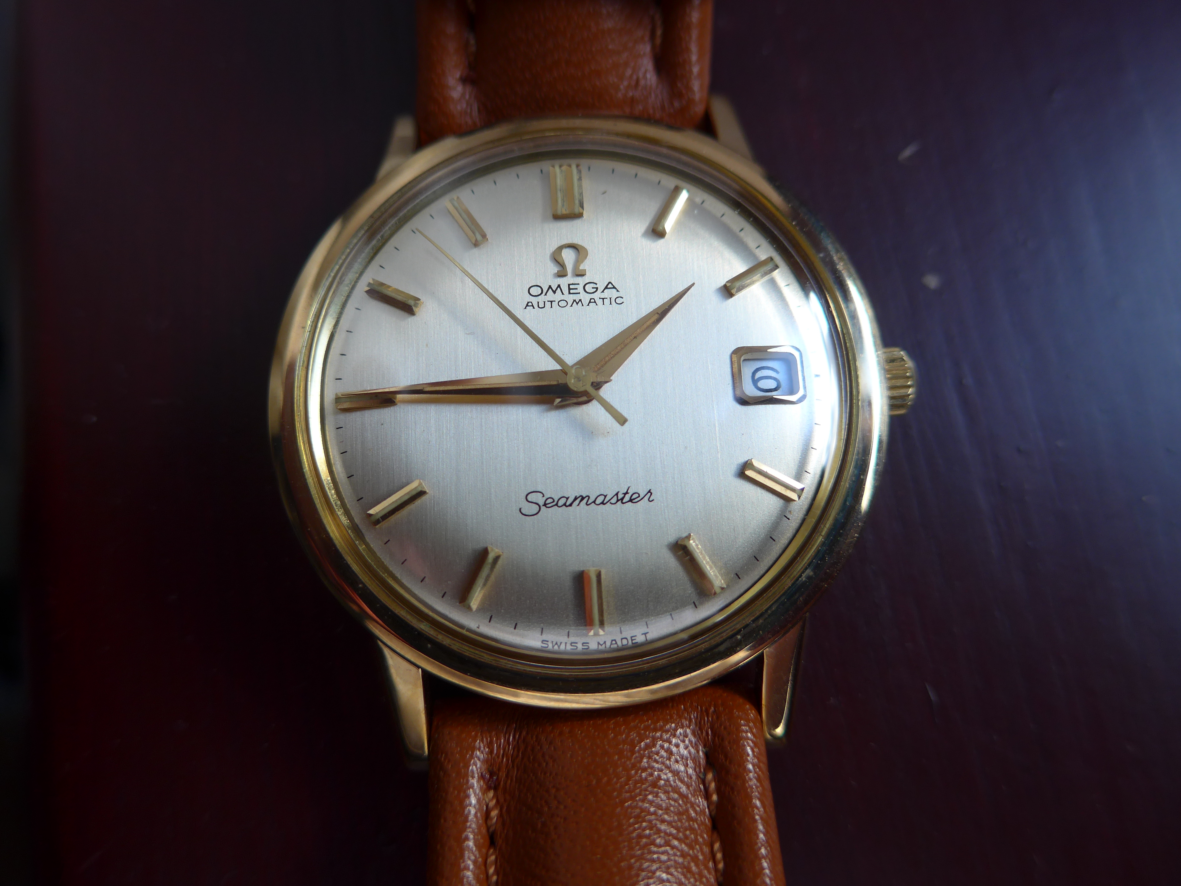 Handsome watch....interesting case design.....the dial color is great and contrasts beautifully with the markers. I have one of these I am working on, but my dial is an off-white....now you have me looking for another one with your color dial.