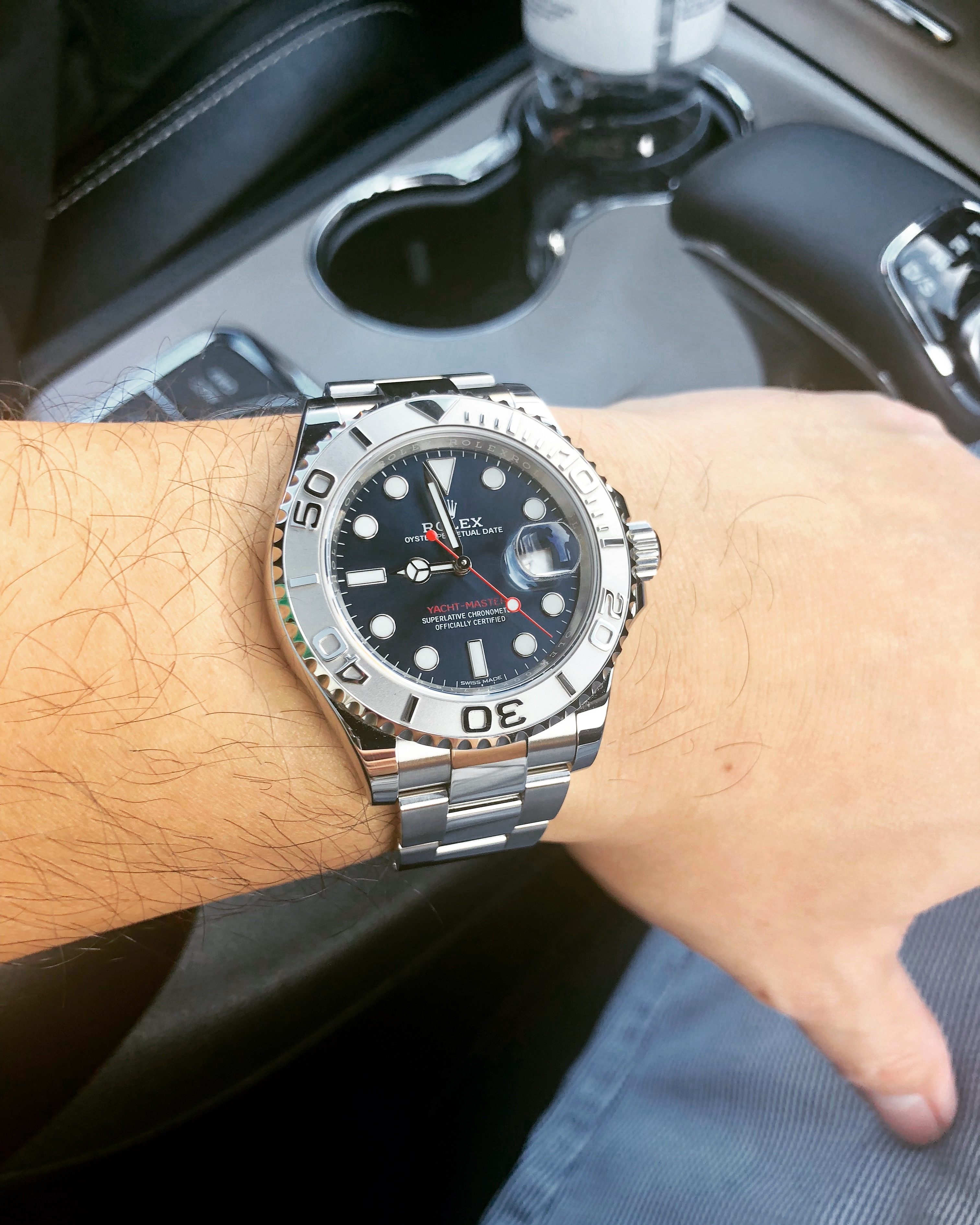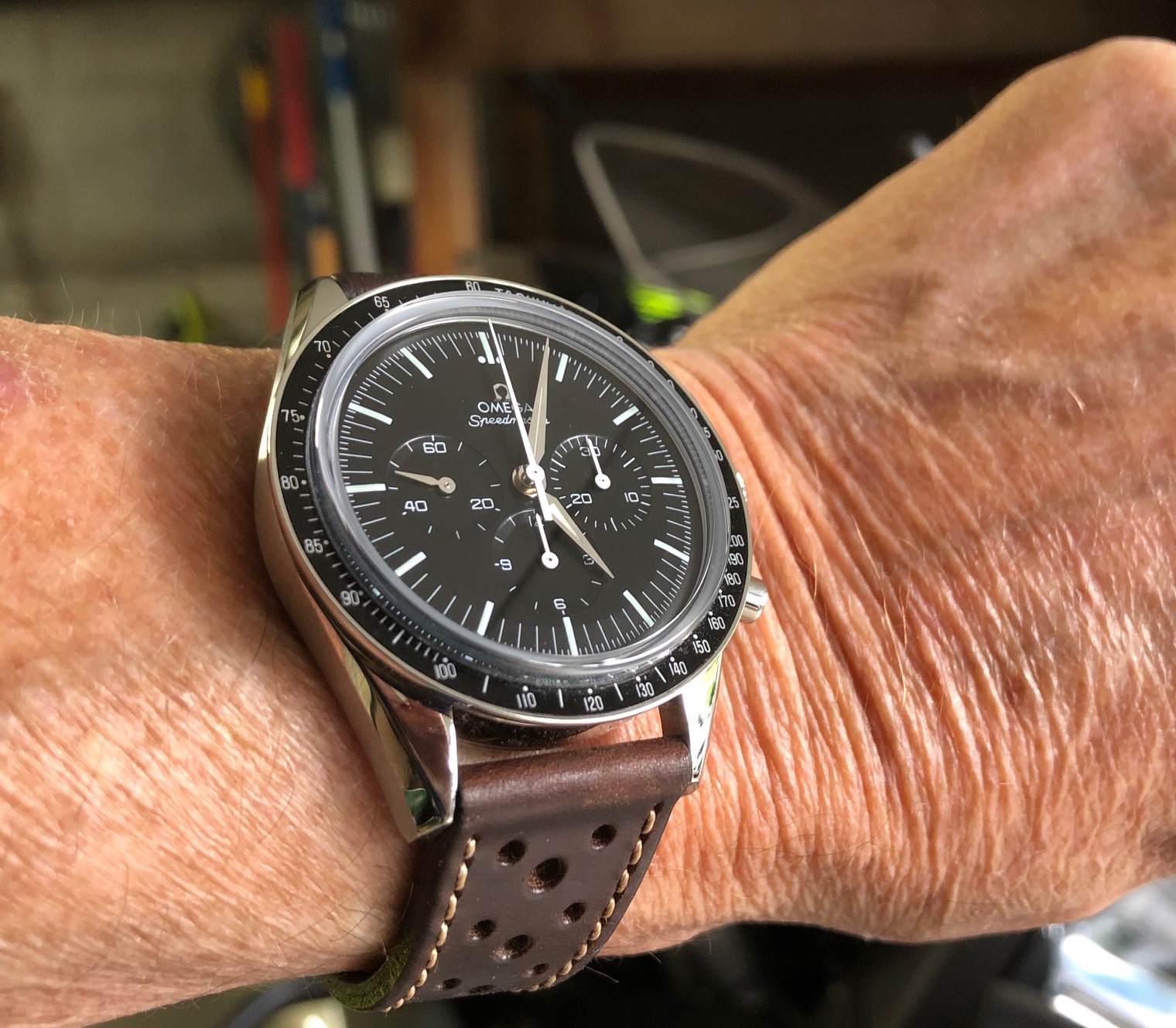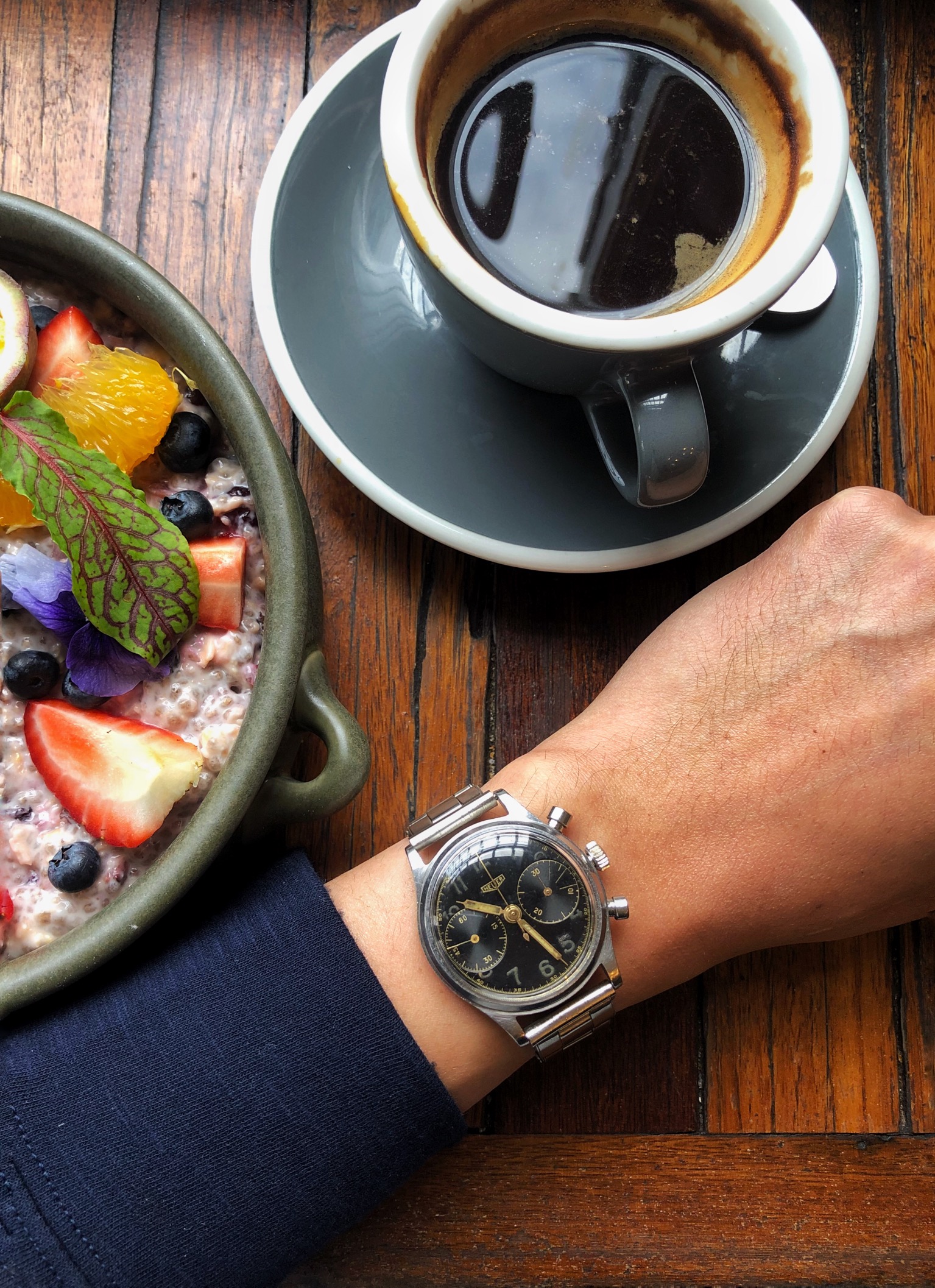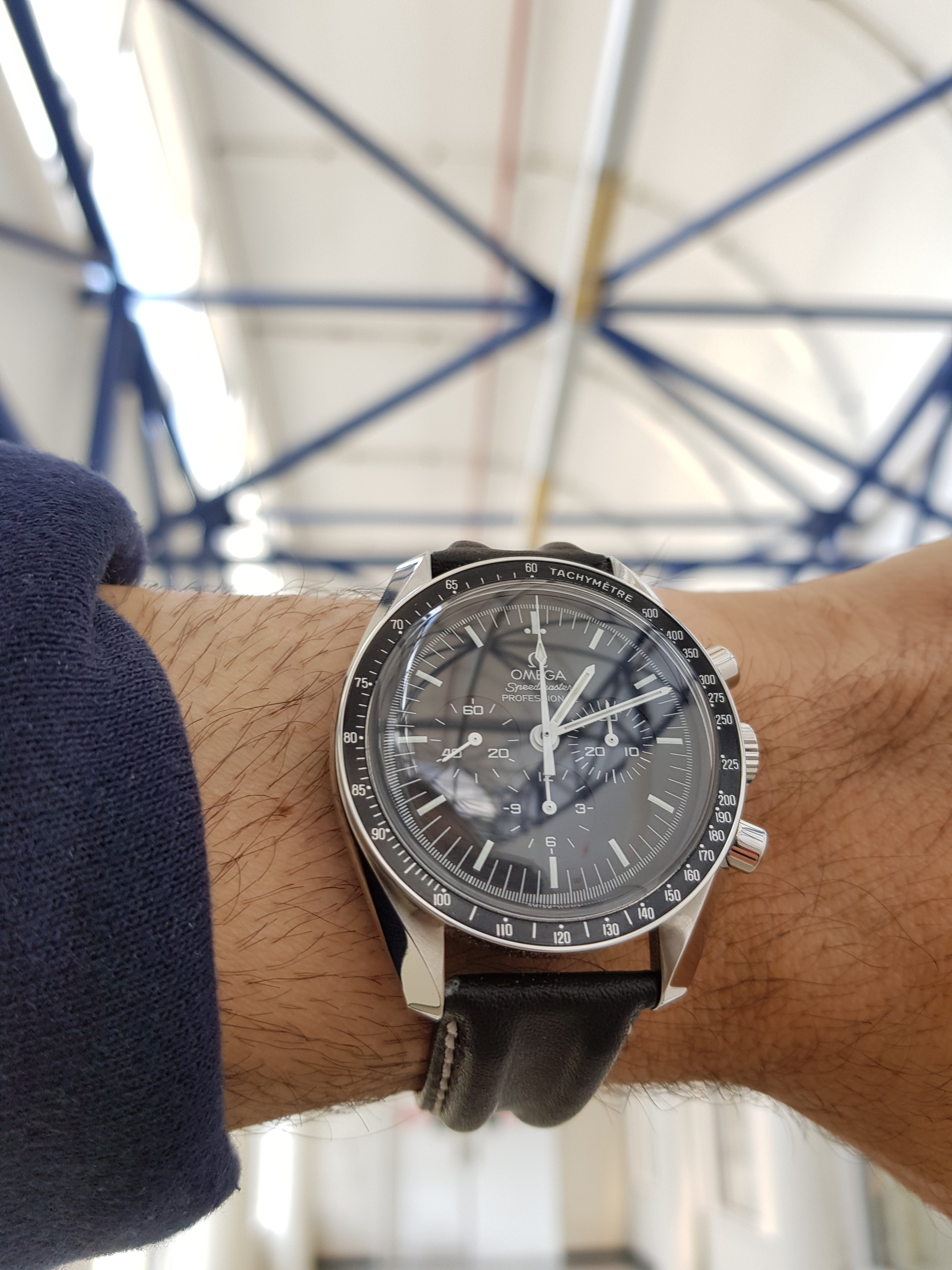 Handsome watch....interesting case design.....the dial color is great and contrasts beautifully with the markers. I have one of these I am working on, but my dial is an off-white....now you have me looking for another one with your color dial.