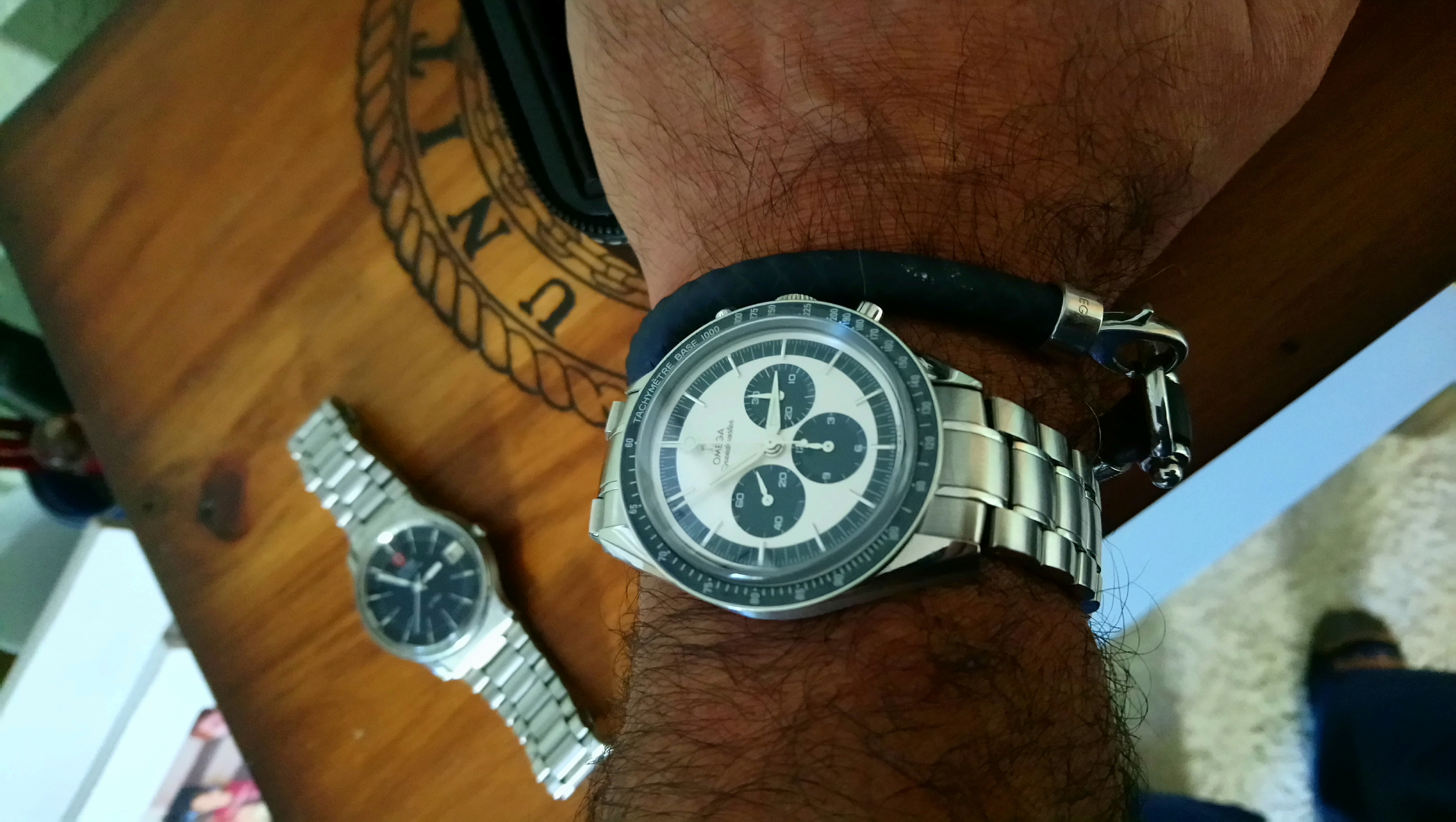 Speedmaster 105.012-66CB with period correct 1967 California Angels game calendar. Angels happen to be my local professional baseball team. Very lucky to find this calendar.