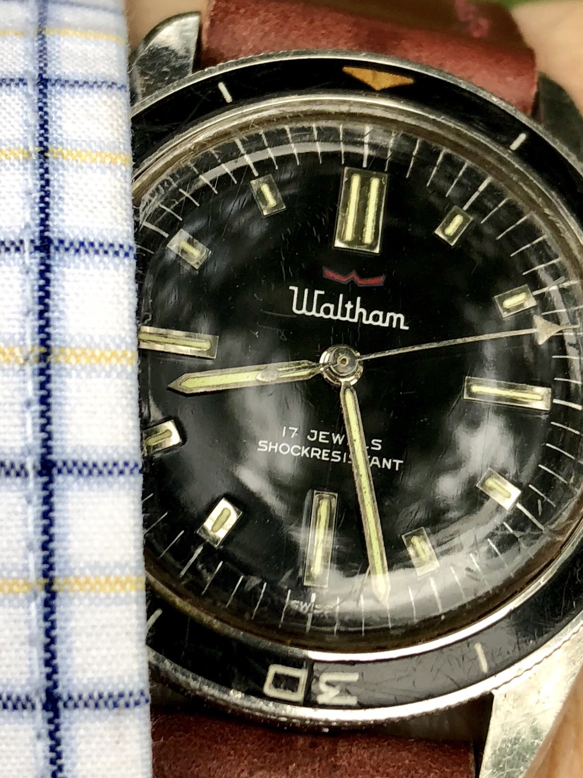 Posts 2,617 Likes 5,603 citizenrich ·Sep 21, 2018 TexOmega Waltham Bathescape Circa 1962 Cal AS1686 Custom Shell strap in brownish/burgundy I'm crazy for that bezel