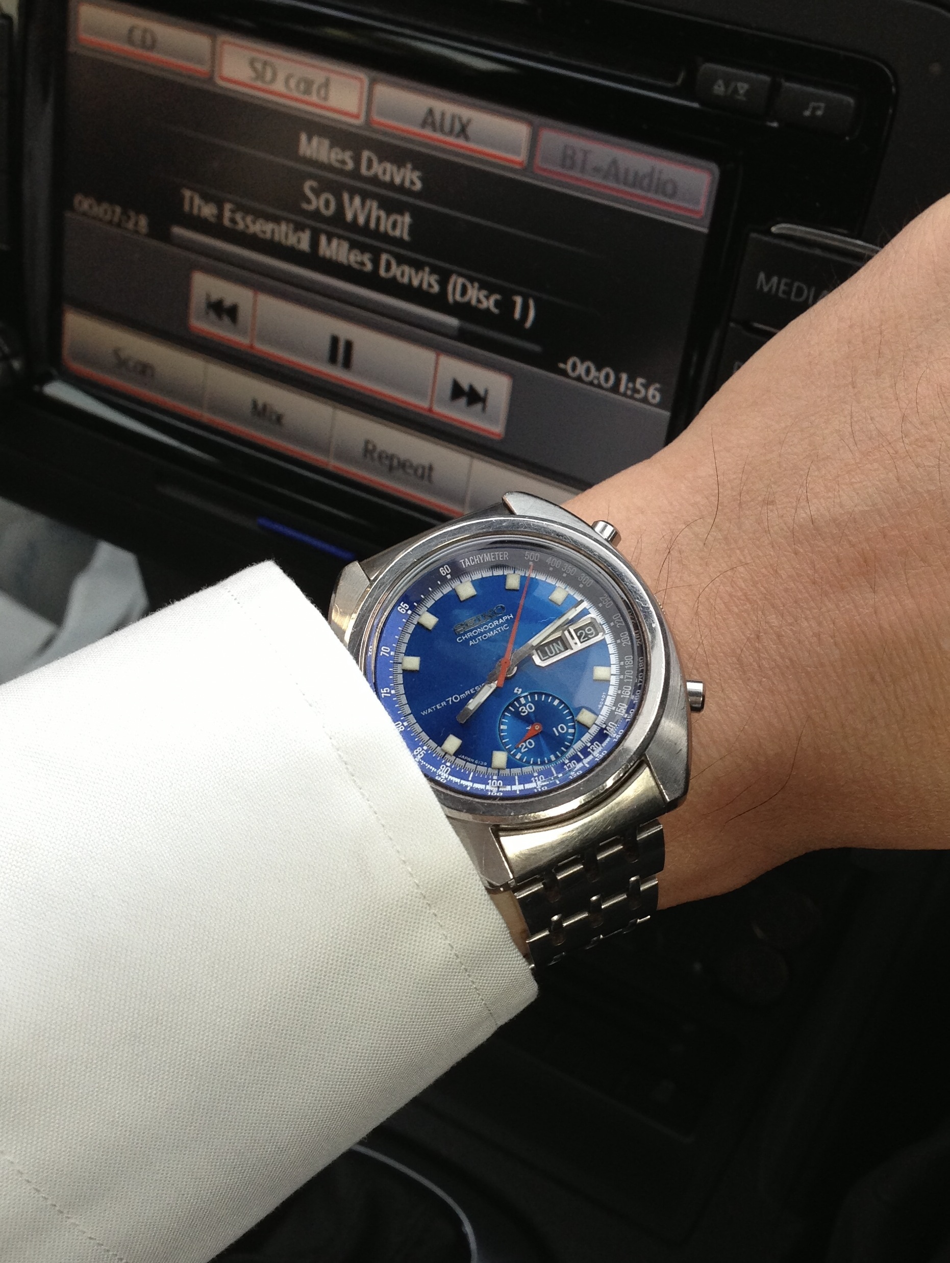 Thought I'd already posted this new arrival, but can't find it earlier.... Basically I bought from an auction on poor photos - but the plan was to flip, while keeping the bracelet. When it turned up, it was the same dial/case ref as my other c-shape, but in better condition. Just back from the spa. I didn't immediately warm to the bracelet with jeans and t-shirt, but with a suit it looks magnificent!