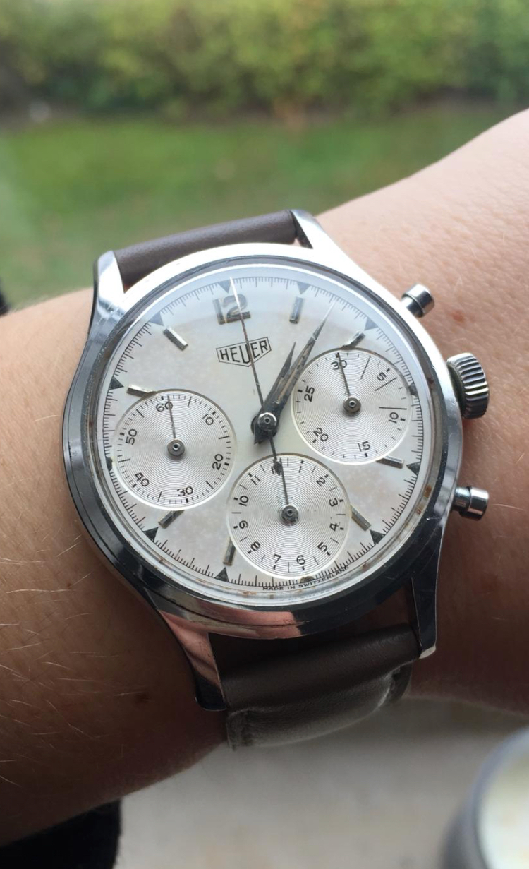 Posts 1,441 Likes 11,971 chronoboy64 ·Nov 4, 2018 Today beautiful Heuer 2444 on my daughters wrist (gifted to her for bachelor degree)
