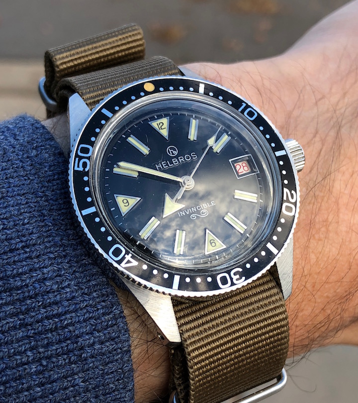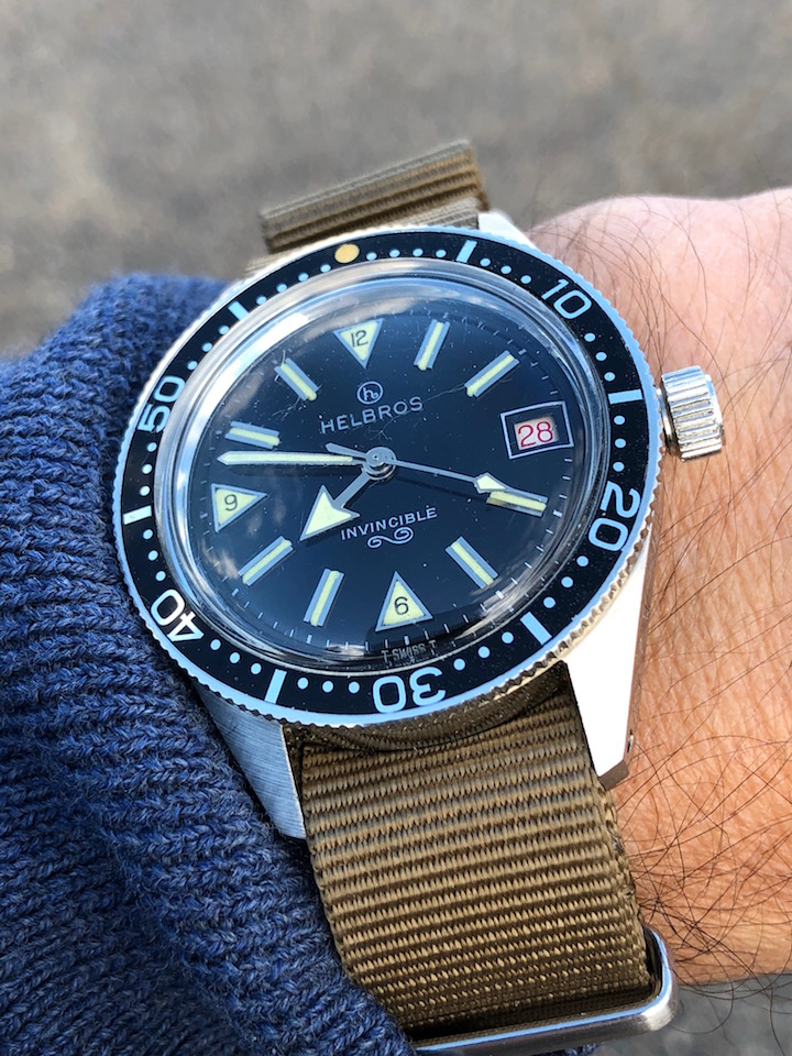 Posts 23,472 Likes 52,176 Dan S ·Nov 5, 2018 Helbros Invincible from the 1960s (or perhaps early 1970s), a stylish "budget" diver with some really nice features.