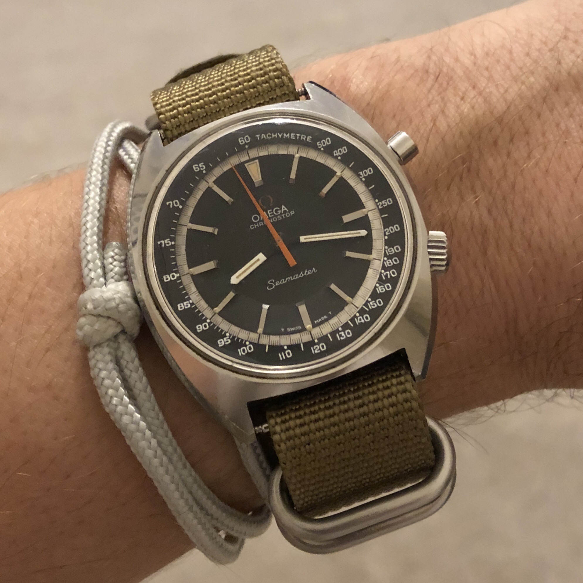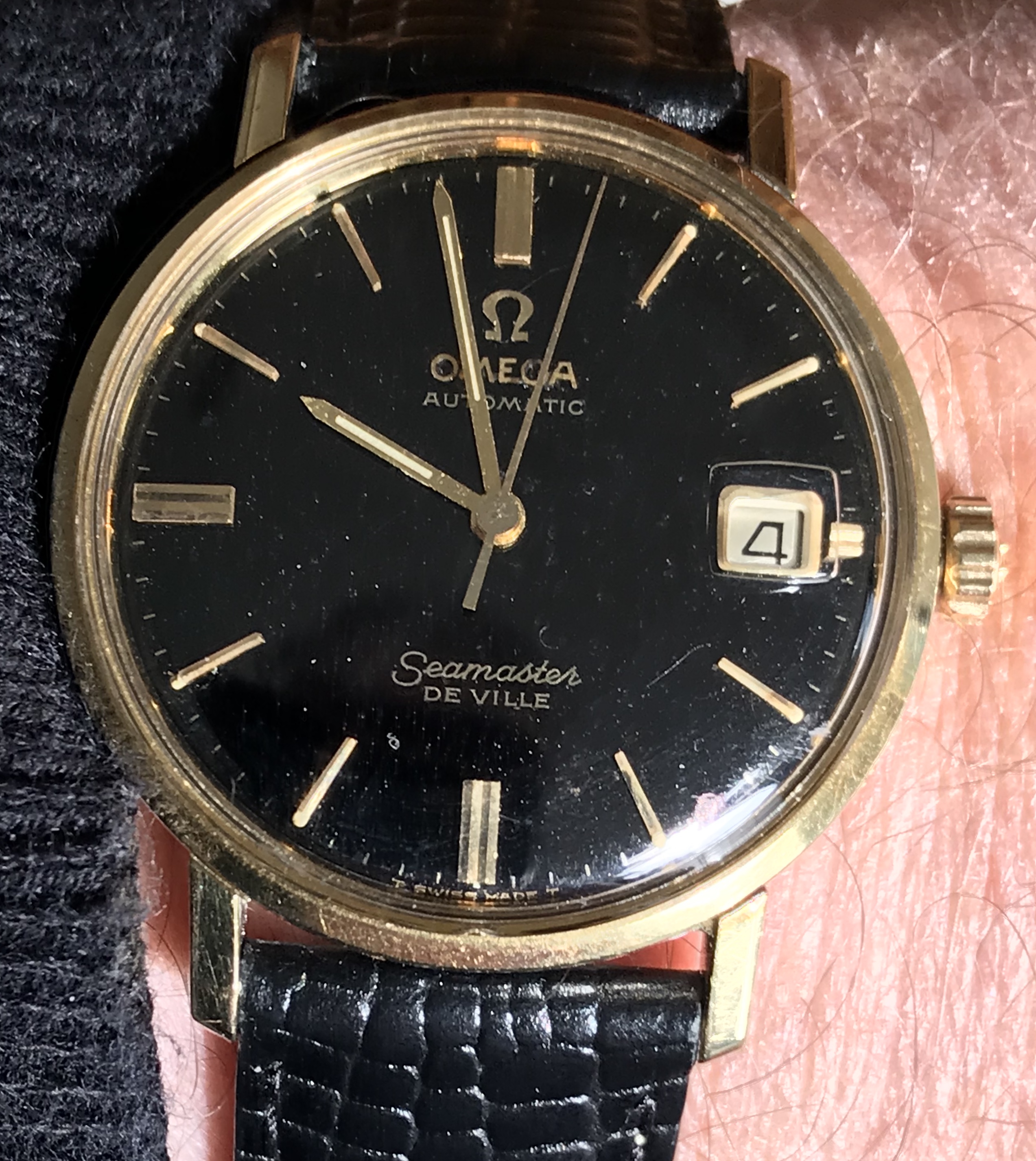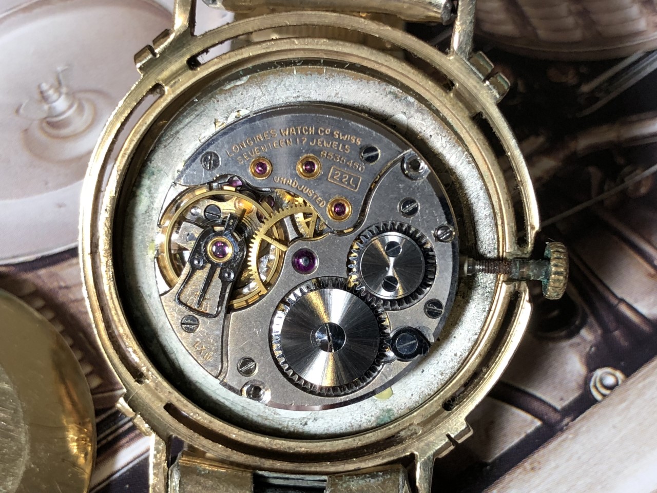 1952 Longines: 22L movement, 14K gold case measuring 32.5mm diameter, 39.3mm lug-to-lug, 9mm thick case back to top of crown, 17.5mm lug width. A few days on the wrist and off to the WM for a good cleaning, service and new strap.
