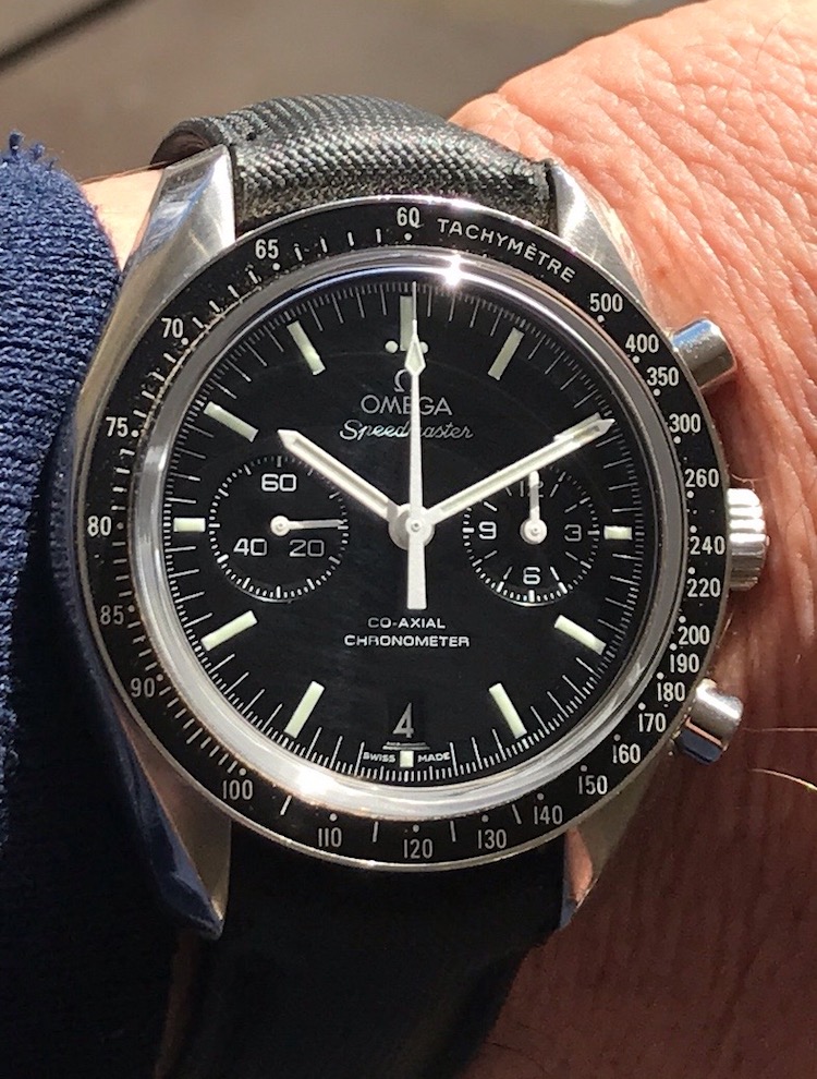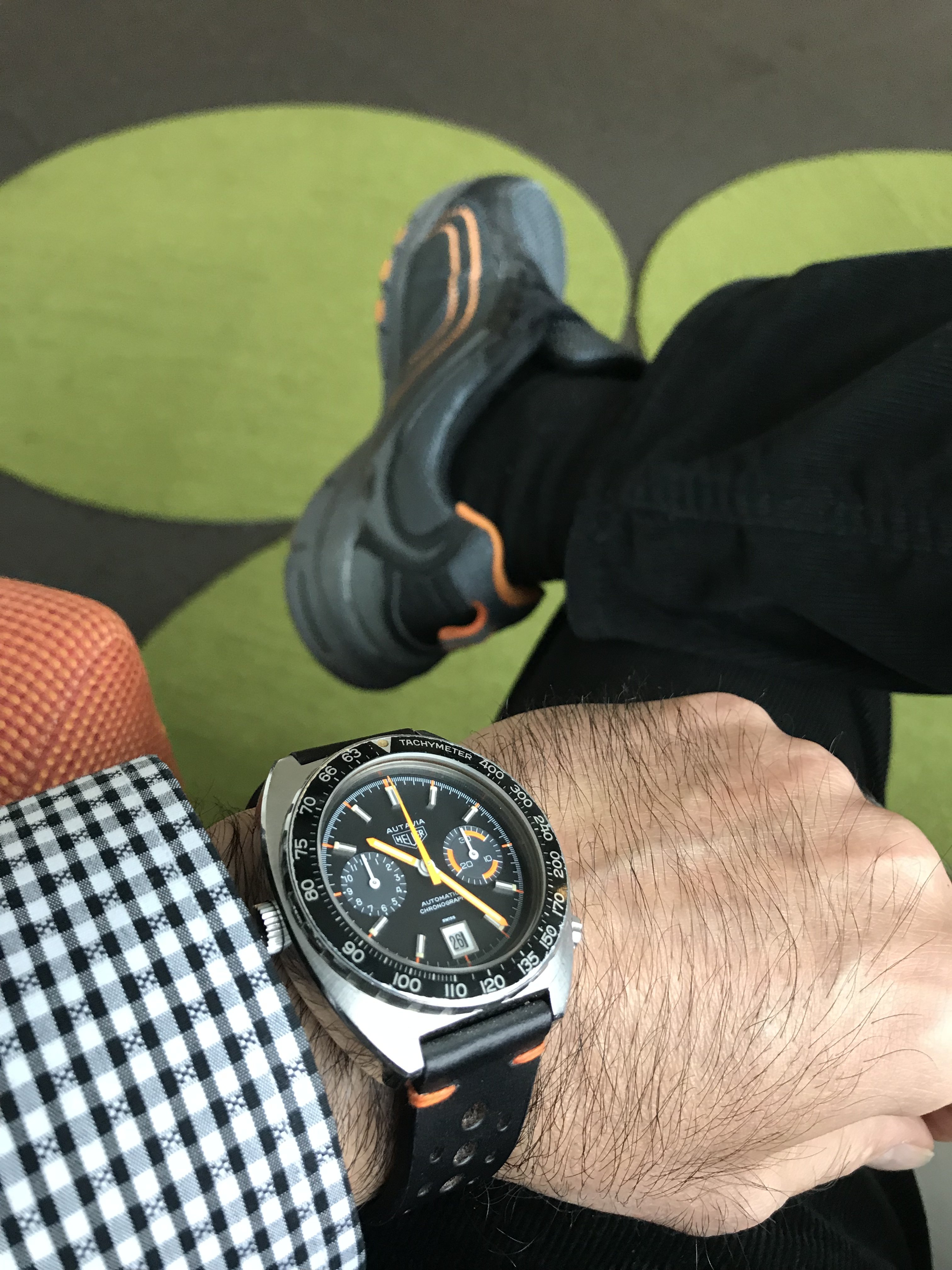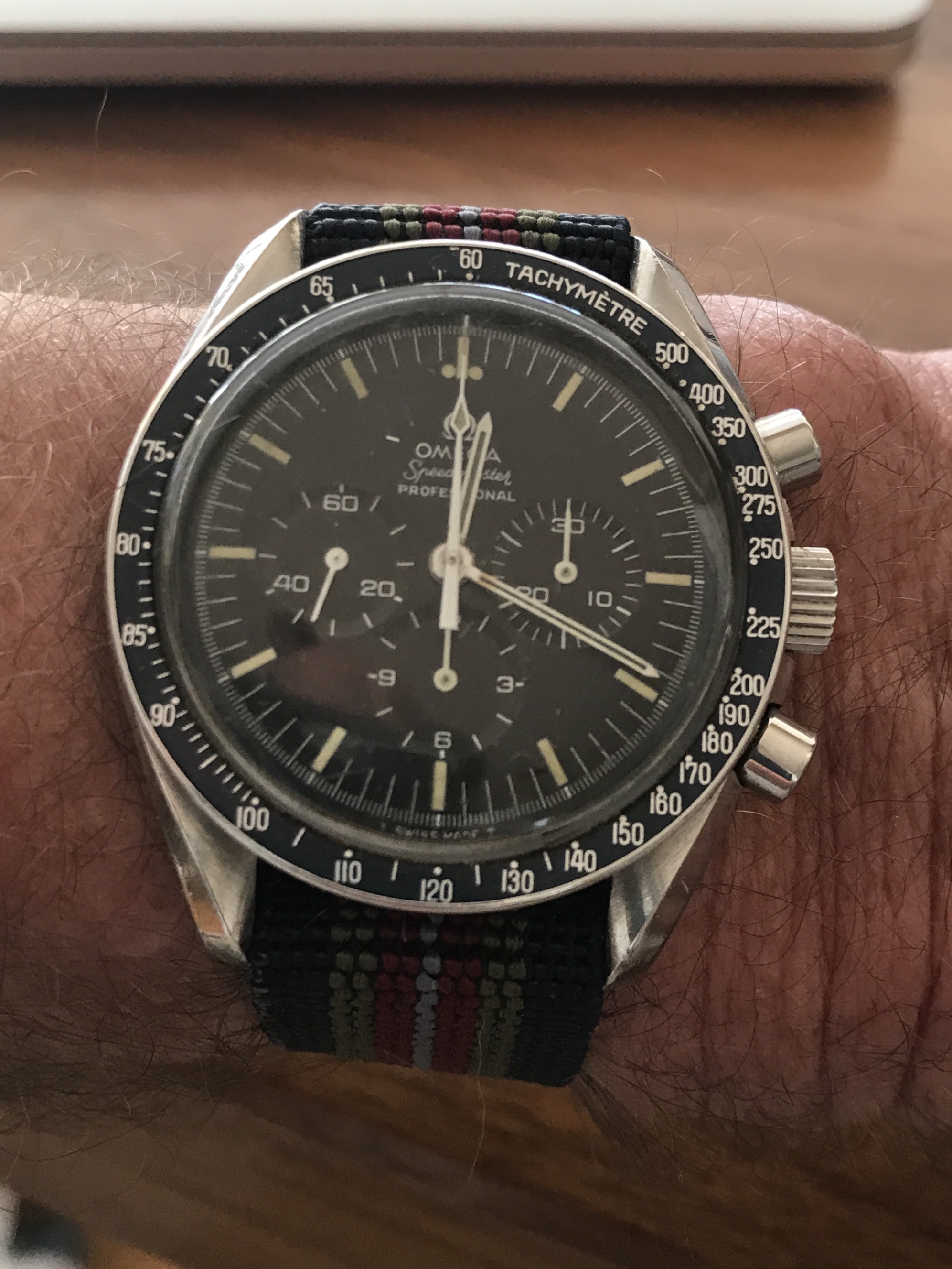 1952 Longines: 22L movement, 14K gold case measuring 32.5mm diameter, 39.3mm lug-to-lug, 9mm thick case back to top of crown, 17.5mm lug width. A few days on the wrist and off to the WM for a good cleaning, service and new strap.
