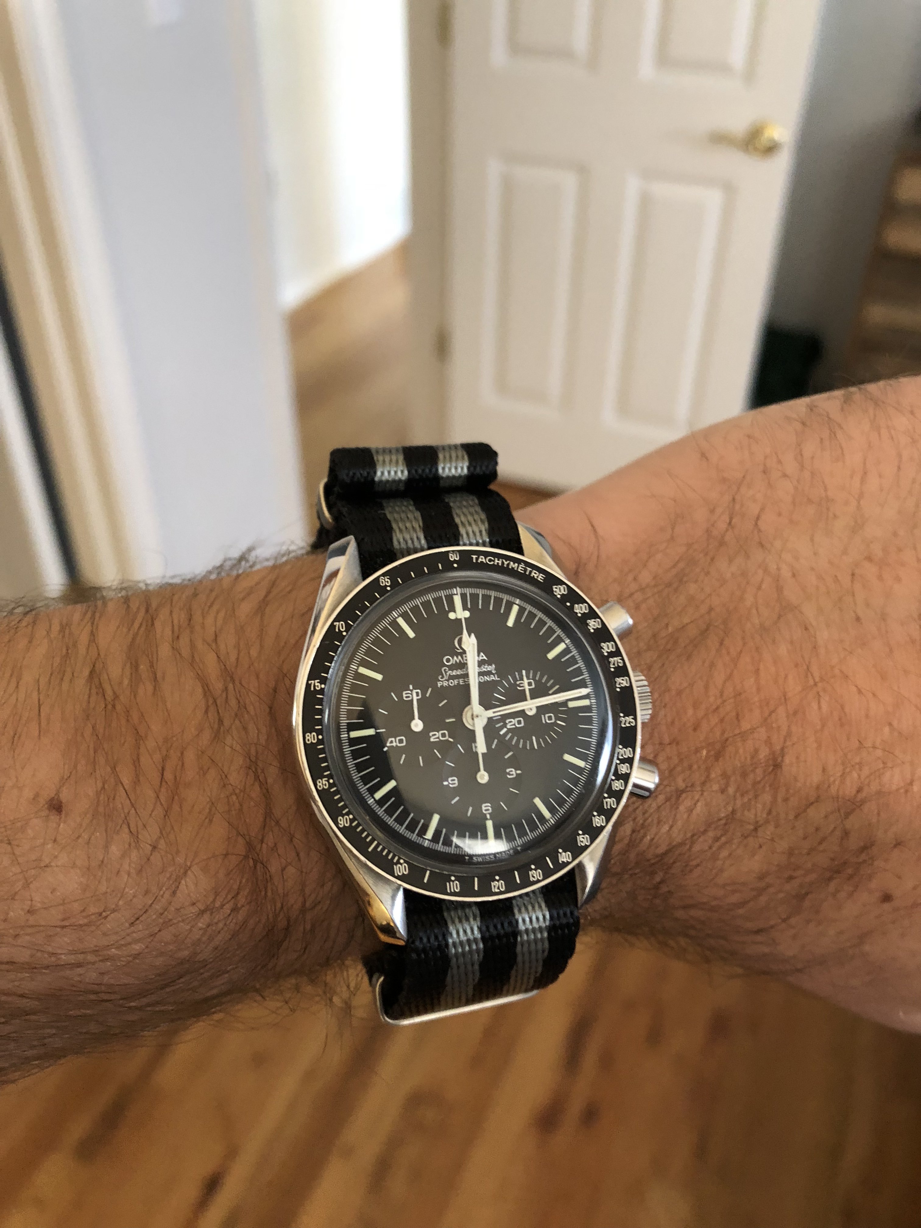 Posts 618 Likes 11,030 cgaites ·Dec 9, 2018 Early Christmas present from my wife, a Bond style NATO. Looks good on the Speedy I think.