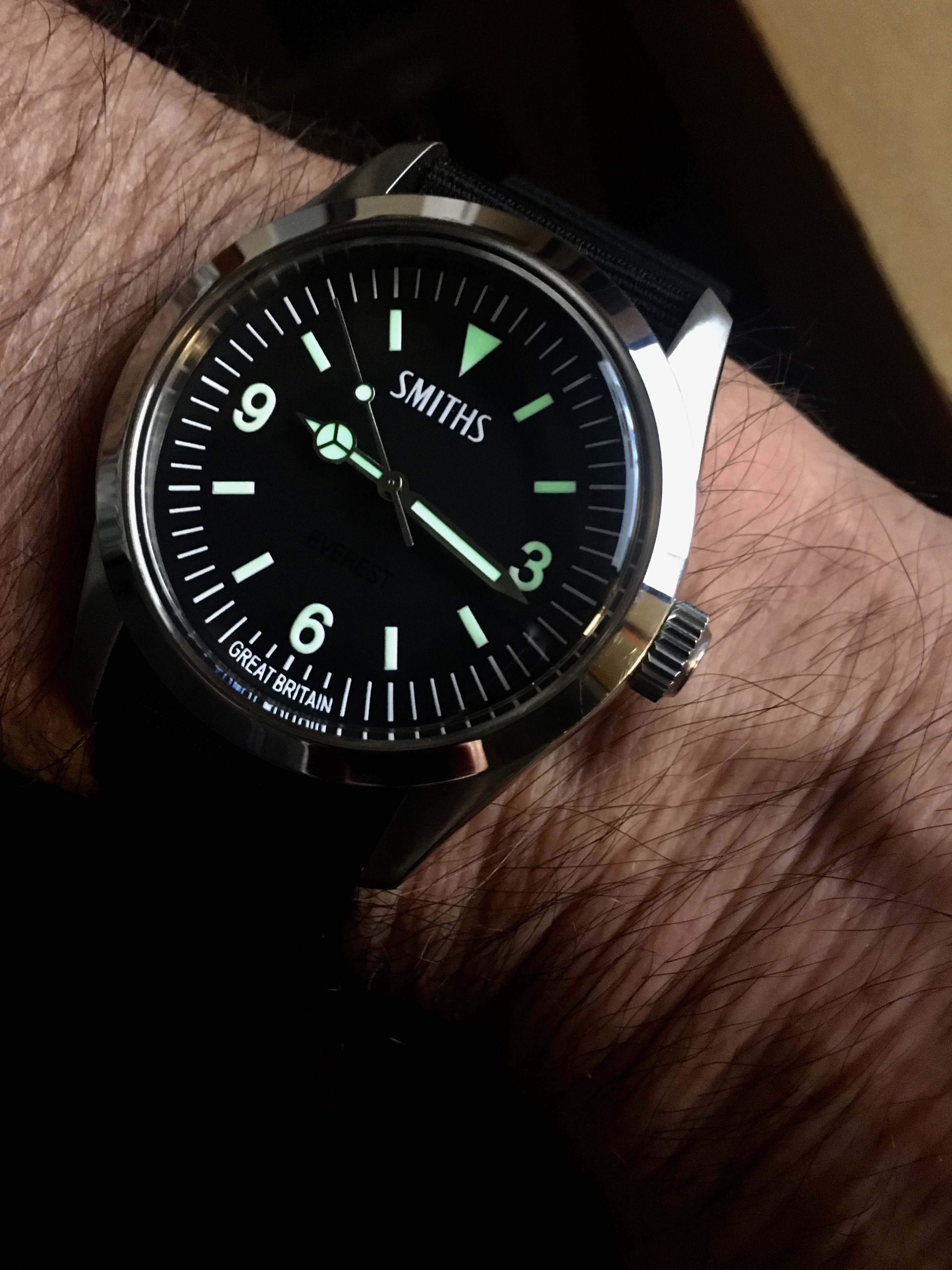 5 pm and 10 seconds...I have a similar issue with my Explorer 114270, I struggle to align the minute hand precisely for when the second hand hits 12 o'clock, I seem to only be able to get the minute hand to align 5 seconds before or 10 seconds after as is the case here.