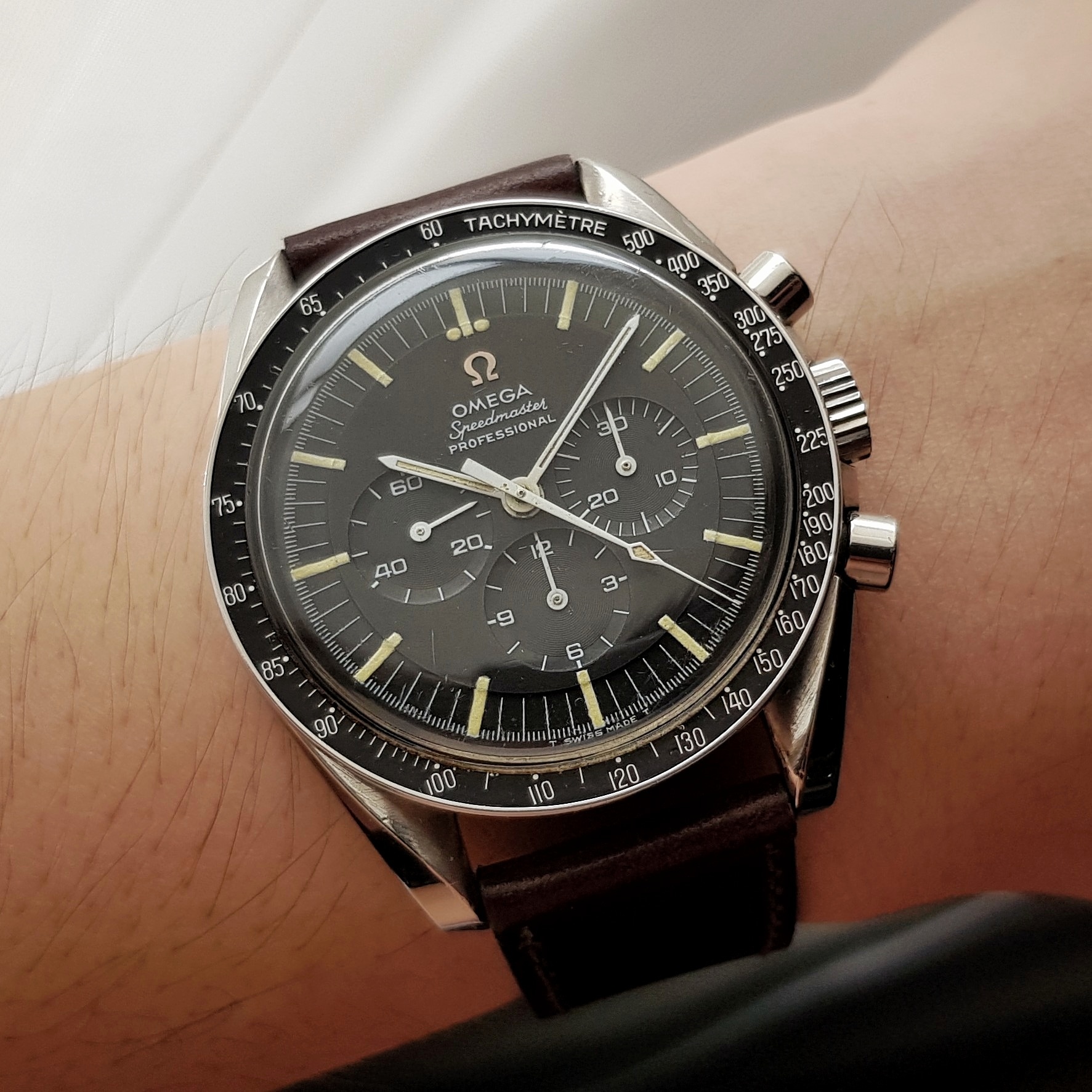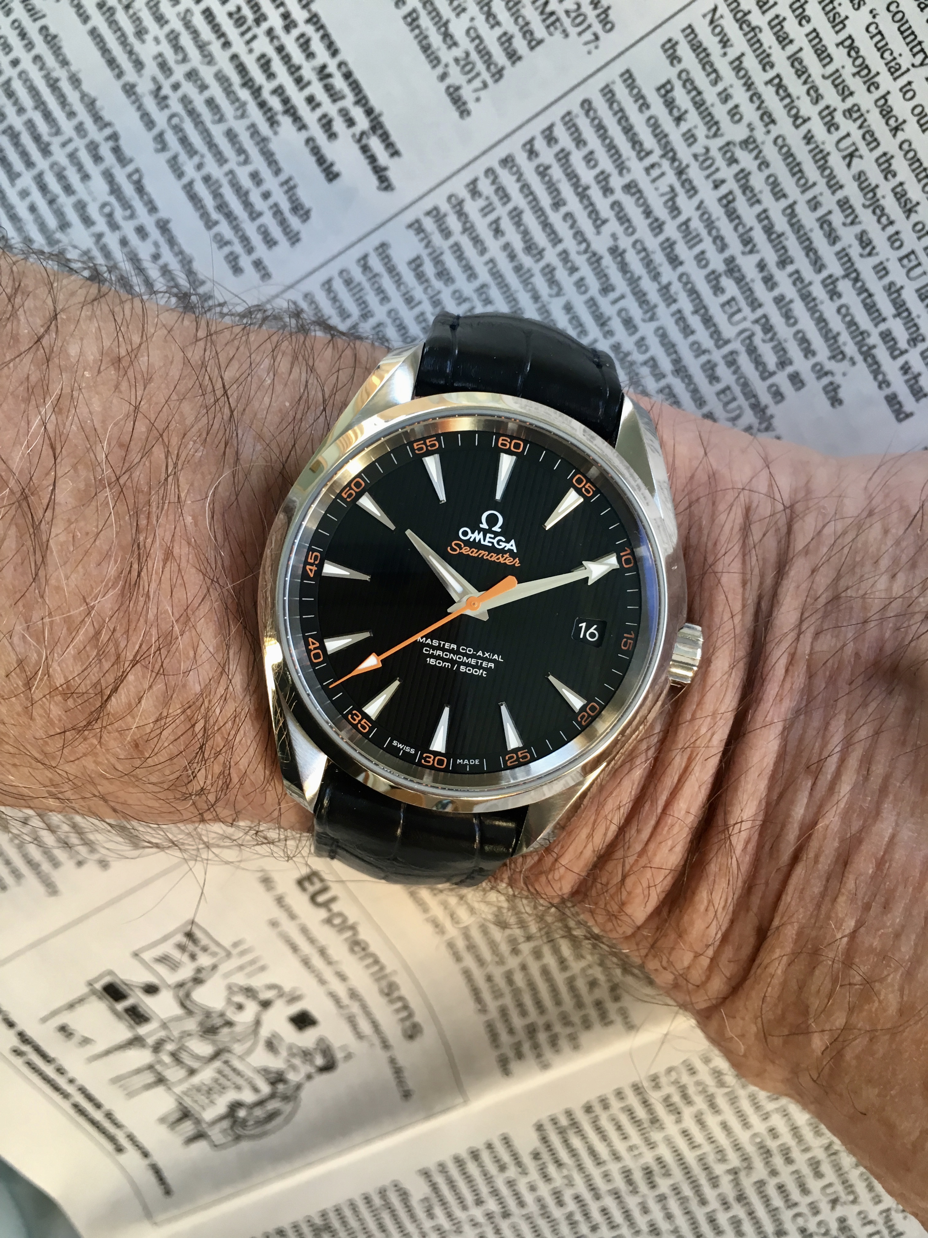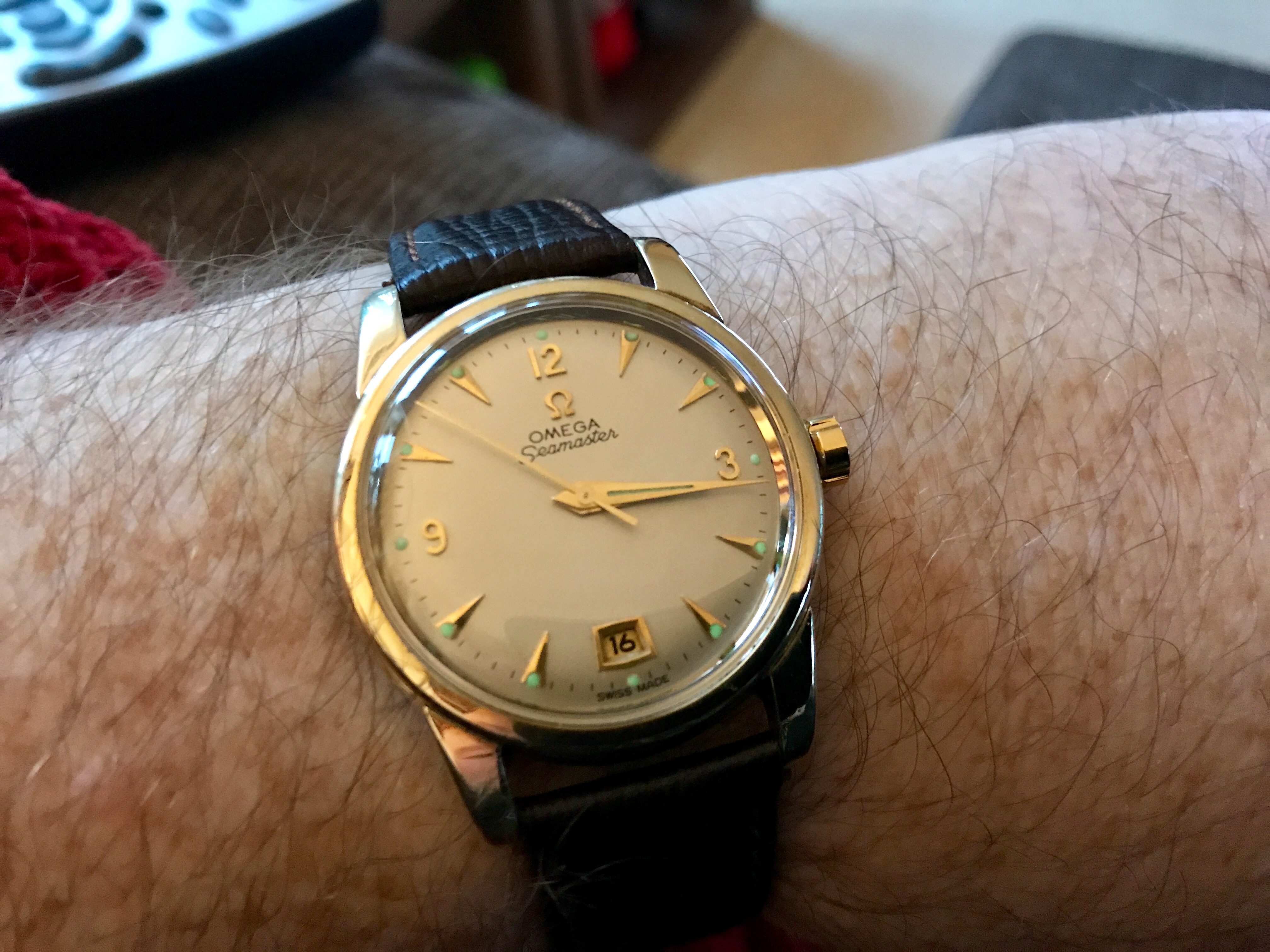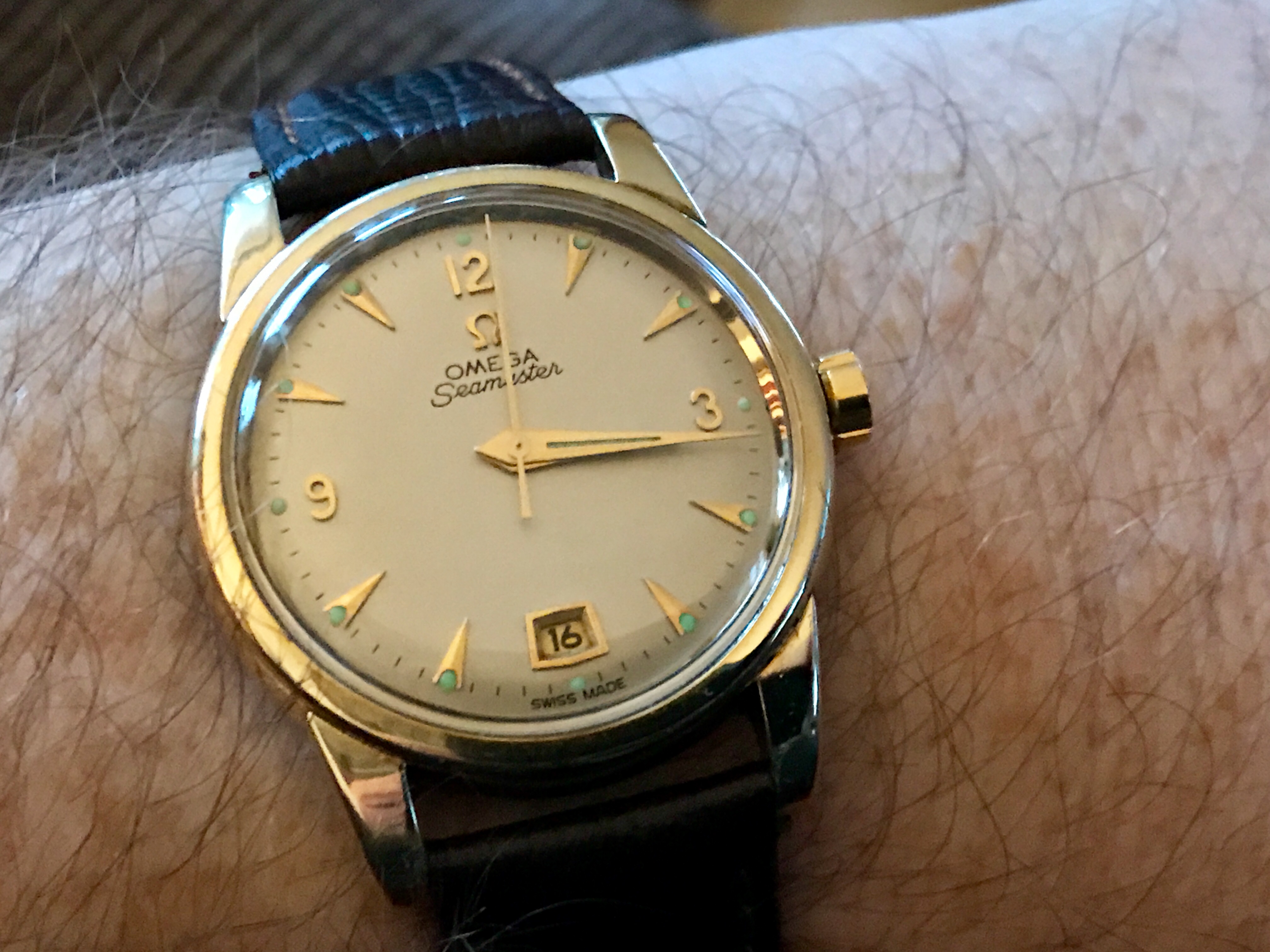 I’m wearing my late Dad’s (he died in 1986) Omega Seamaster “bumper”.