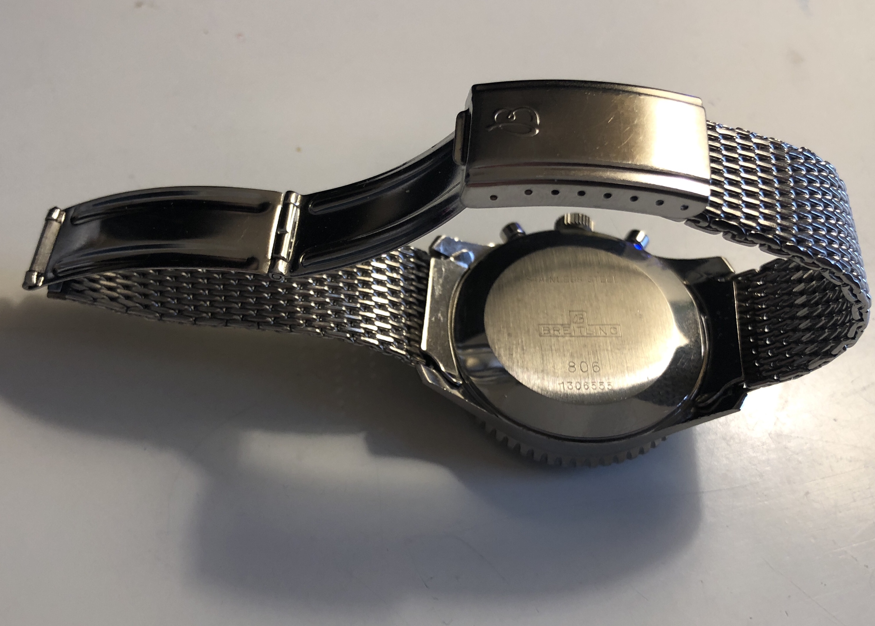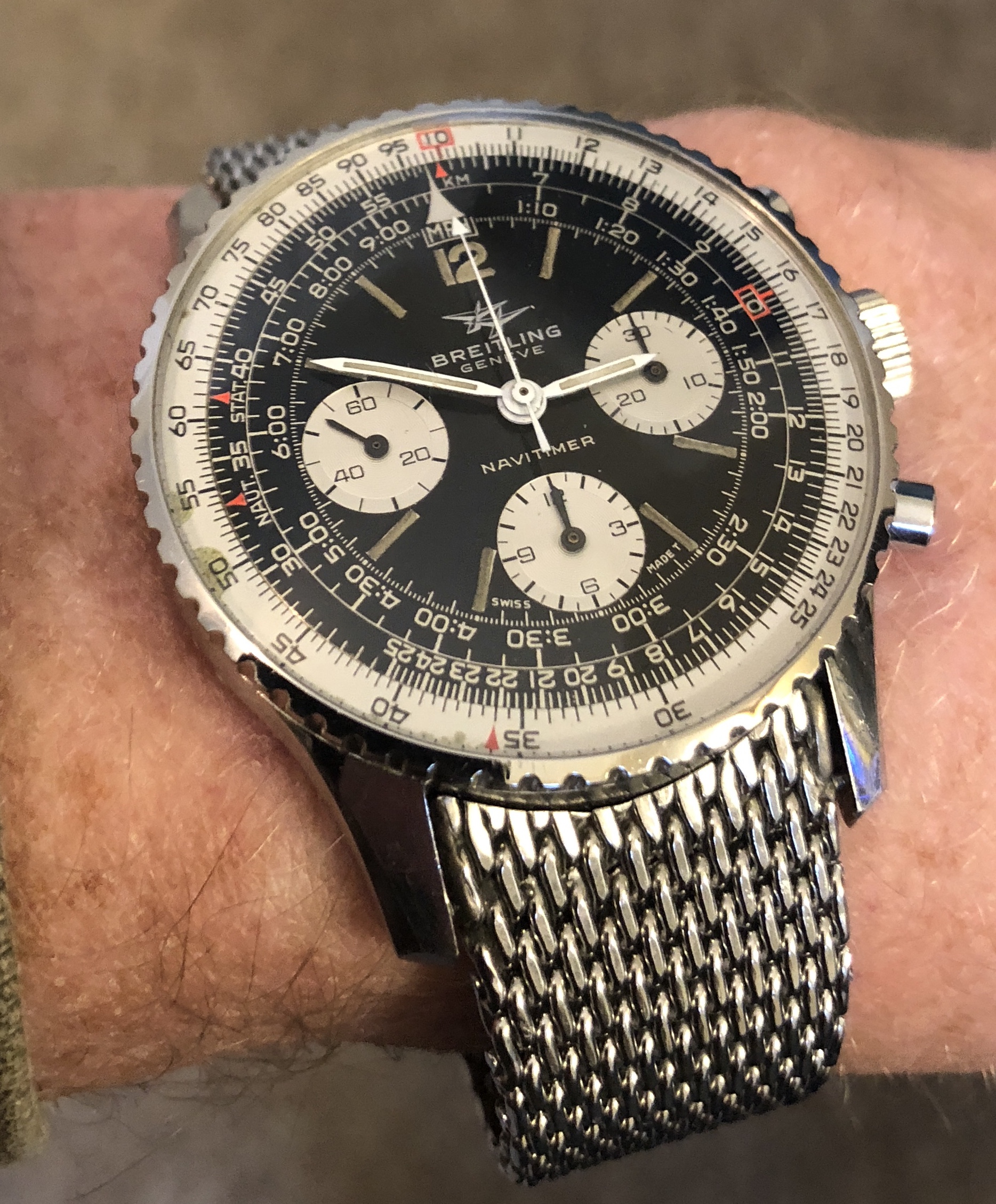Posts 766 Likes 7,489 Flatfoot ·Dec 17, 2018 ‘69 Navitimer today, on a period Breitling mesh bracelet... and a shameless “riff” of of @KingCrouchy ‘s prior picture.