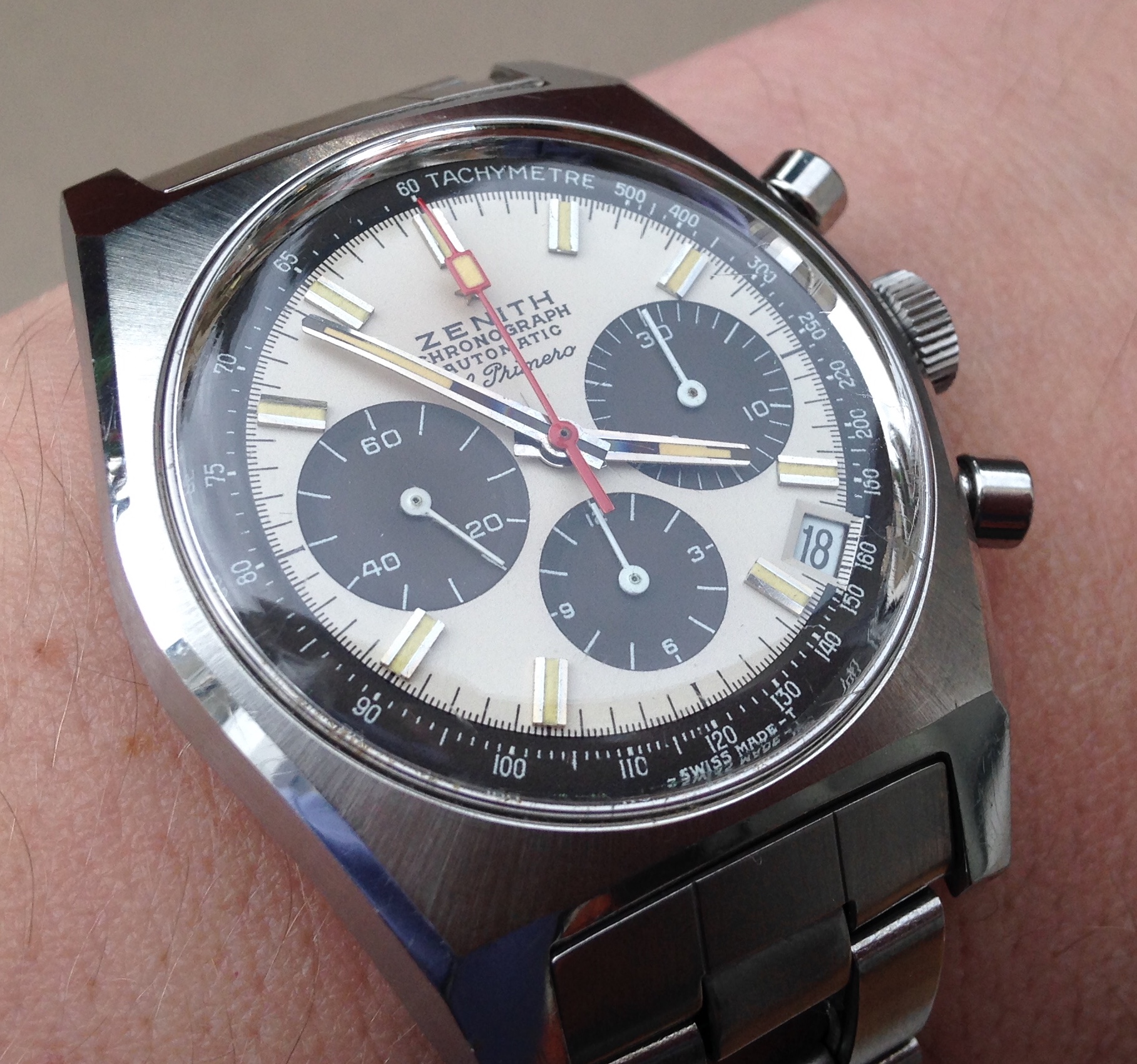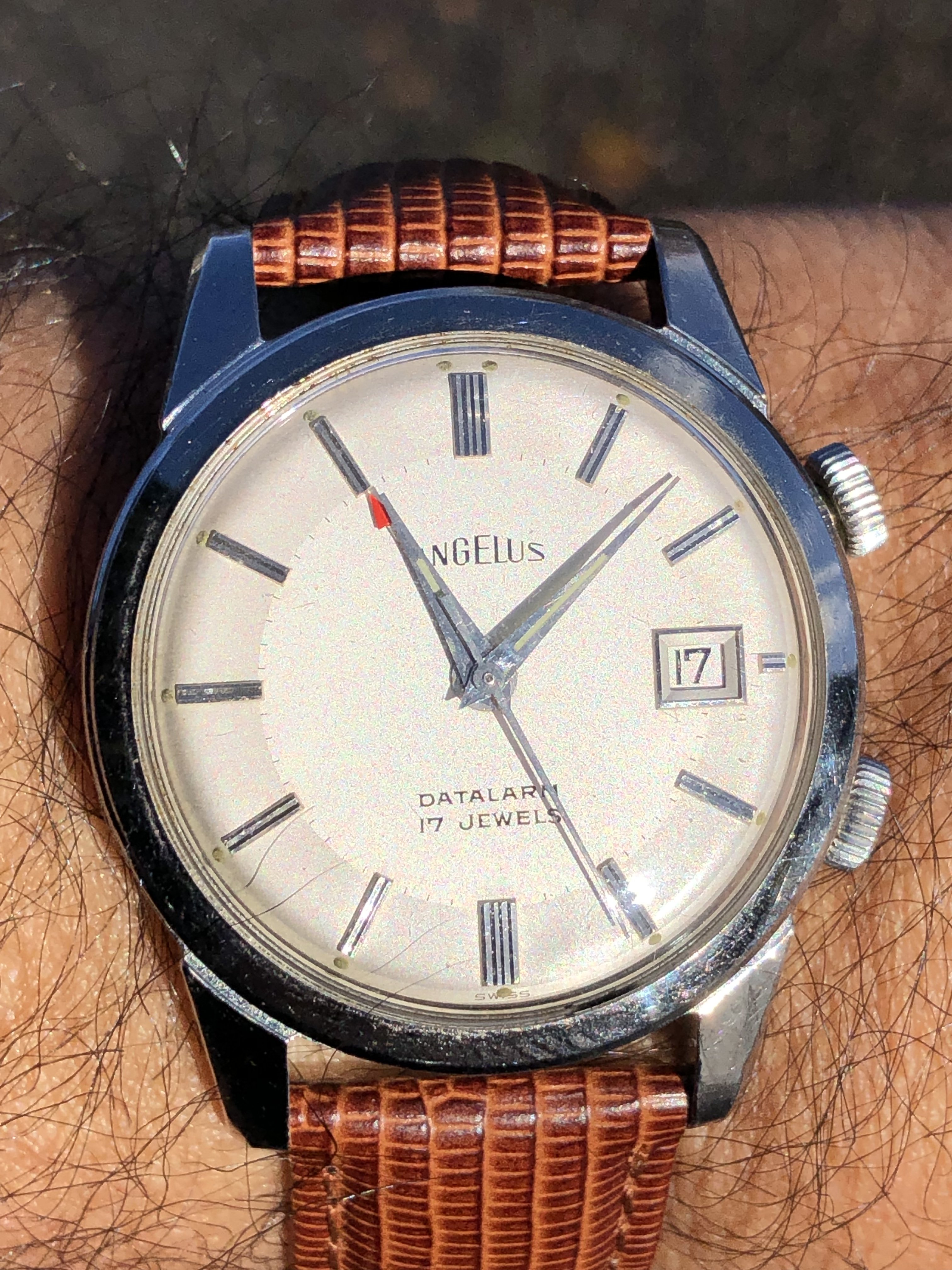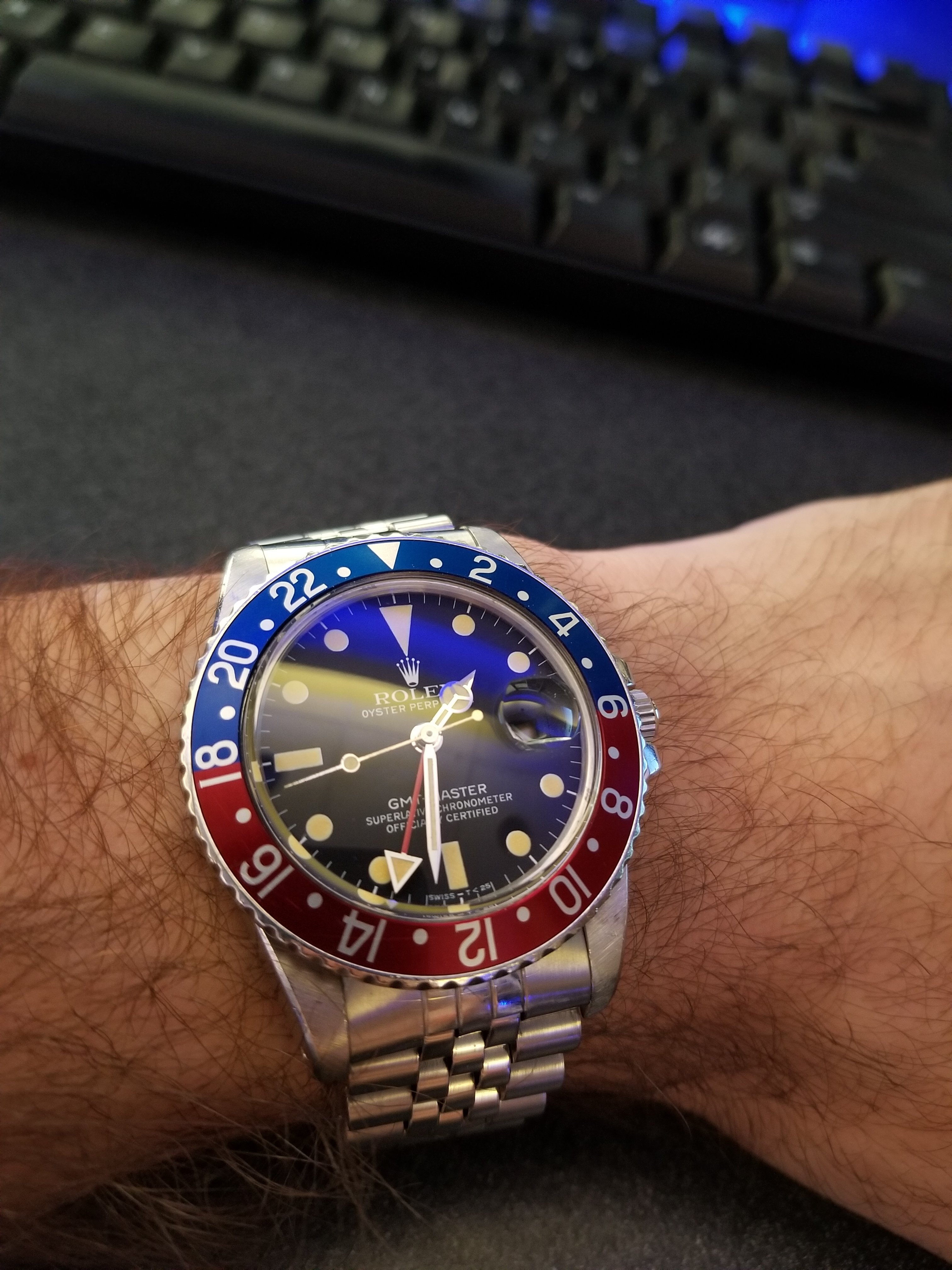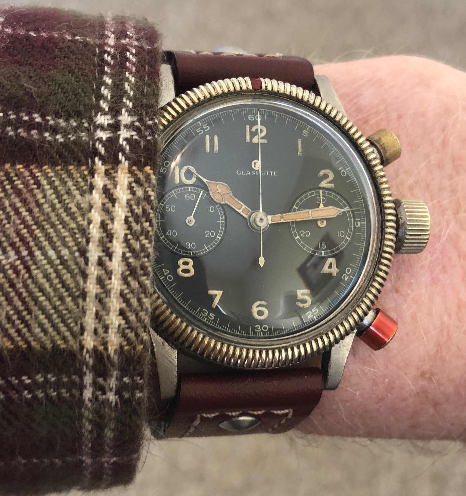 Posts 2,245 Likes 32,570 bristnj ·Dec 18, 2018 “Play it again Sam” - ca. 1969 Waltham chrono -full lume indexes, Valjoux 7736 (custom)