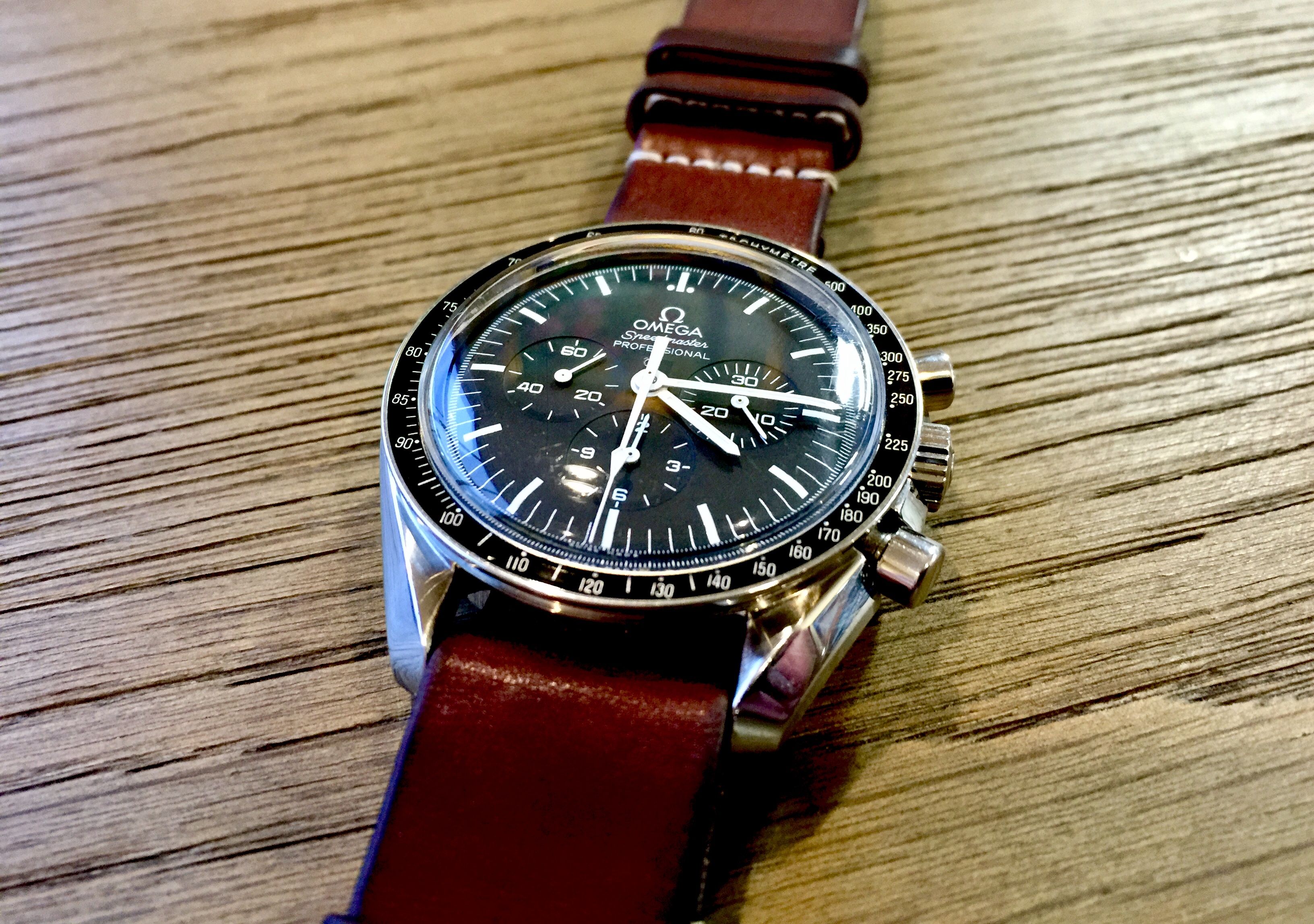 Posts 6,576 Likes 78,098 Mad Dog 路Dec 21, 2018 Modern Speedy Gonzales Moonwatch again...today it鈥檚 on the Omega Barenia leather NATO...