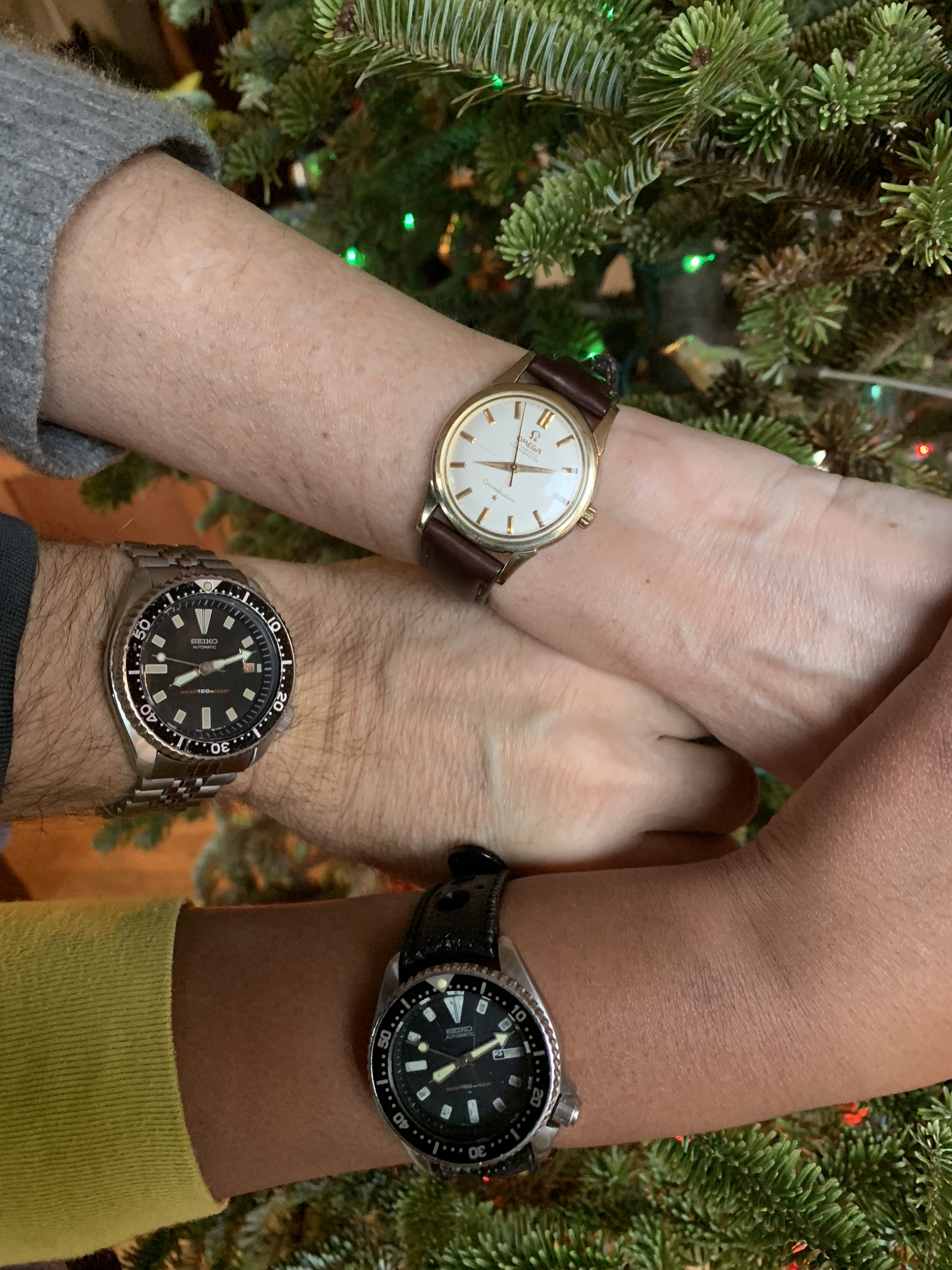 Christmas presents for the family: a Conny for Mrs. Muddlerminnow, a redialed beater Seiko fishing watch for me, and a mid-sized Seiko for Muddlerminnow Junior: