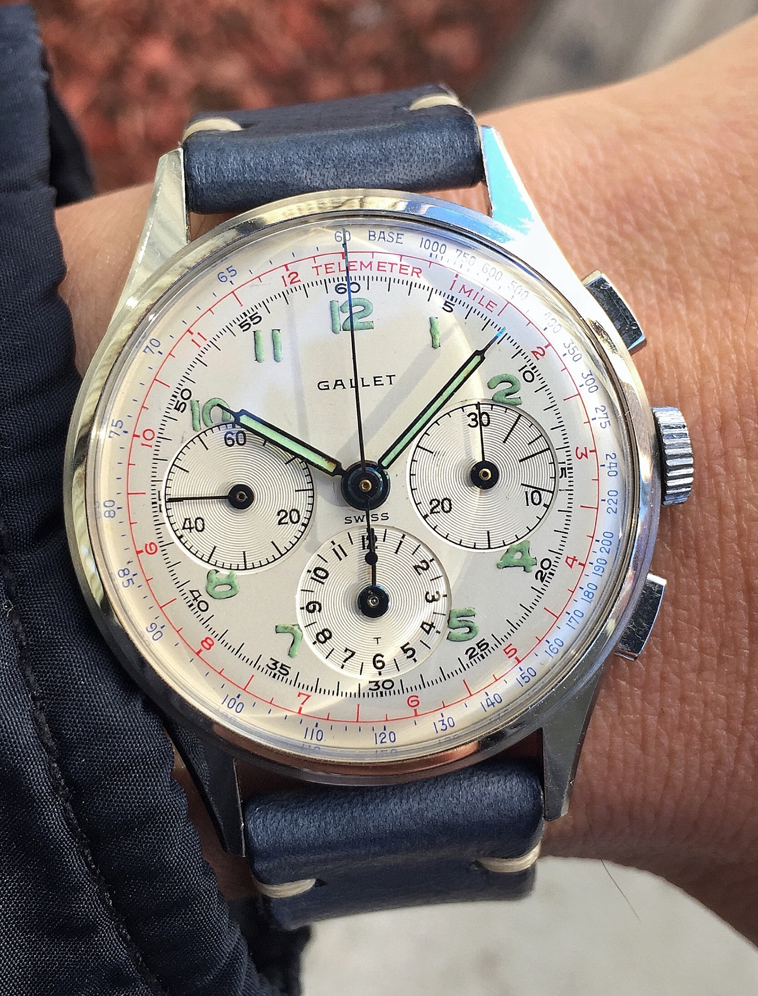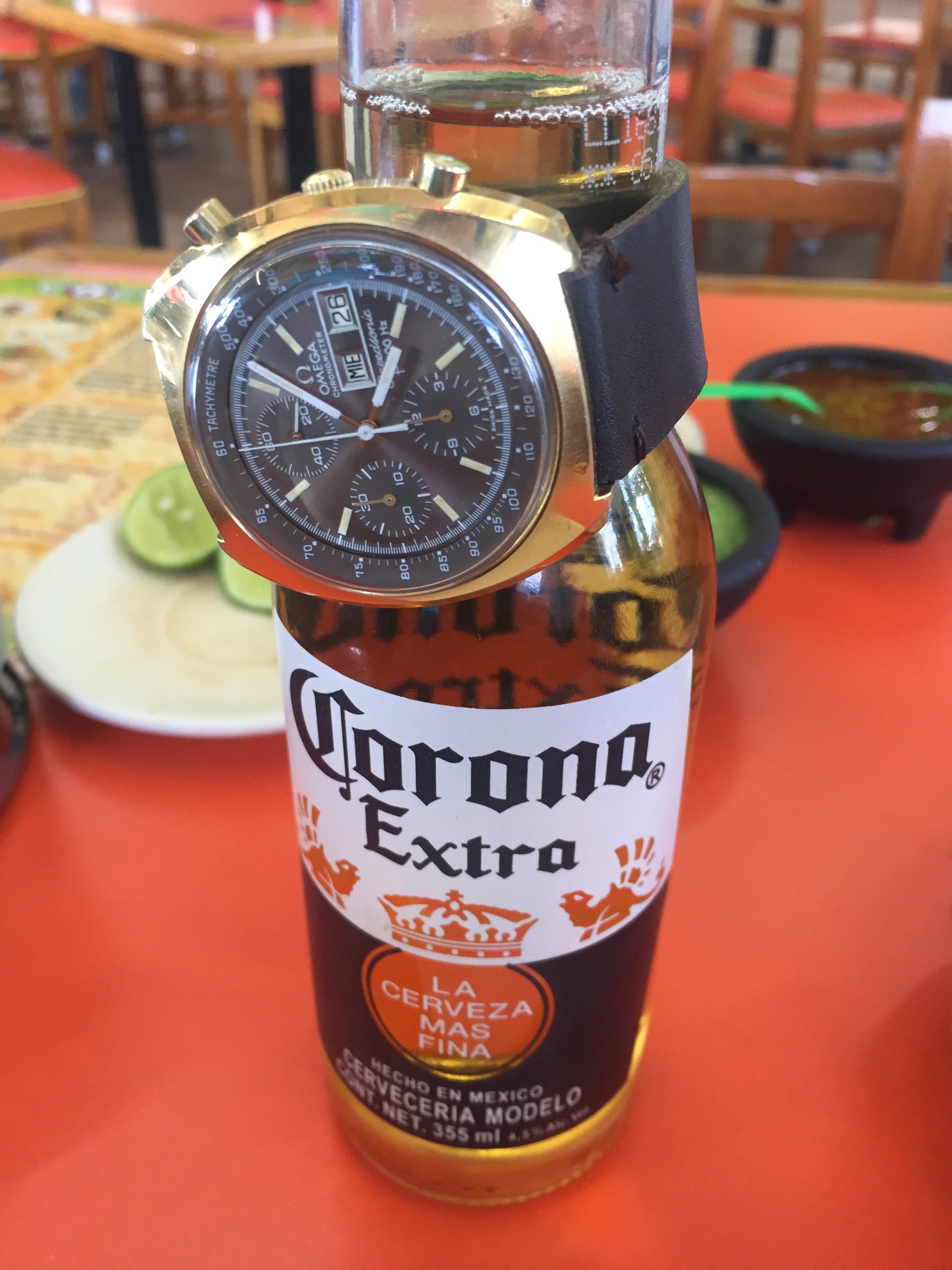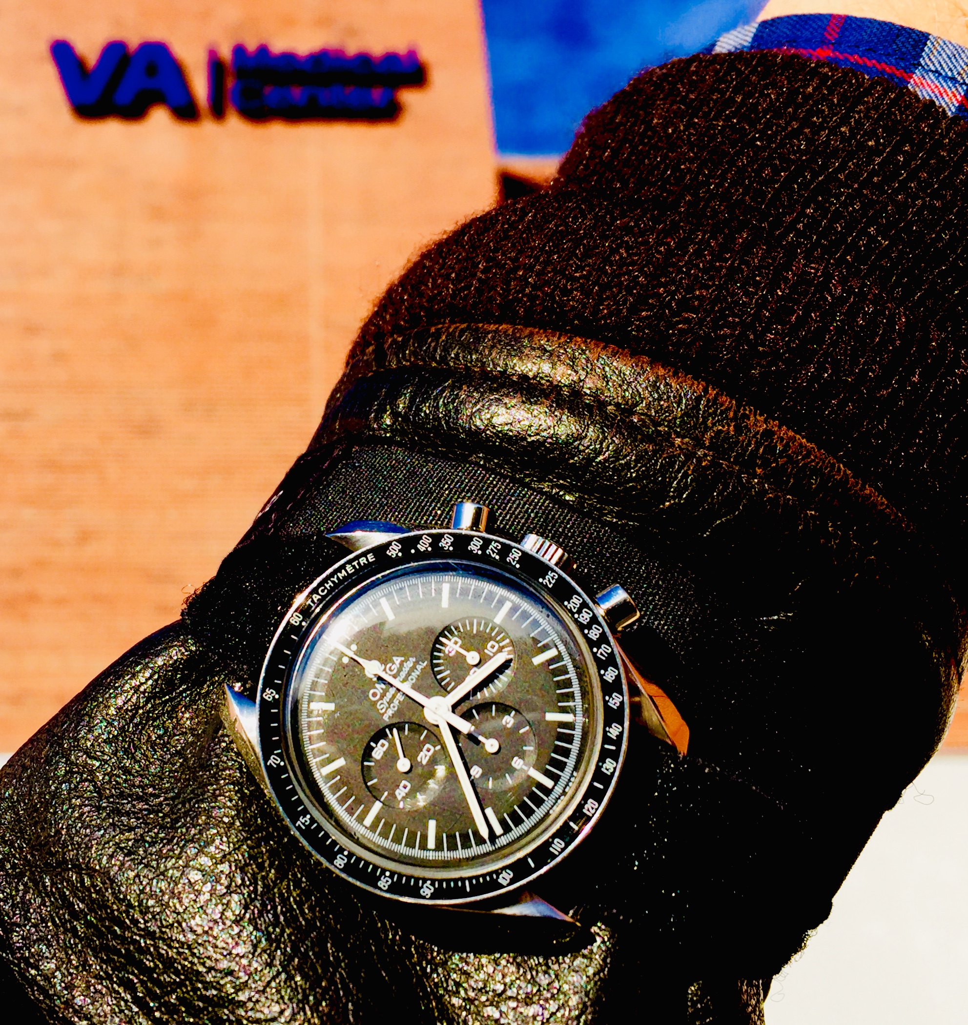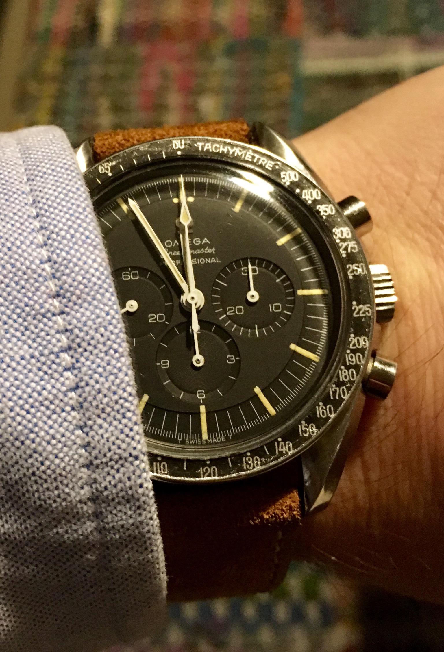 It’s in a completely Omega service set up. Service luminova dial (but early - see the number of hash marks in between the second markers to compare with later ones) and luminova hands (the chrono seconds hand should be flat bottomed, but I like the old fashioned style), in a service Omega Speedymoon case.