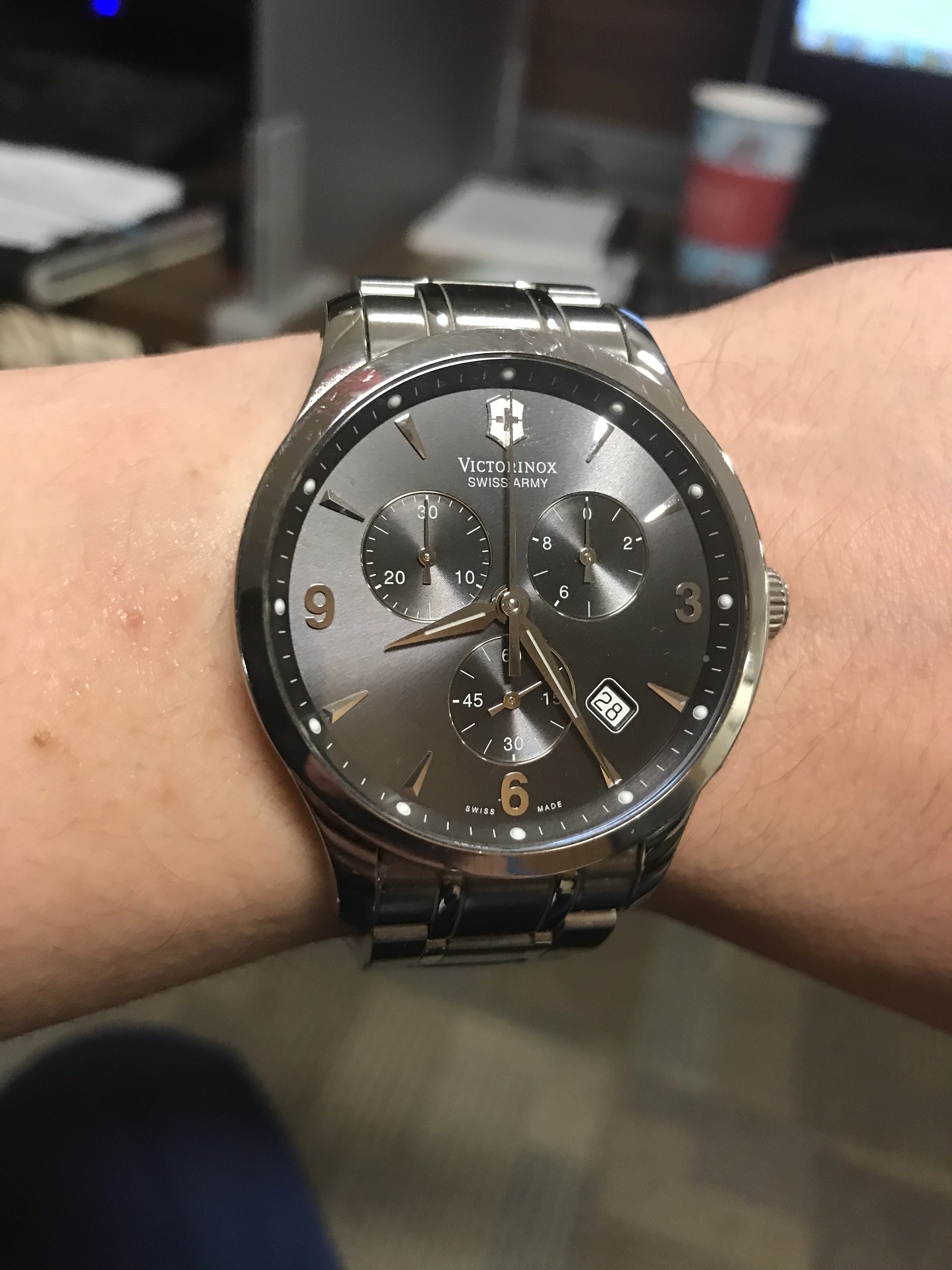 Posts 419 Likes 1,169 jshaw083 ·Dec 28, 2018 My beater watch! Victorinox Alliance quartz chronograph. Not super collectible but it works great and has served me well over the years!