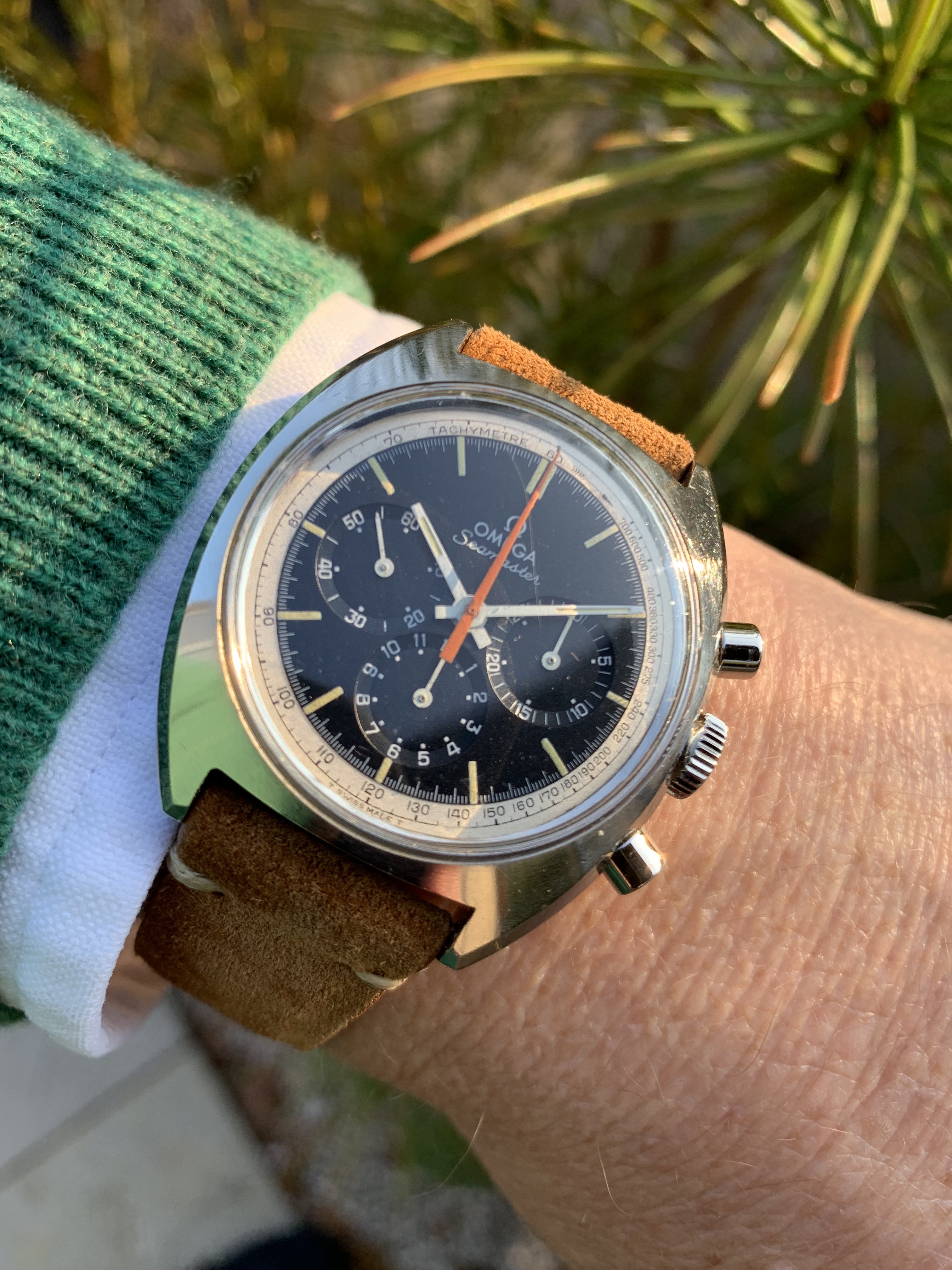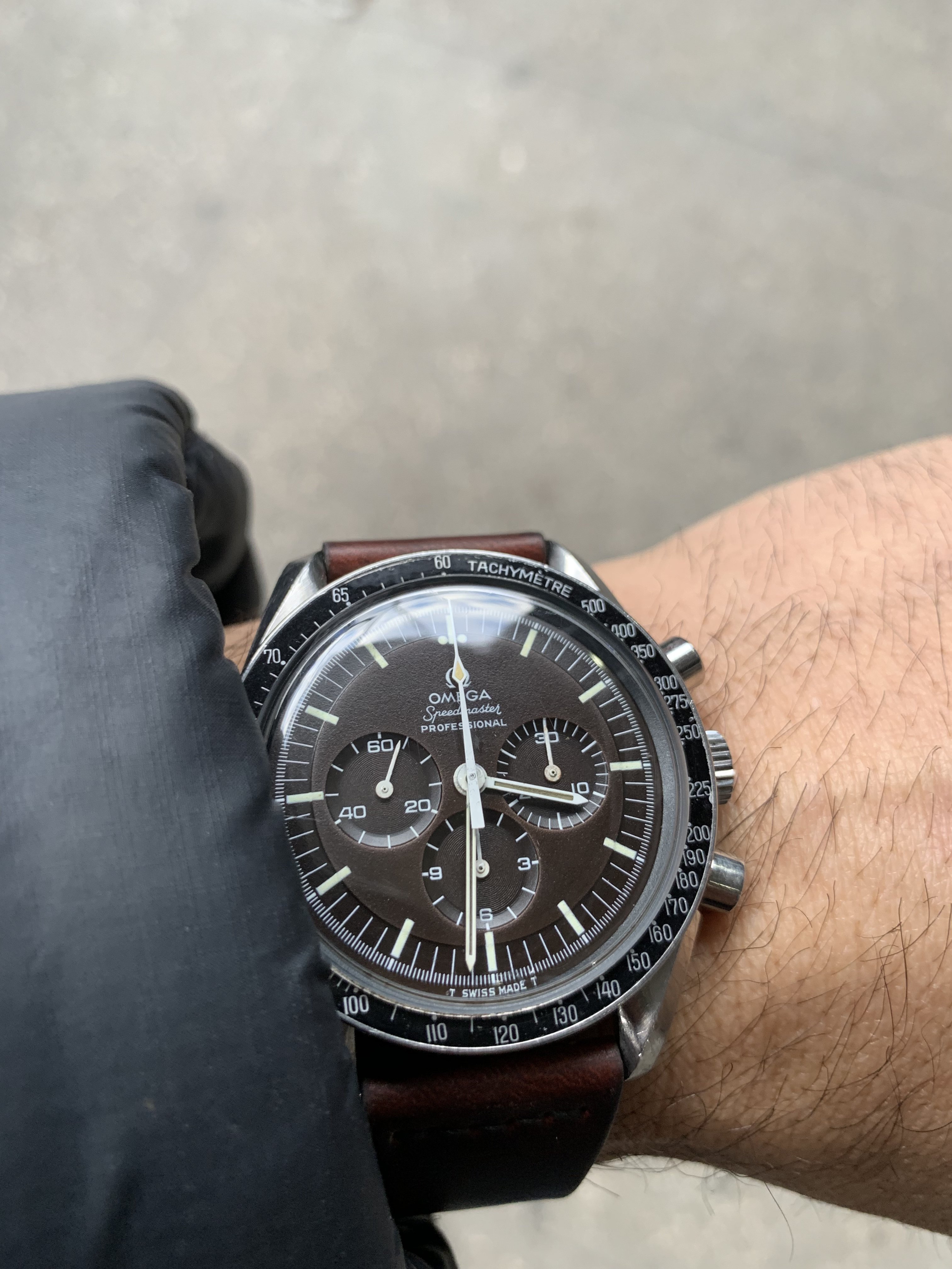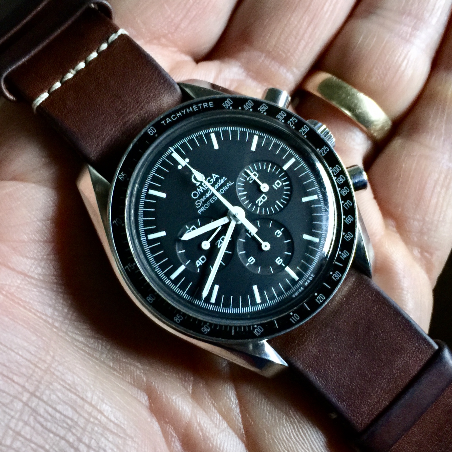 Posts 6,577 Likes 78,116 Mad Dog ·Jan 3, 2019 Modern Speedy Gonzales Moonwatch again for today [on Omega Barenia leather NATO]... Edited: Jan 3, 2019