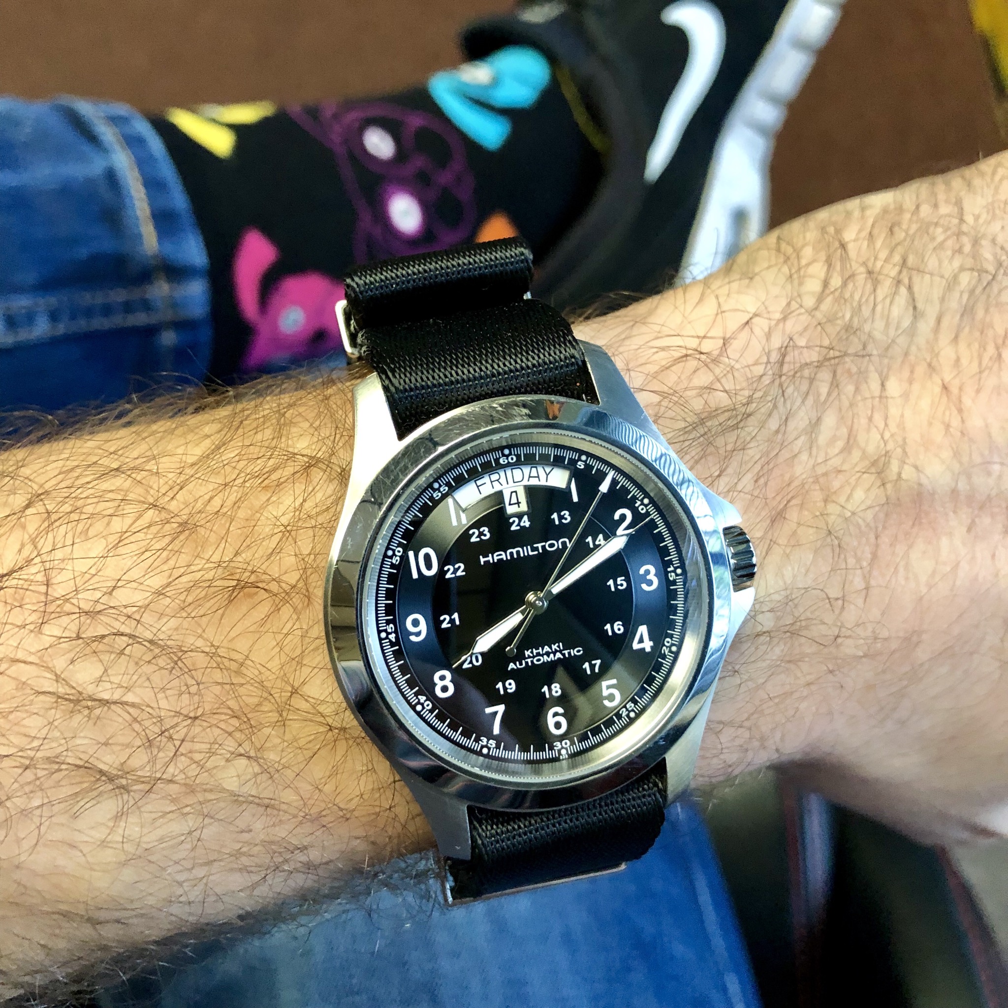 Posts 4,624 Likes 23,528 vbrad26 ·Jan 4, 2019 Just some dogs and a Hamilton on an Omega supplied NATO.