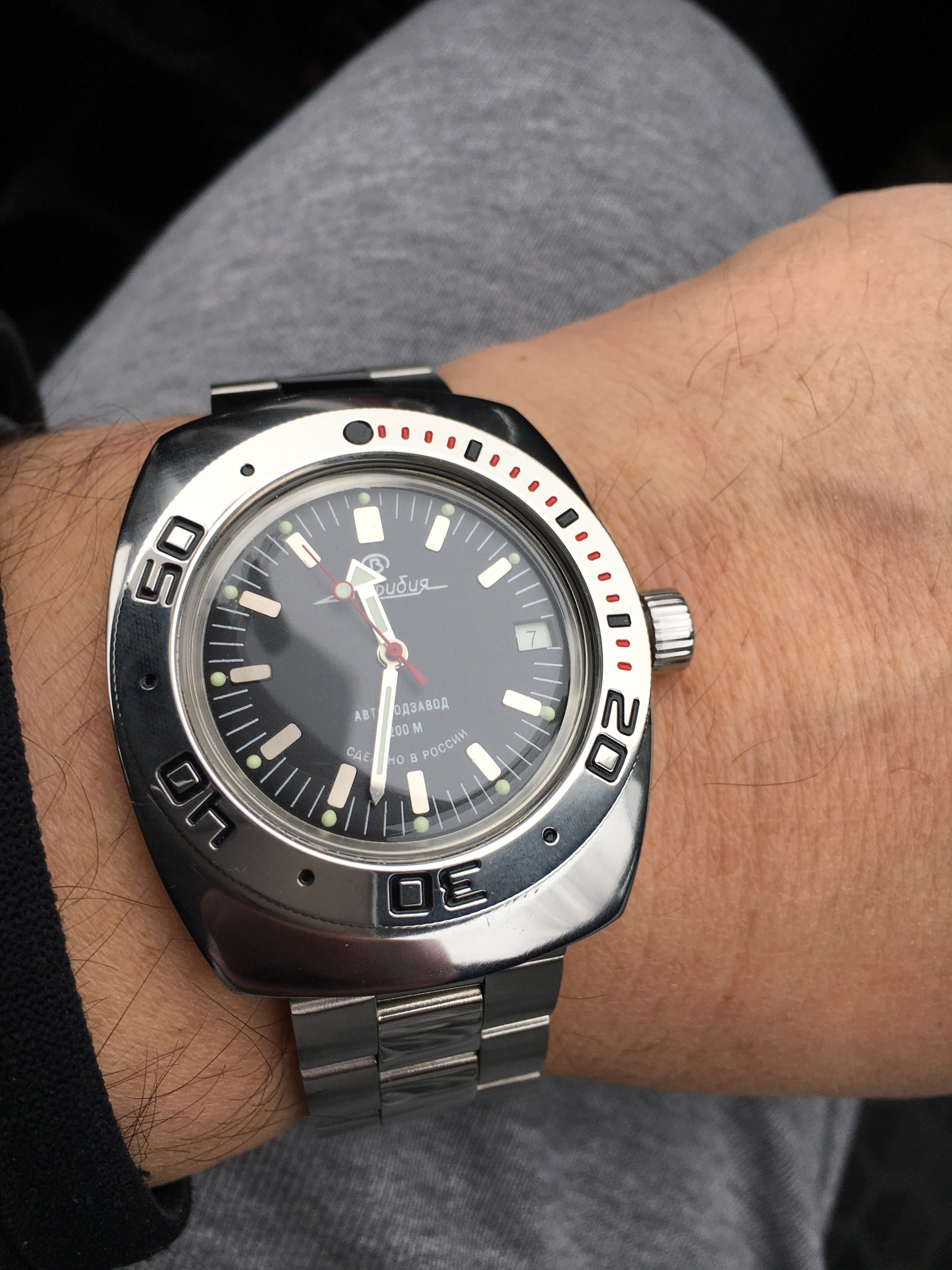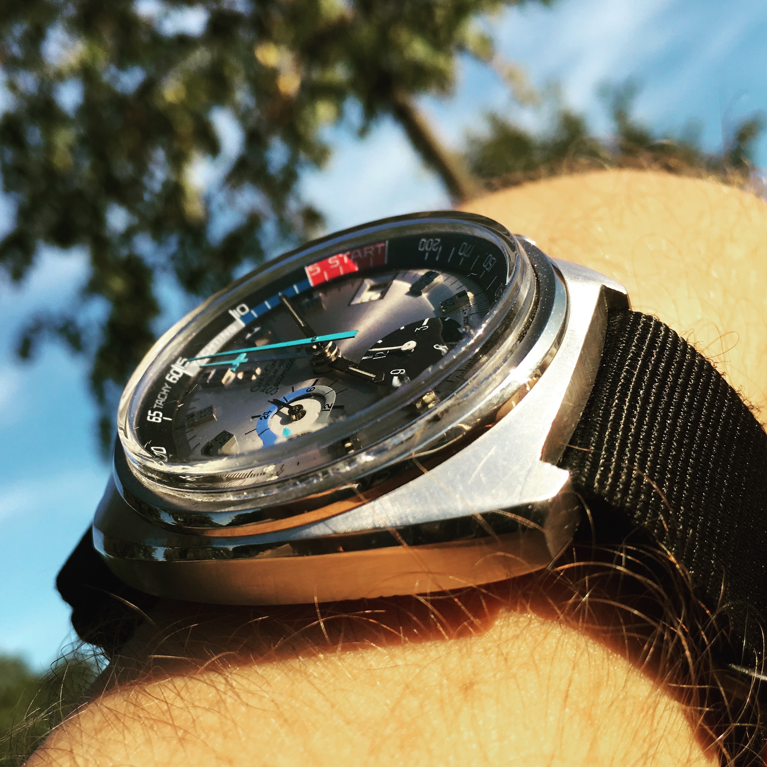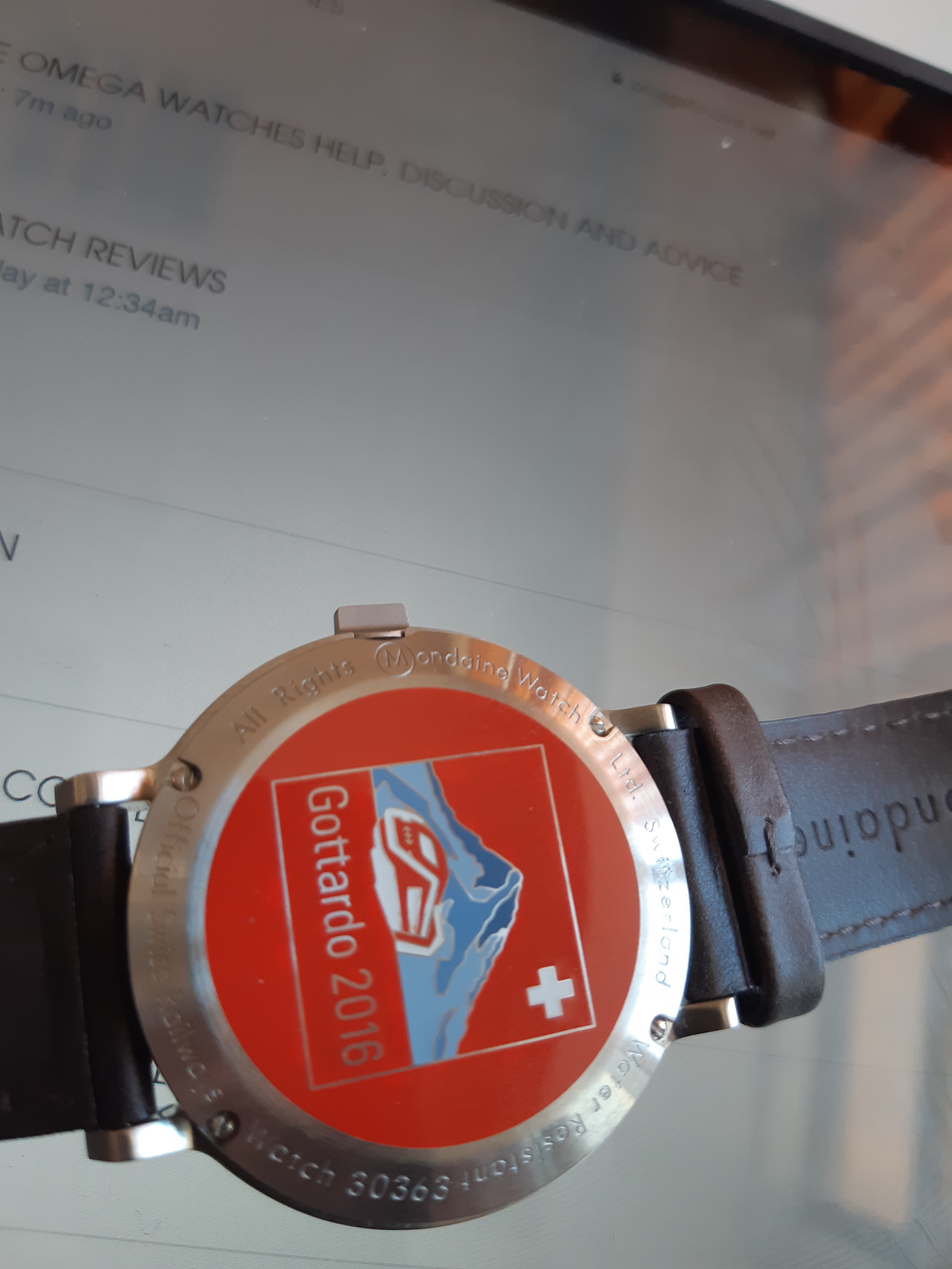 Decided on a modern watch today. I like the iconic dial on this one coupled with a bezel that used to be in the train door from one of the trains that worked the line before the Gottardo Tunnel was opened in 2016. It has quite a nice caseback too.