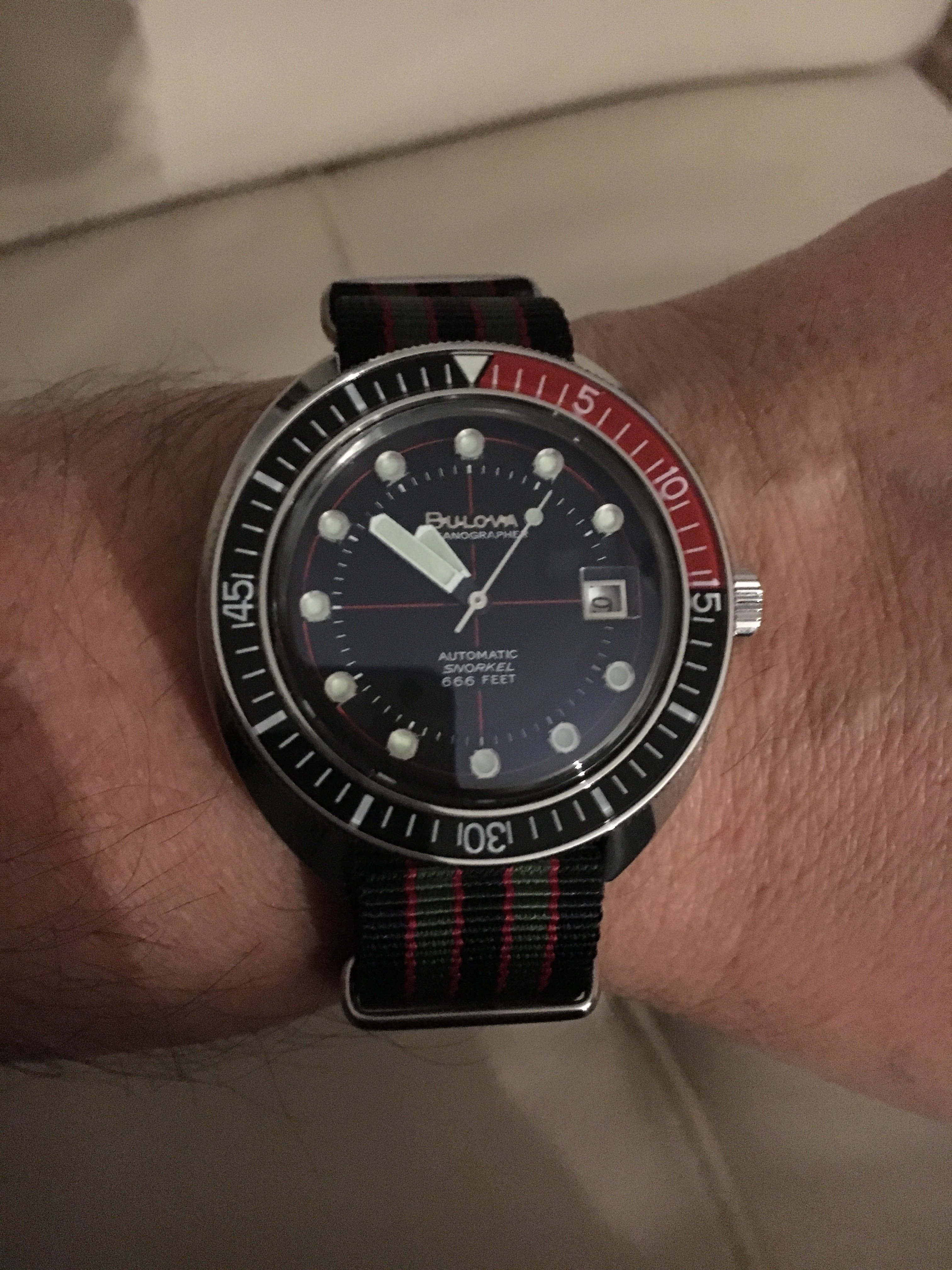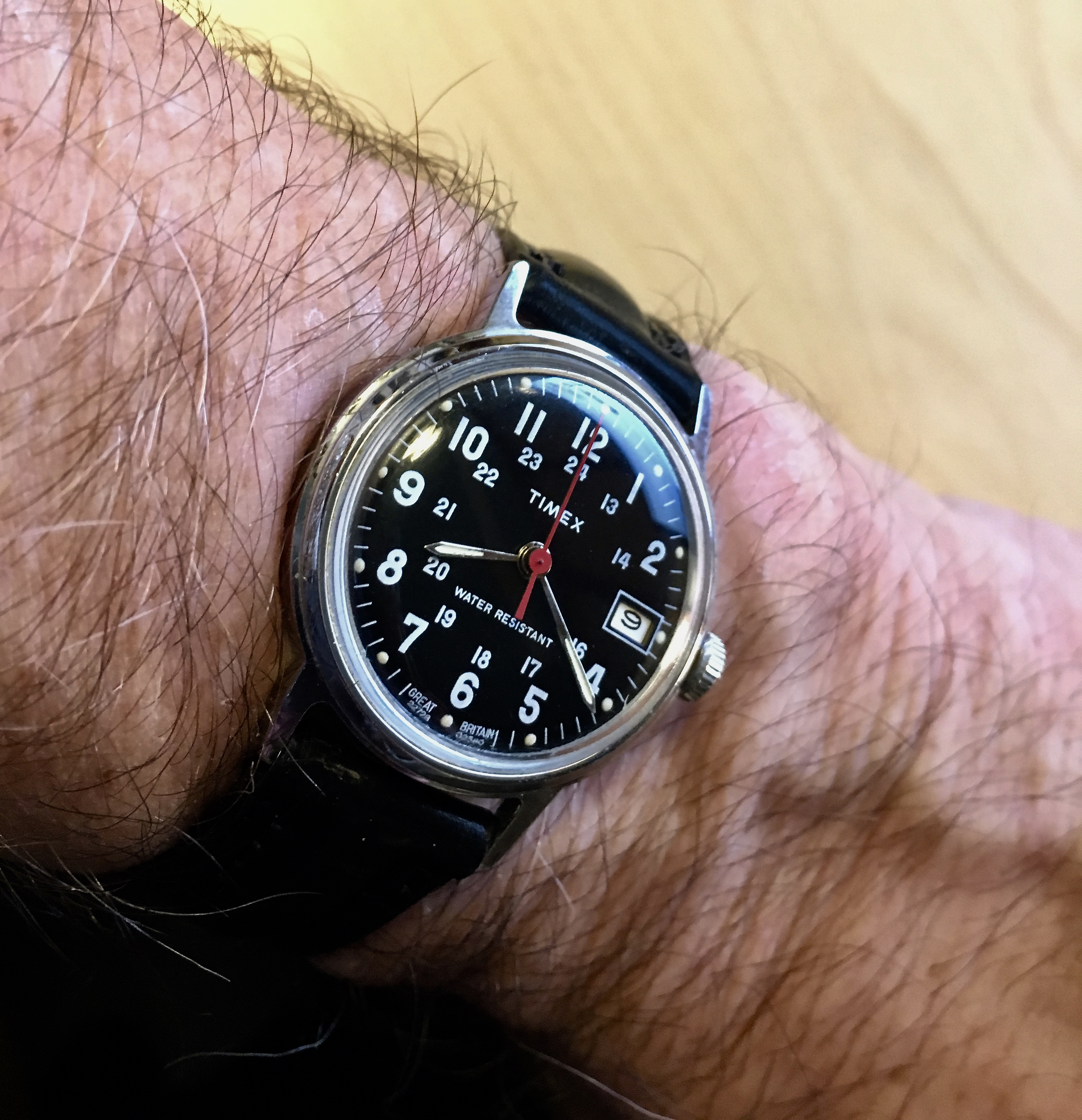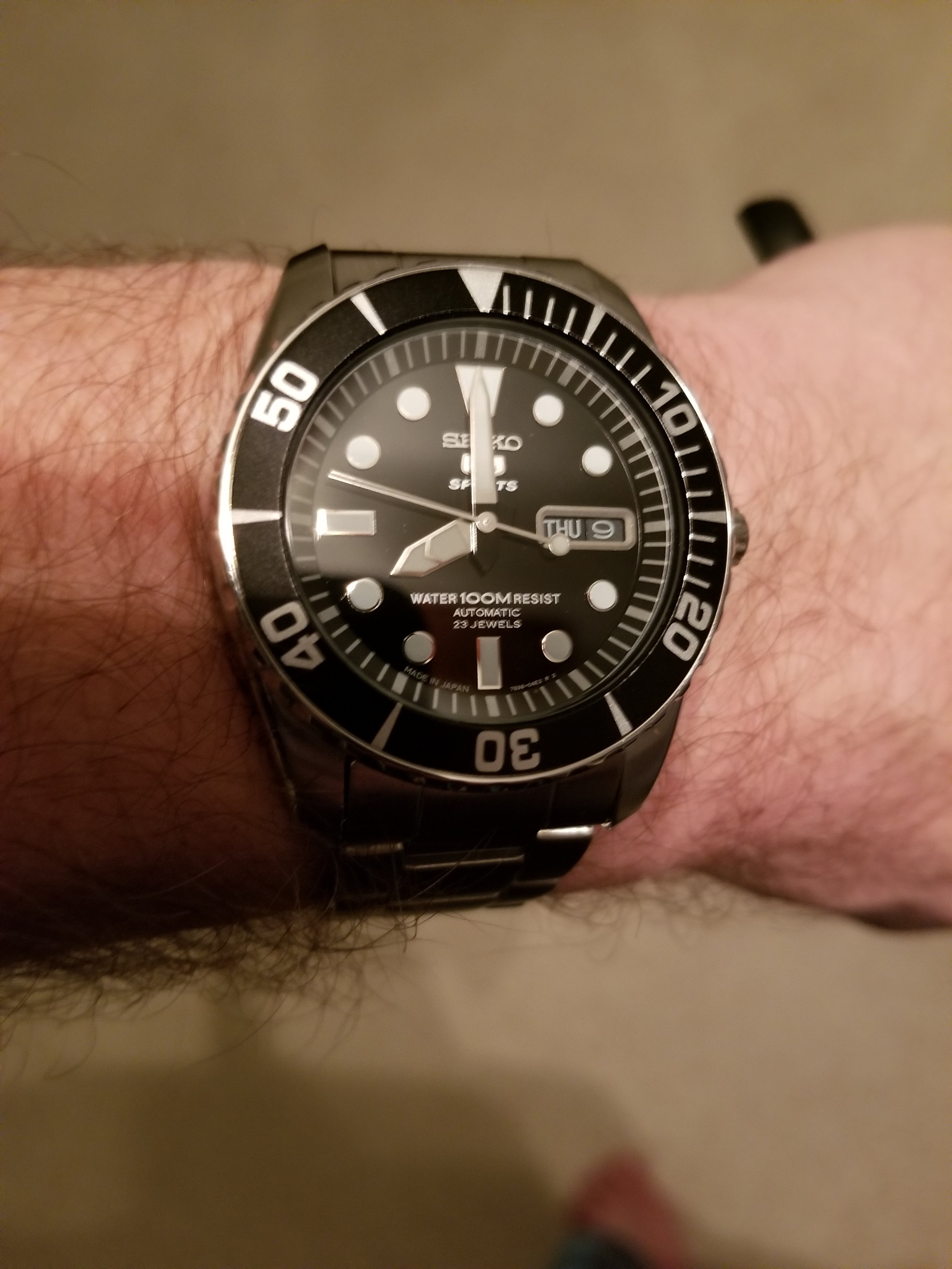 This came in the mail today. After enjoying the one vintage Seiko so much, I used my eBay bucks, earned while buying Christmas gifts, to pick this up for almost nothing. I wanted to stay mechanical, avoid quartz, get another display back, get something that I thought would stand up to the rigors of factory work and..........I finally have a watch with a active lume!!