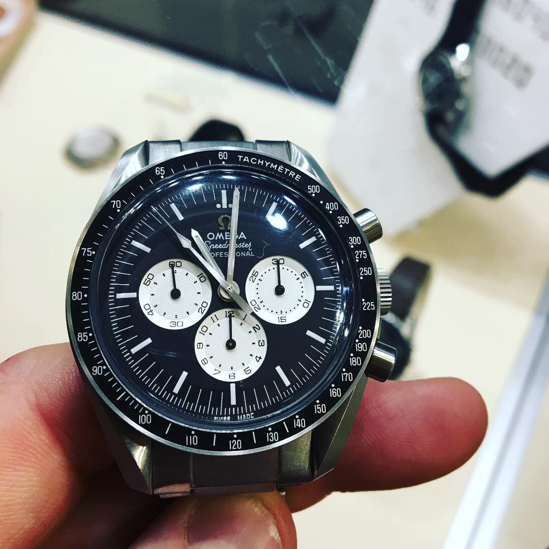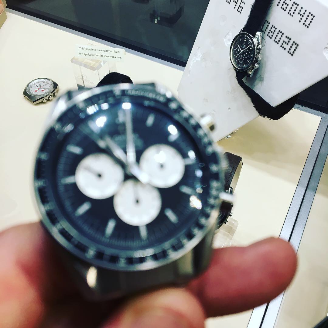 The Omega Speedmaster "Speedy Tuesday" Tribute to Alaska III, with the actual real Alaska watch in the background. At the Omega Museum. Worth it guys, whenever you travel through Biel/Bienne. New manufacture is also nice, but a bit sterile.
