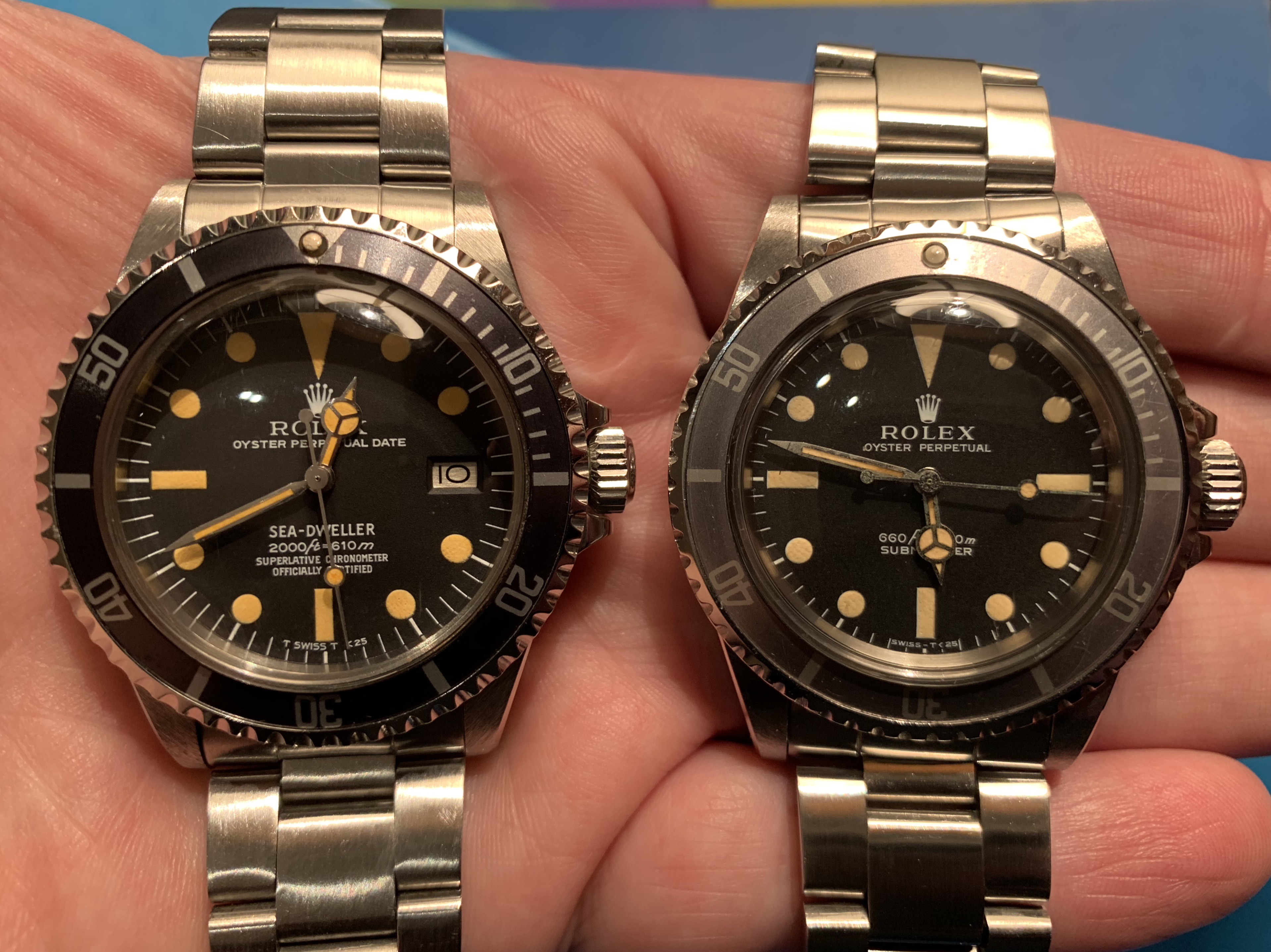 Posts 752 Likes 10,151 jB1128 ·Jan 18, 2019 crl848 Help me choose Whoa, tough call! Perfect "pumpkin" lume-patina on the left or that sweet ghost bezel on the right!?! I think I'd choose the Sea-Dweller for daylight hours and the Submariner for the evening 👍