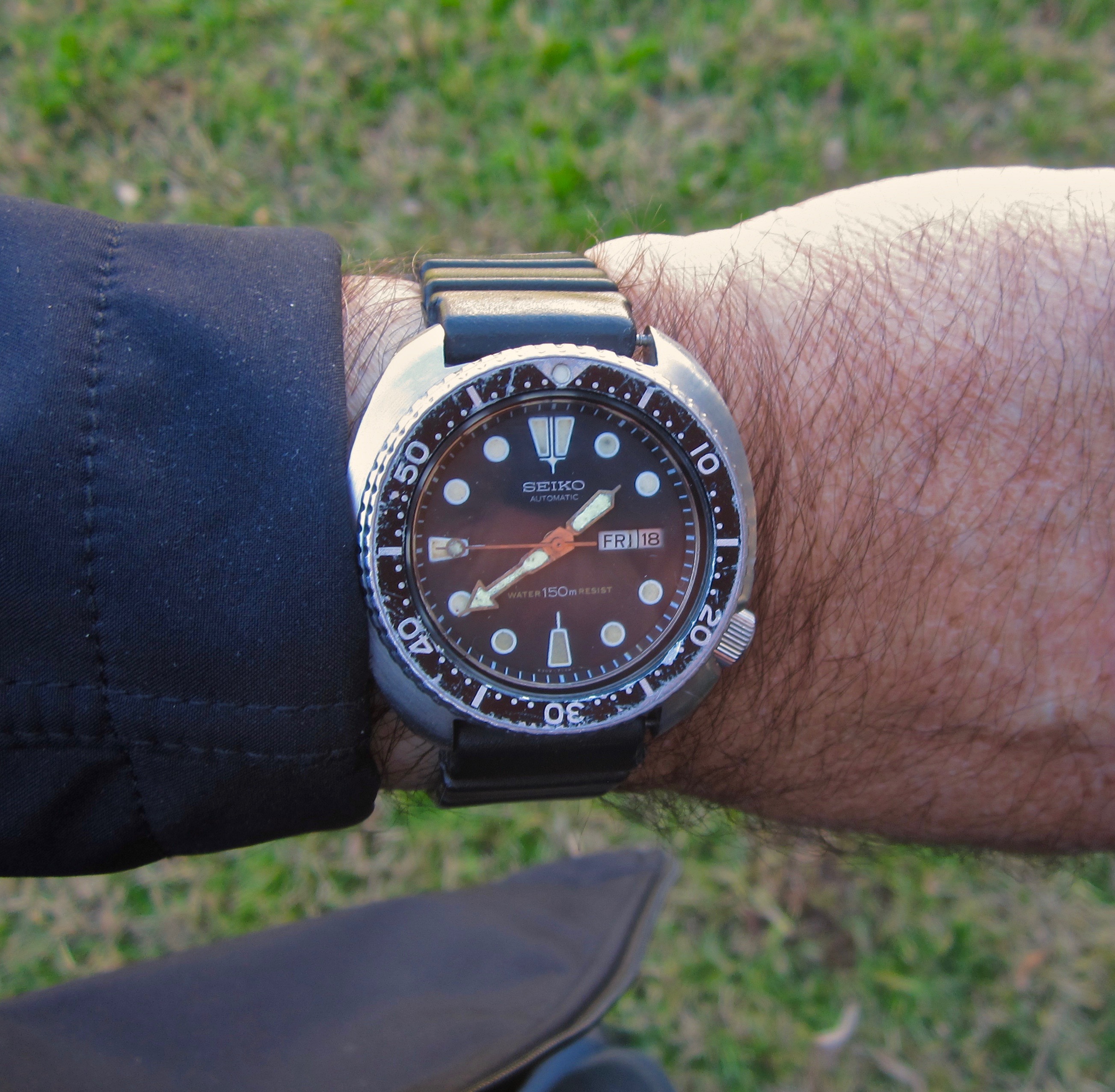 Posts 6,541 Likes 50,776 noelekal ·Jan 18, 2019·Home For Wayward Watches Ever wonder what an ol' Seiko Turtle would look like with an orange second hand? Neither did I and this 6309-7040 doesn't really have an orange second hand. I don't know the source for the odd reflection on the hand as I was wearing a dark shirt and jacket. Warmed up nicely here this afternoon before the temperature is suppose to plunge for the weekend.